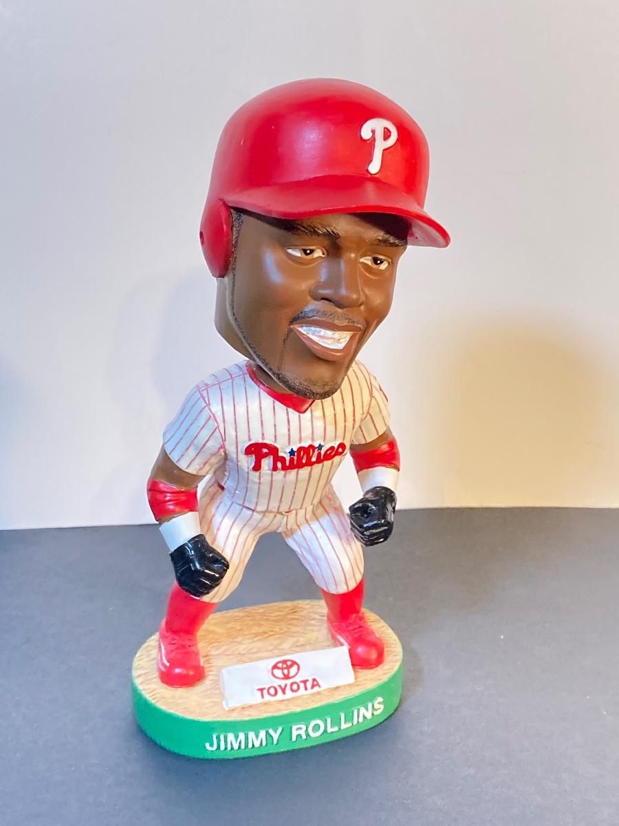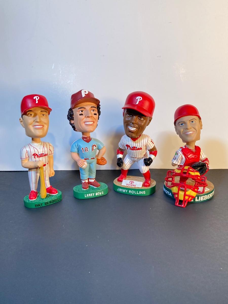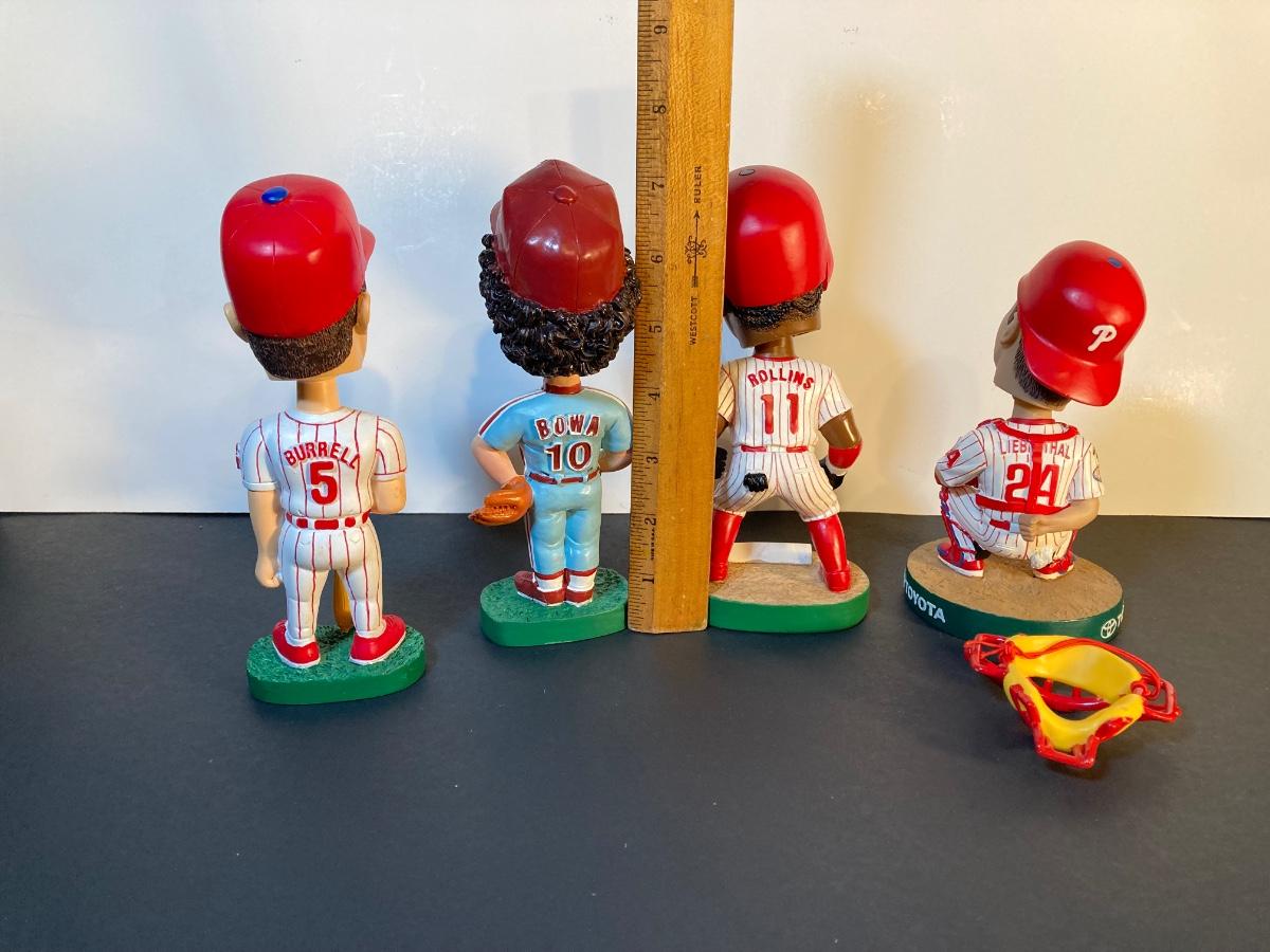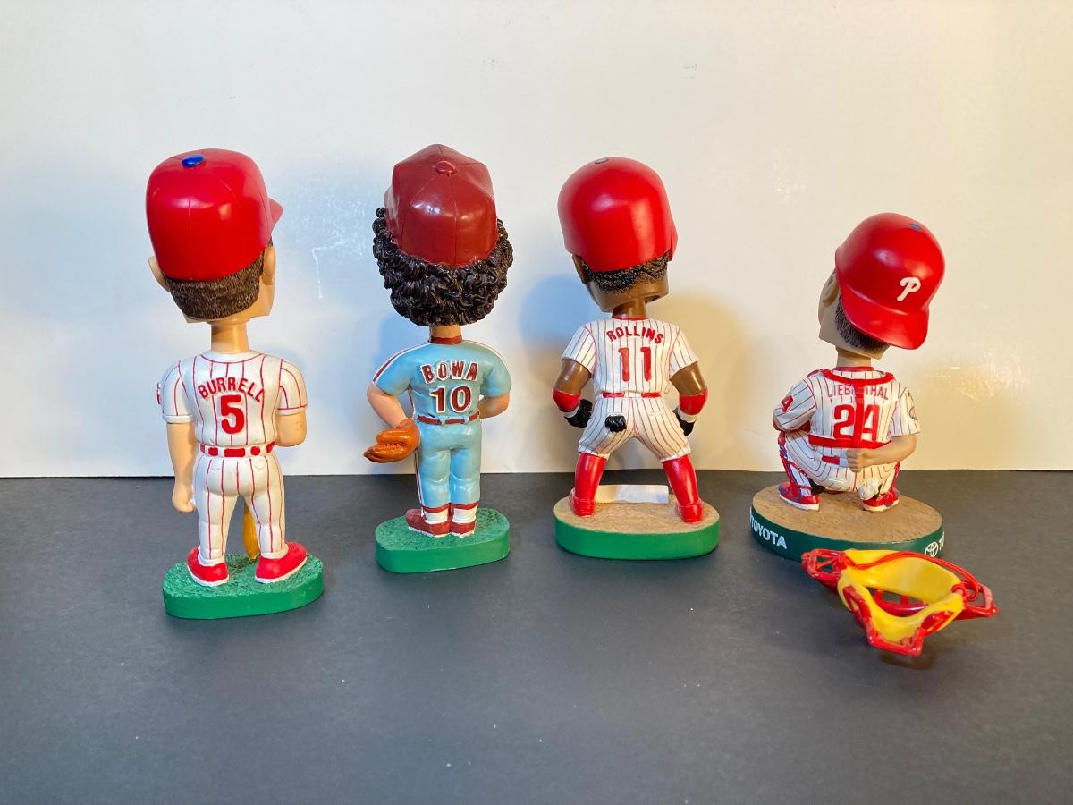 LOT 81: Philadelphia Phillies Bobble Head Collection - Pat Burrell, Larry Bowa, Jimmy Rollins and Mike Lieberthal