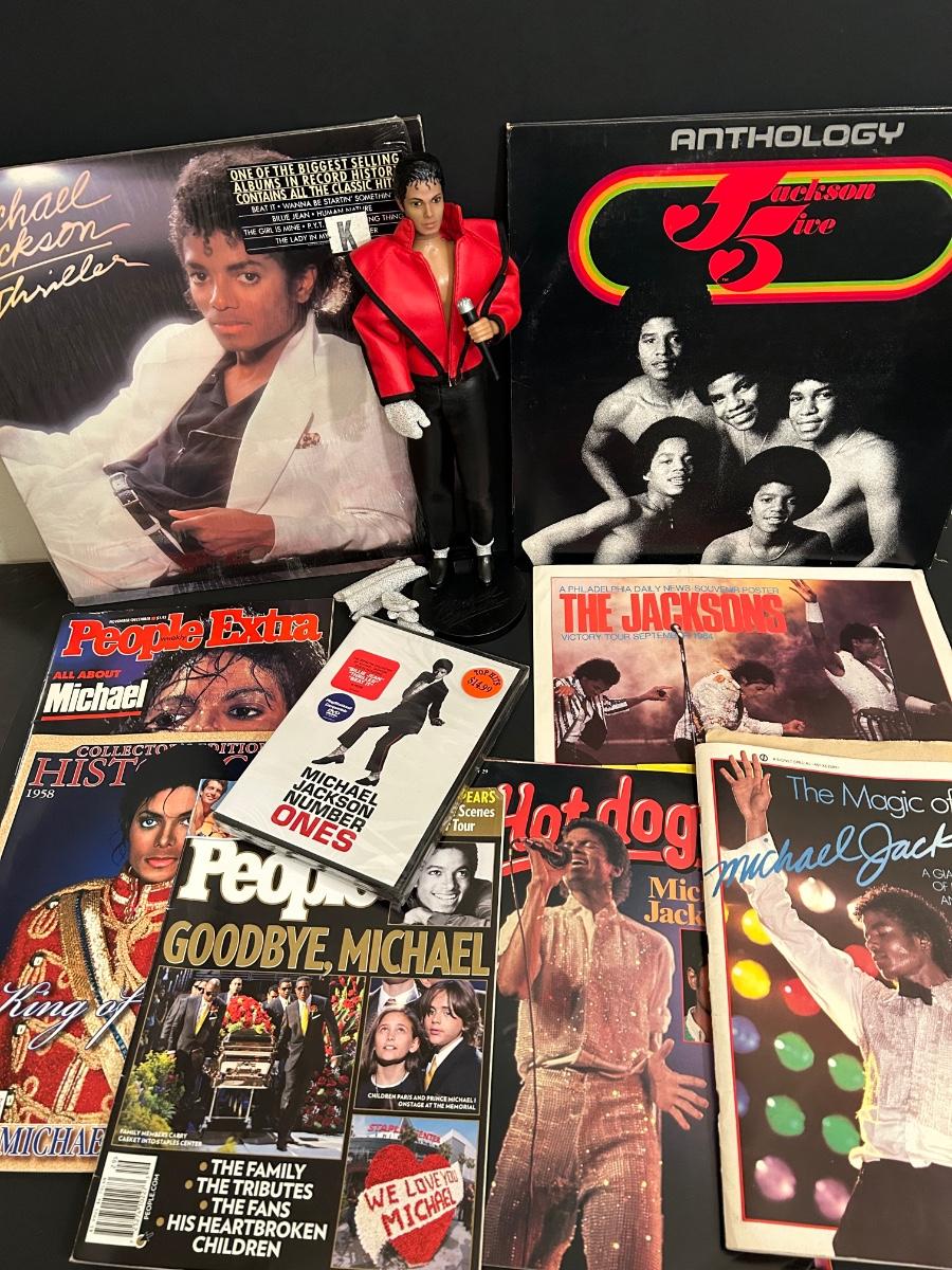 LOT 97DR: Vintage Michael Jackson Collection Including 80' Doll & Thriller Record