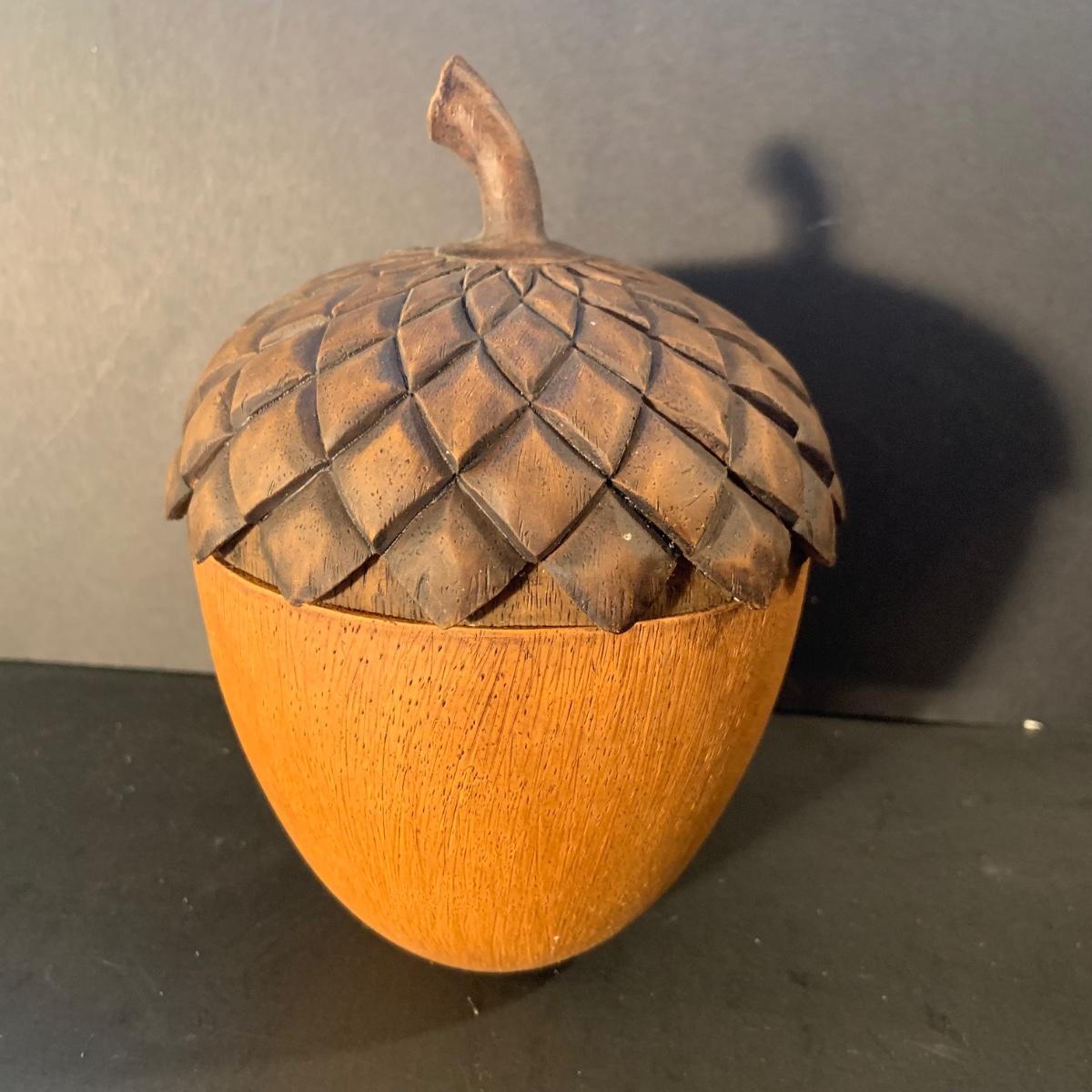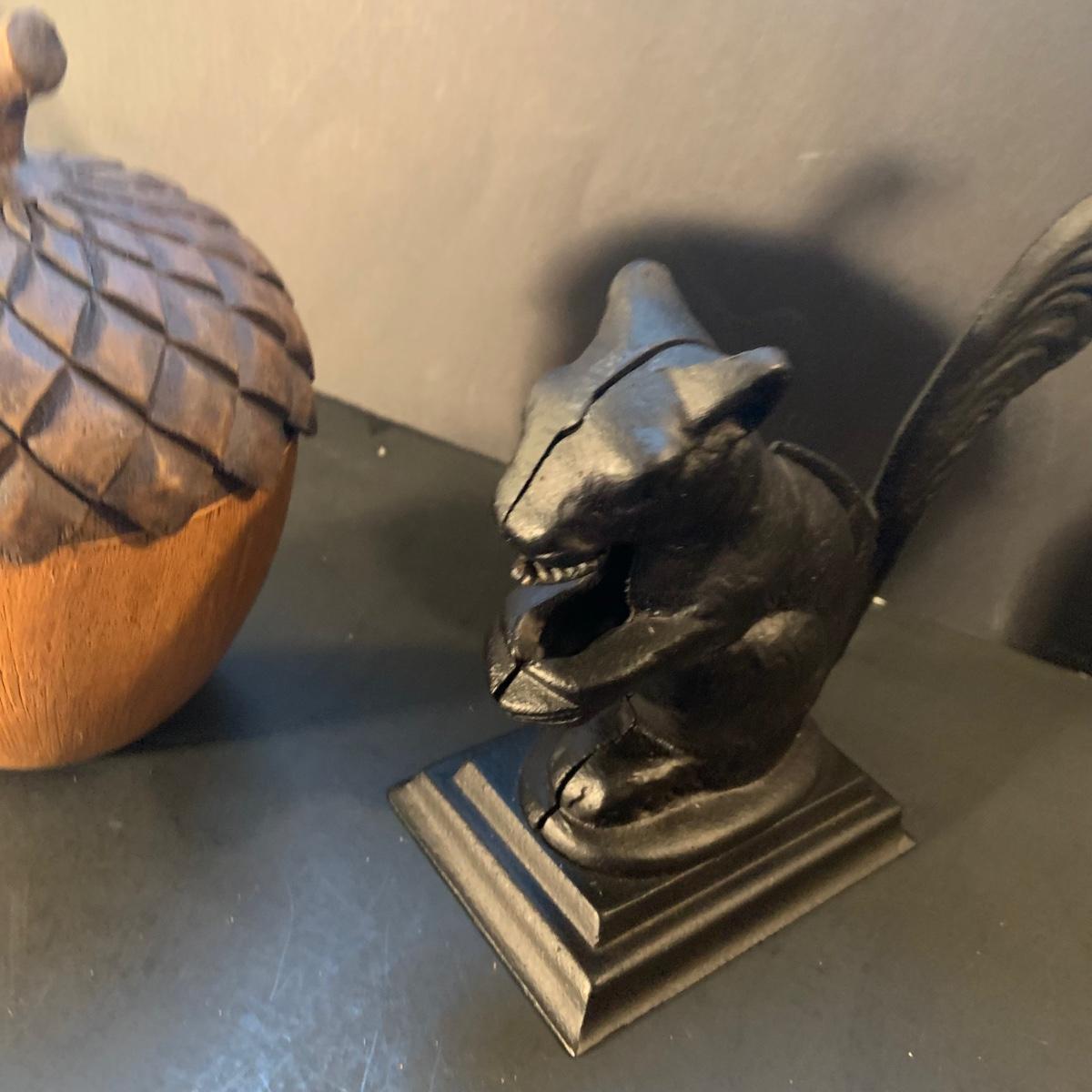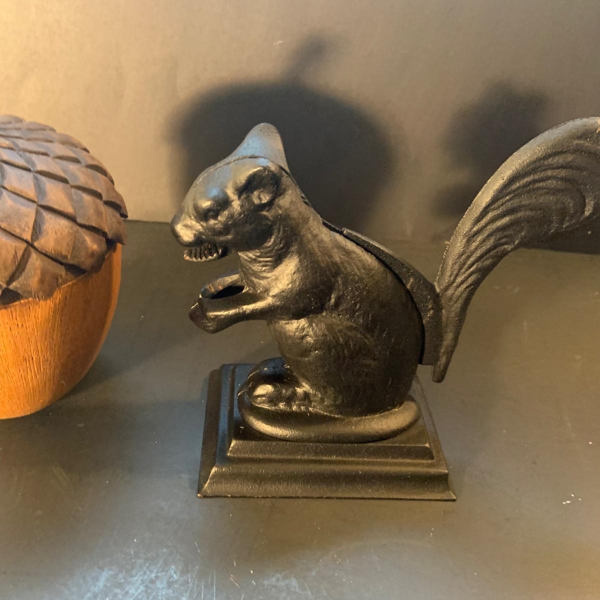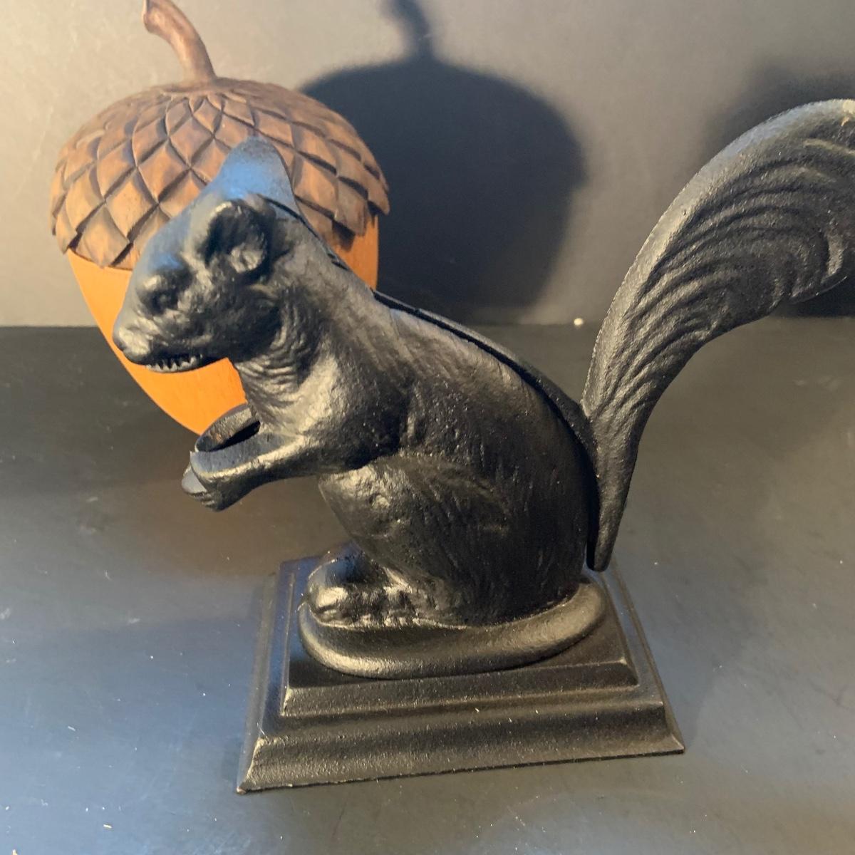 LOT:119: Cast Iron Squirrel Nut Cracker and Lillion Vernon Acorn Shaped Box