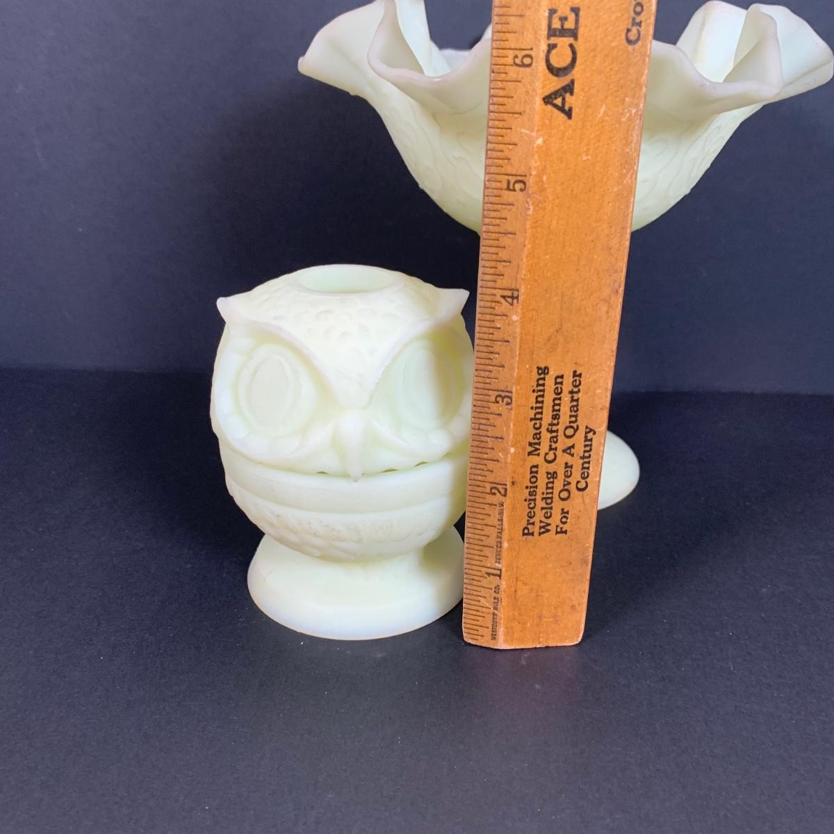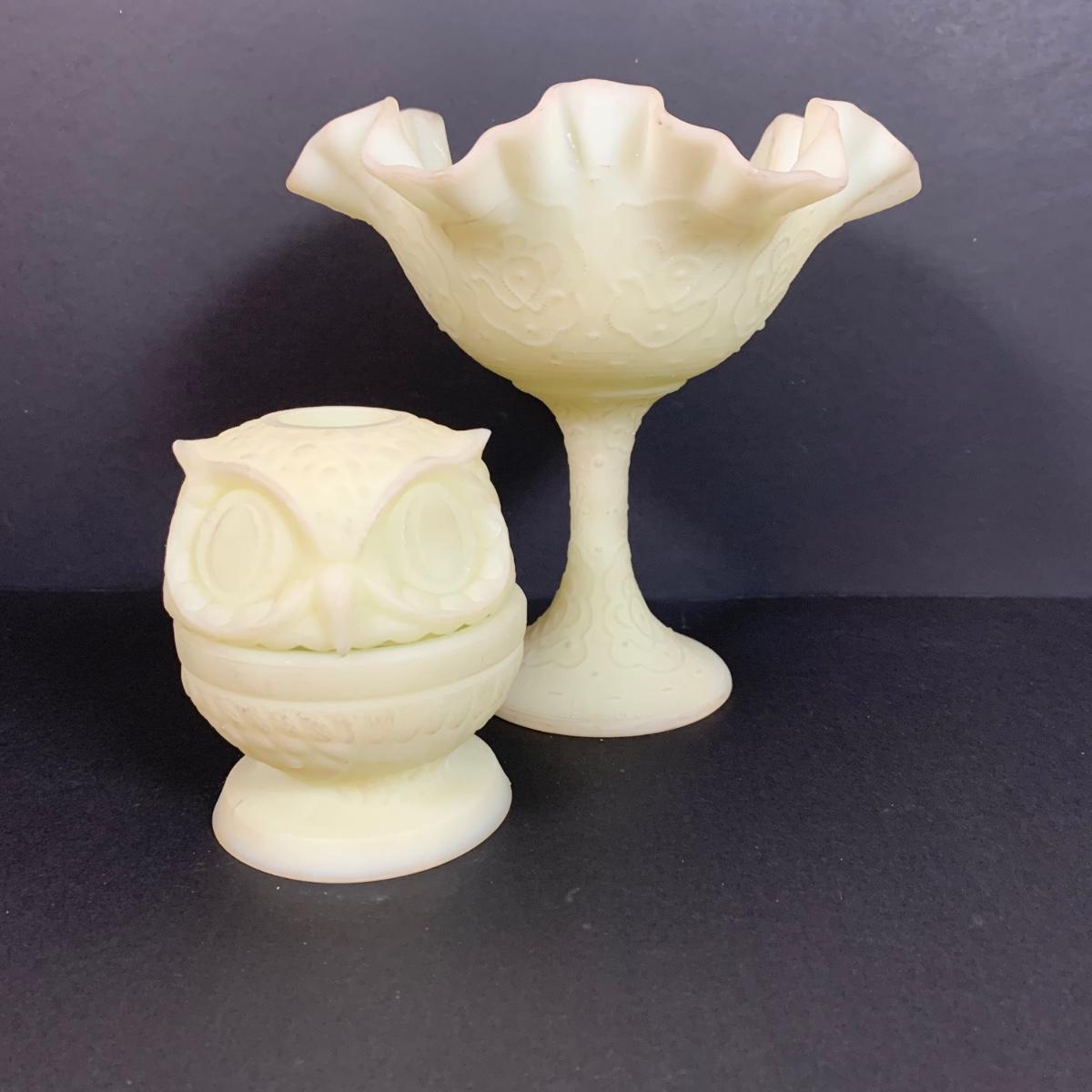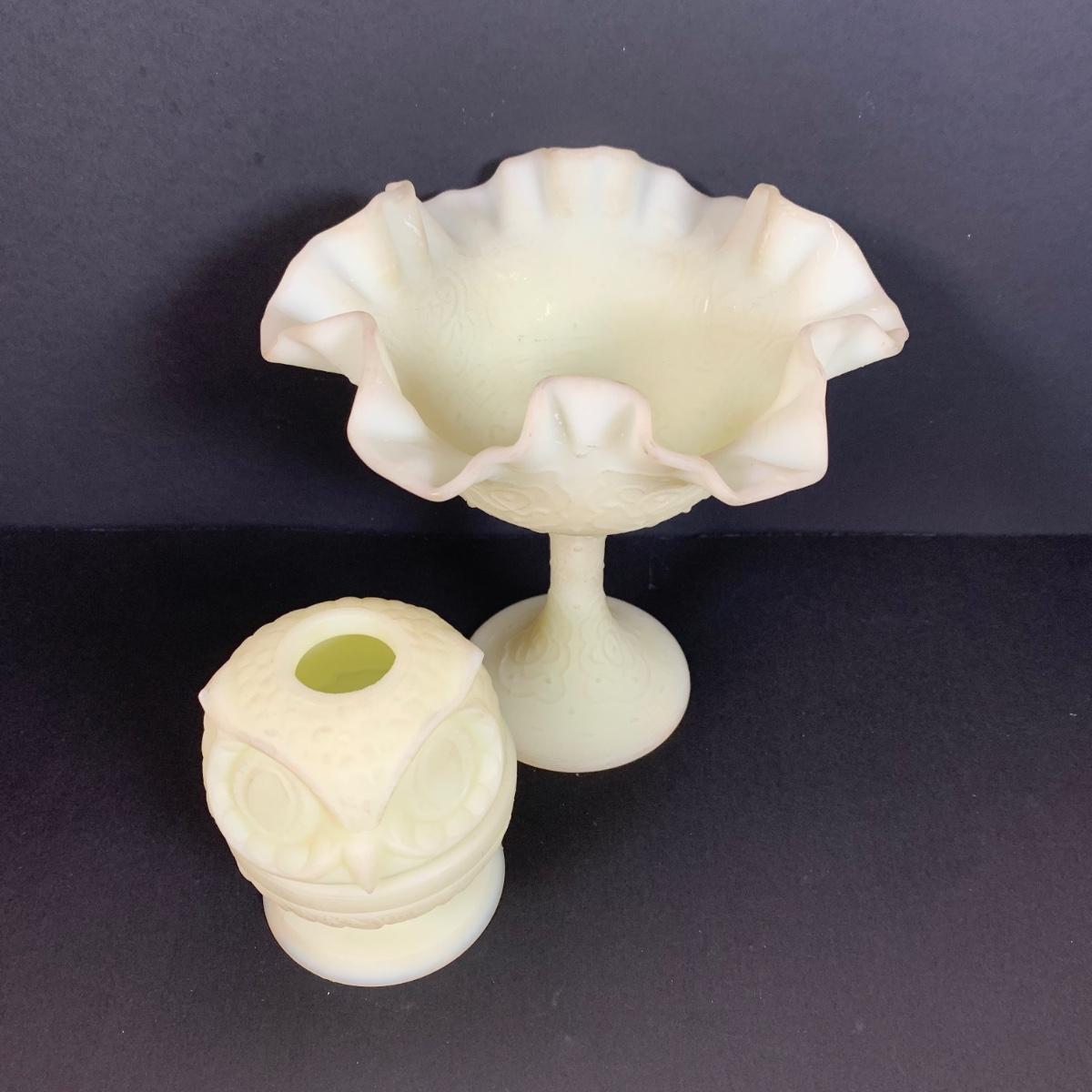 LOT 146: Vintage Fenton Frosted Compote & Owl Fairy Light