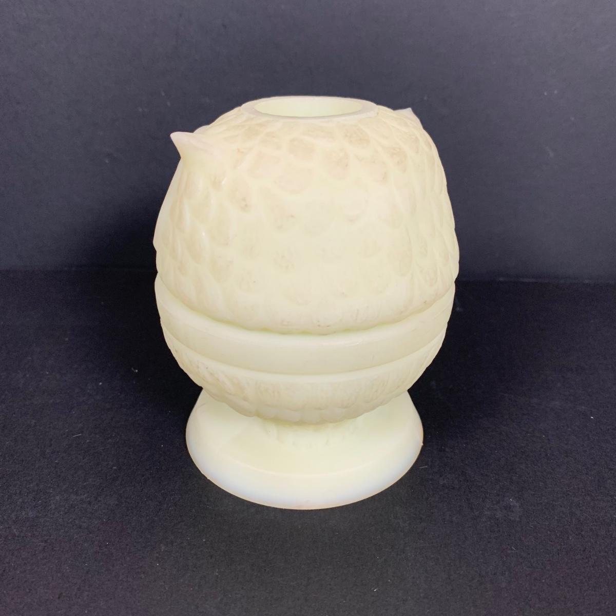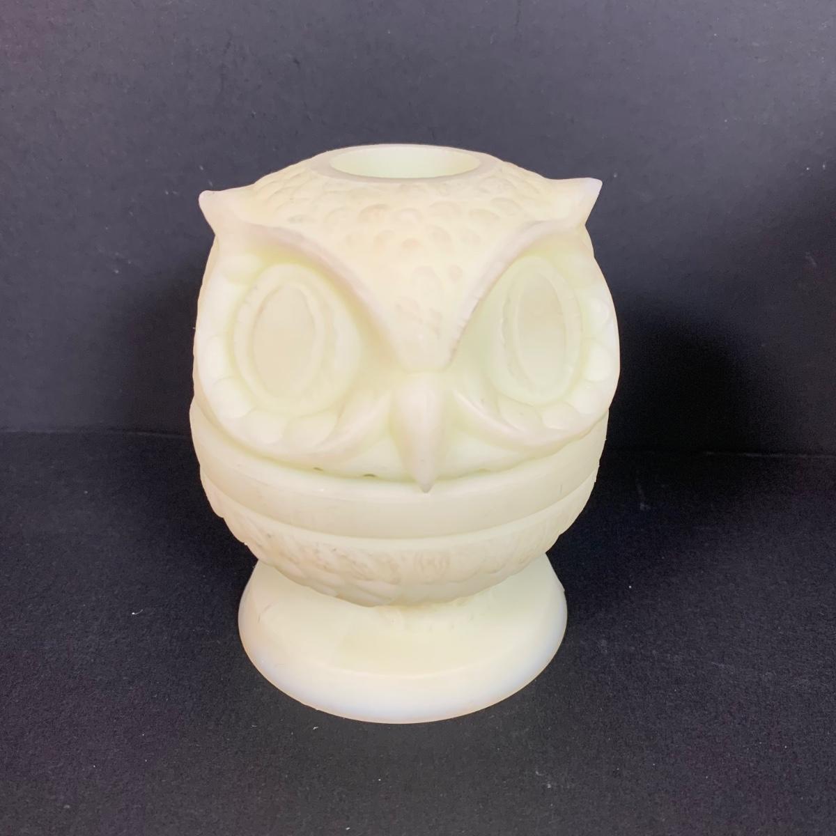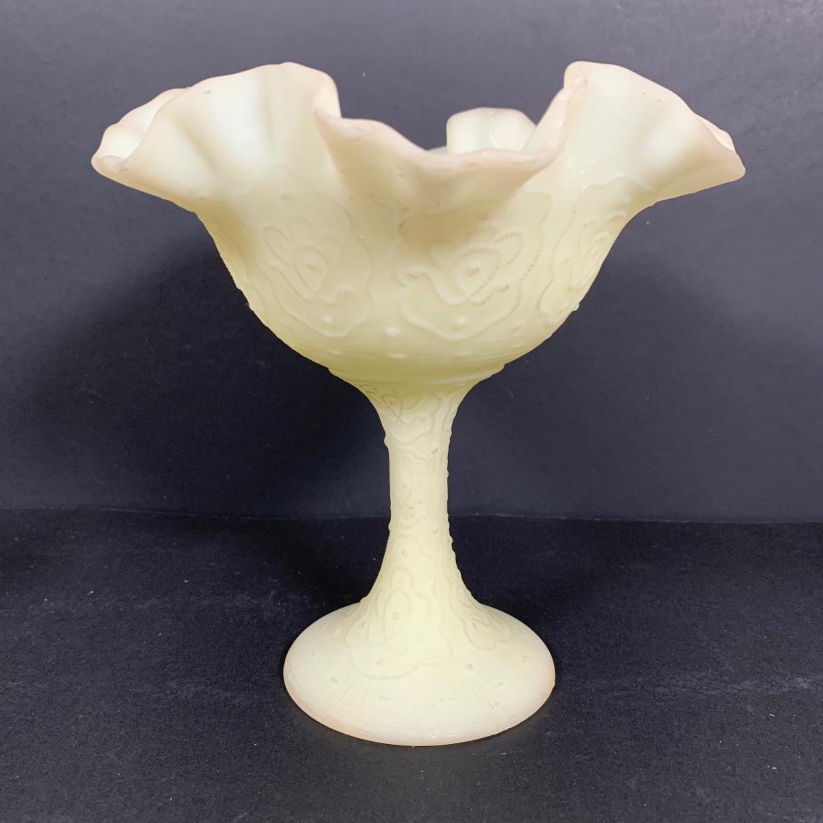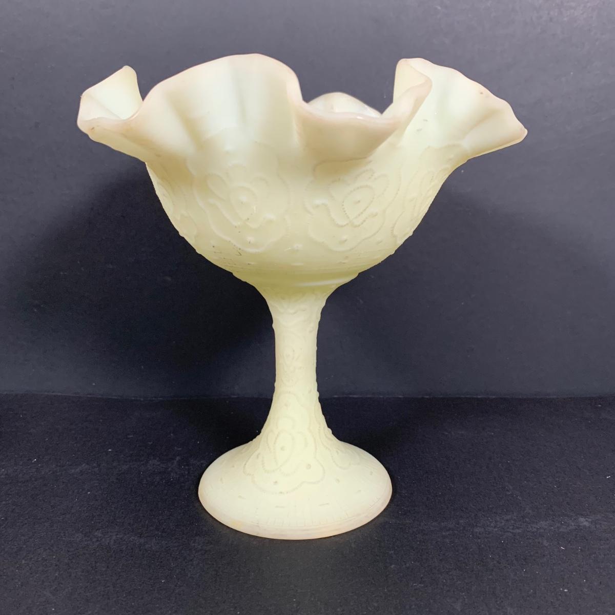 LOT 146: Vintage Fenton Frosted Compote & Owl Fairy Light