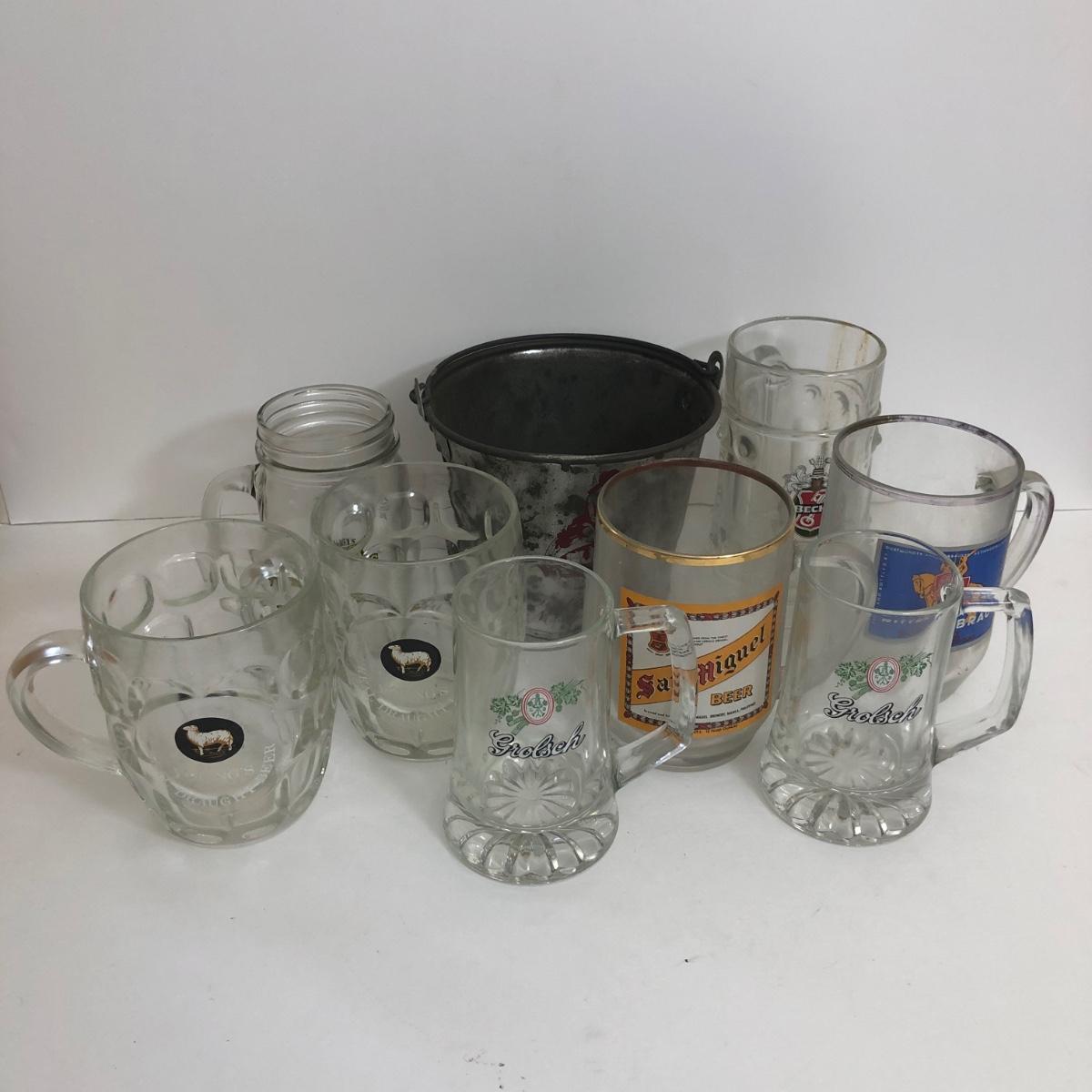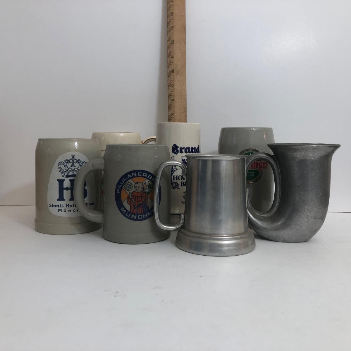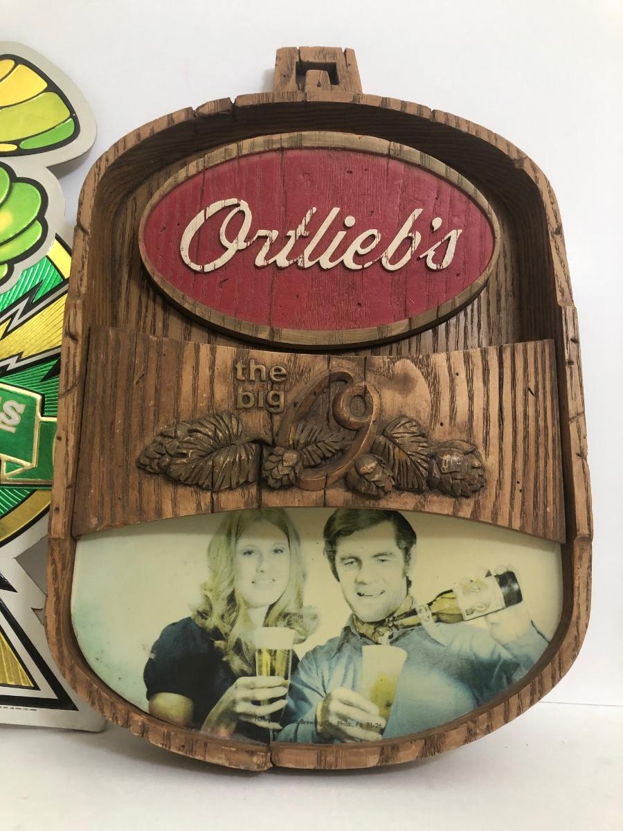 LOT 8A: Beer Lovers' Collection - Embosograph Display Mfg Co Mickey's Malt Liquor Sign, Ortliebs Sign, The Great American Beer Book, Branded Glass Mugs, Ceramic Steins & More