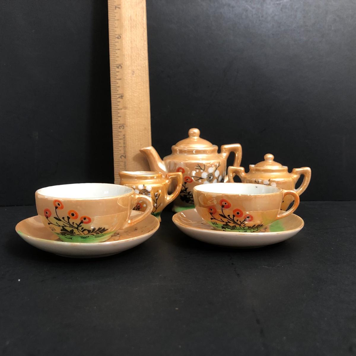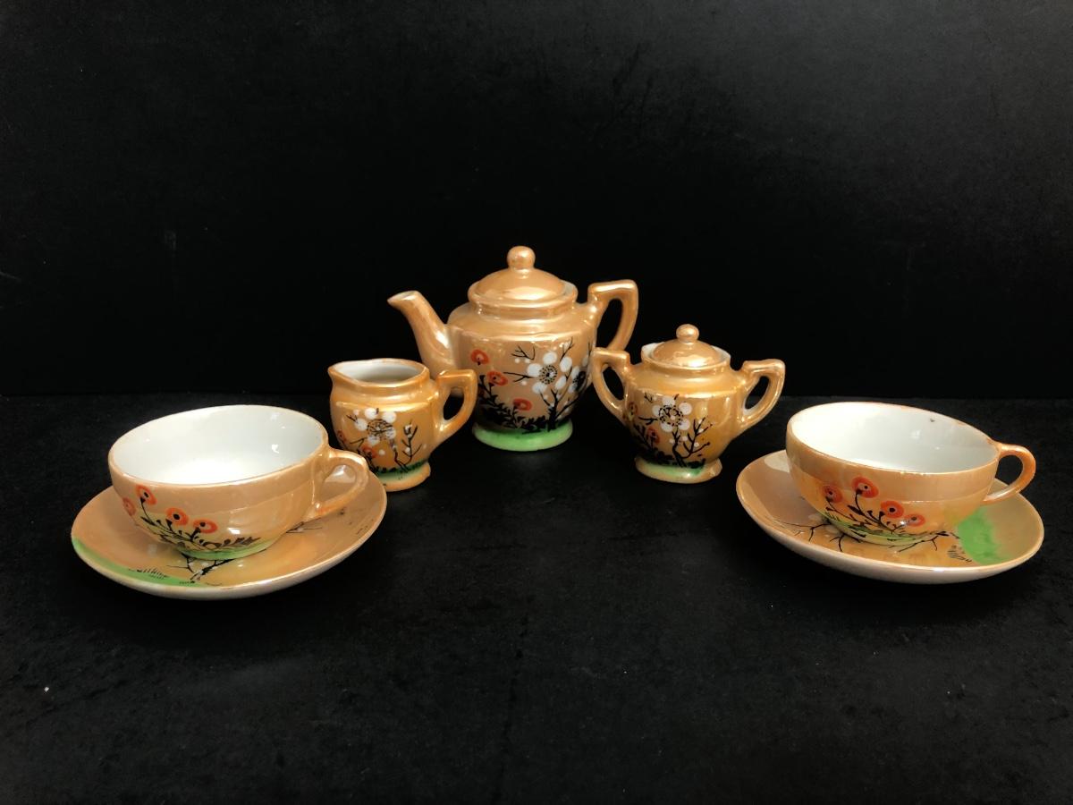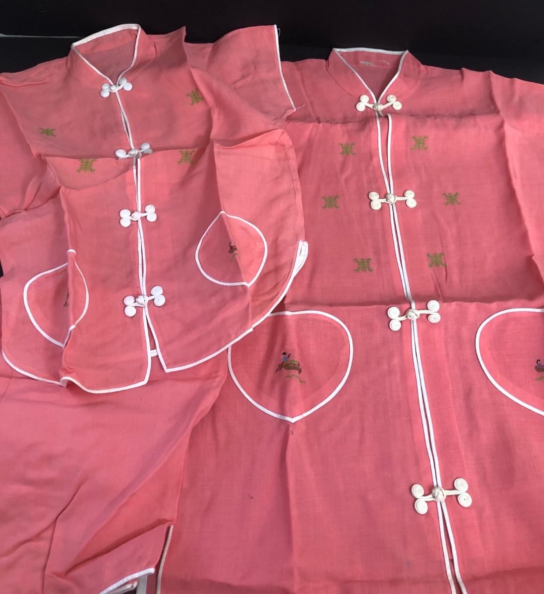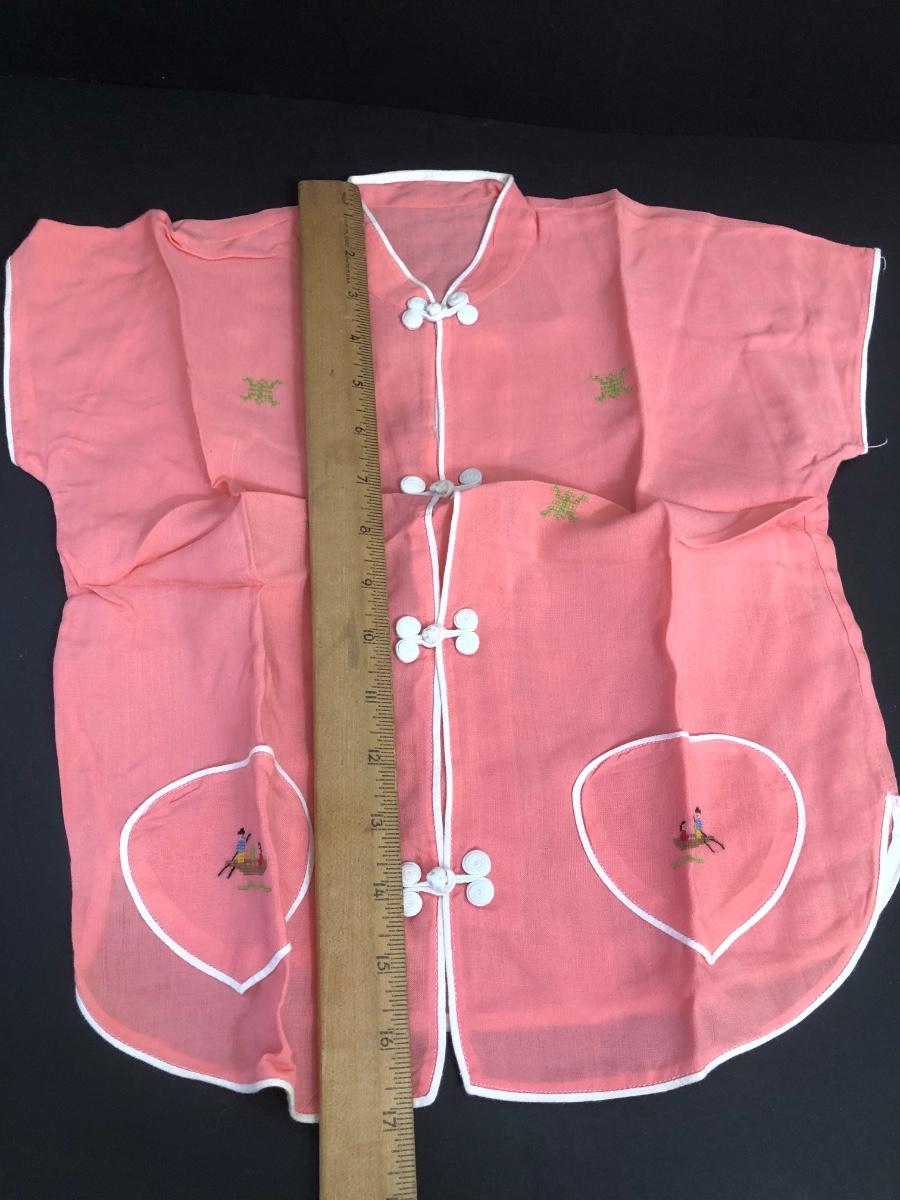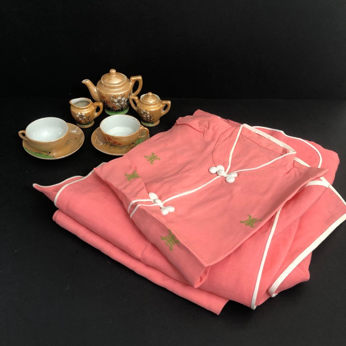 LOT 18A: Vintage Japanese Lusterware Child's Tea Set & Pink Shirts w/ Embroidery