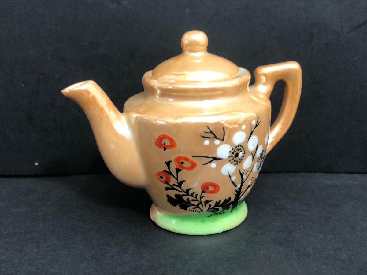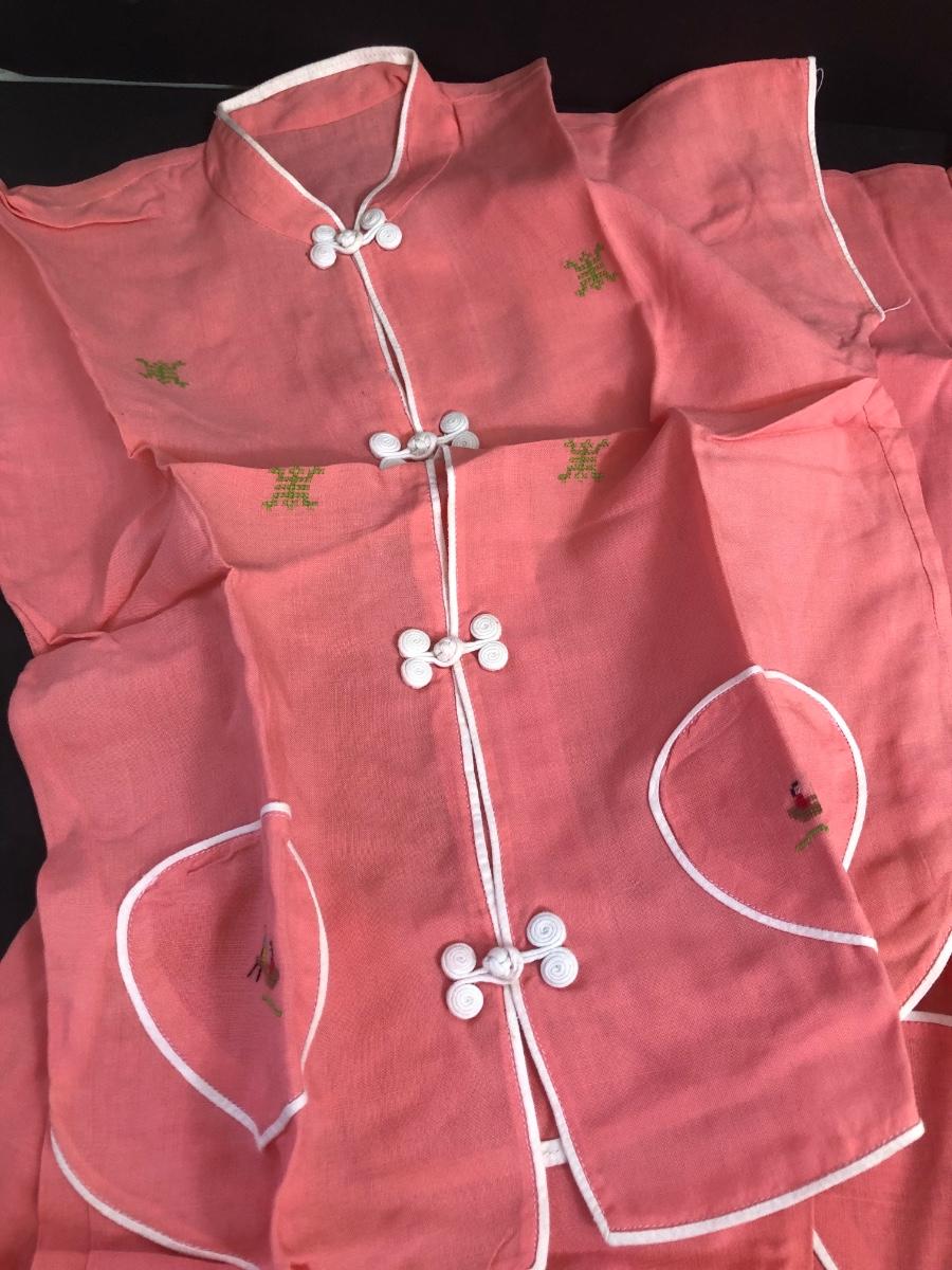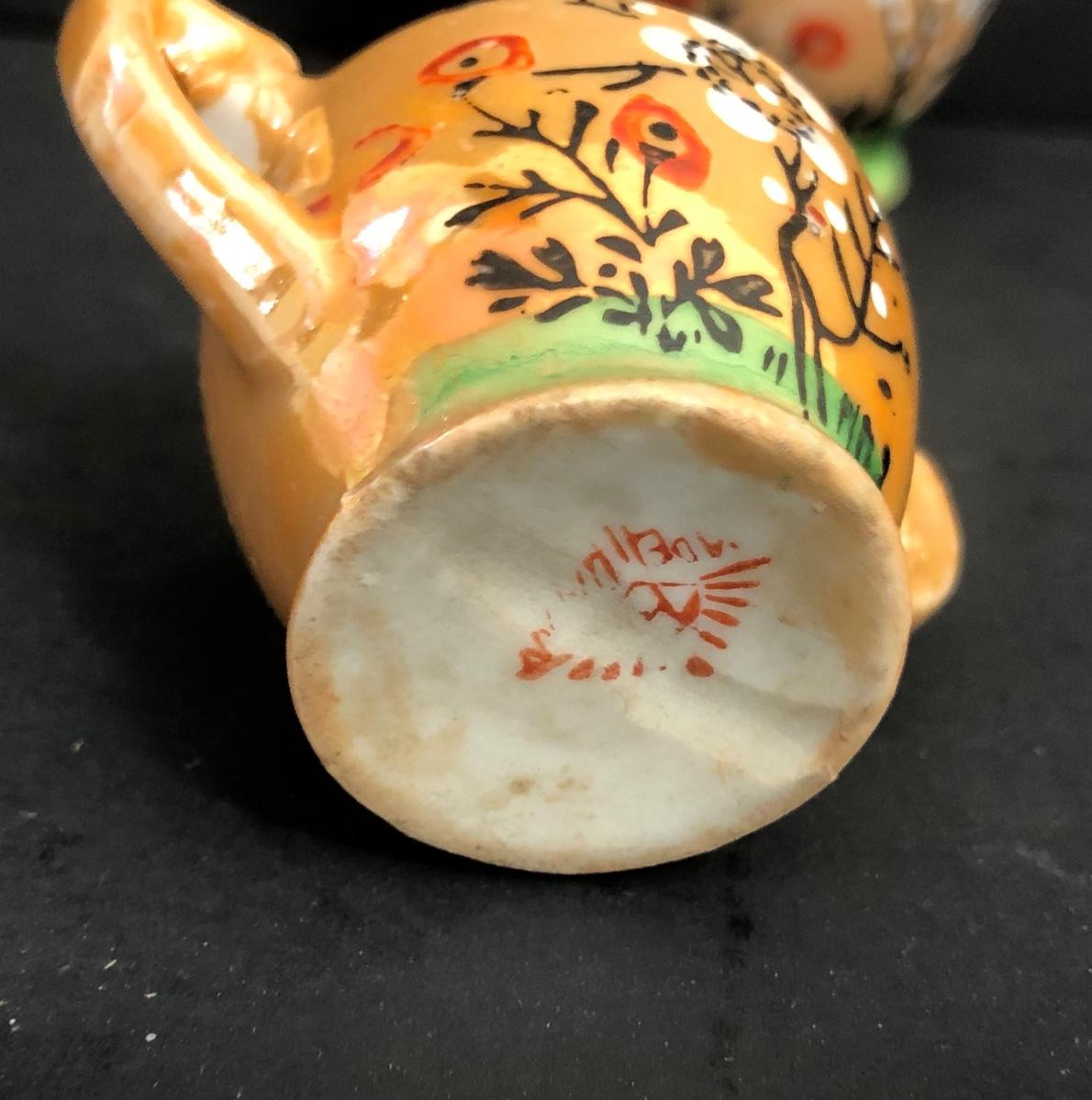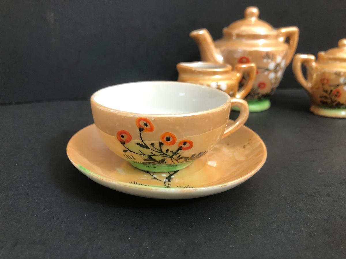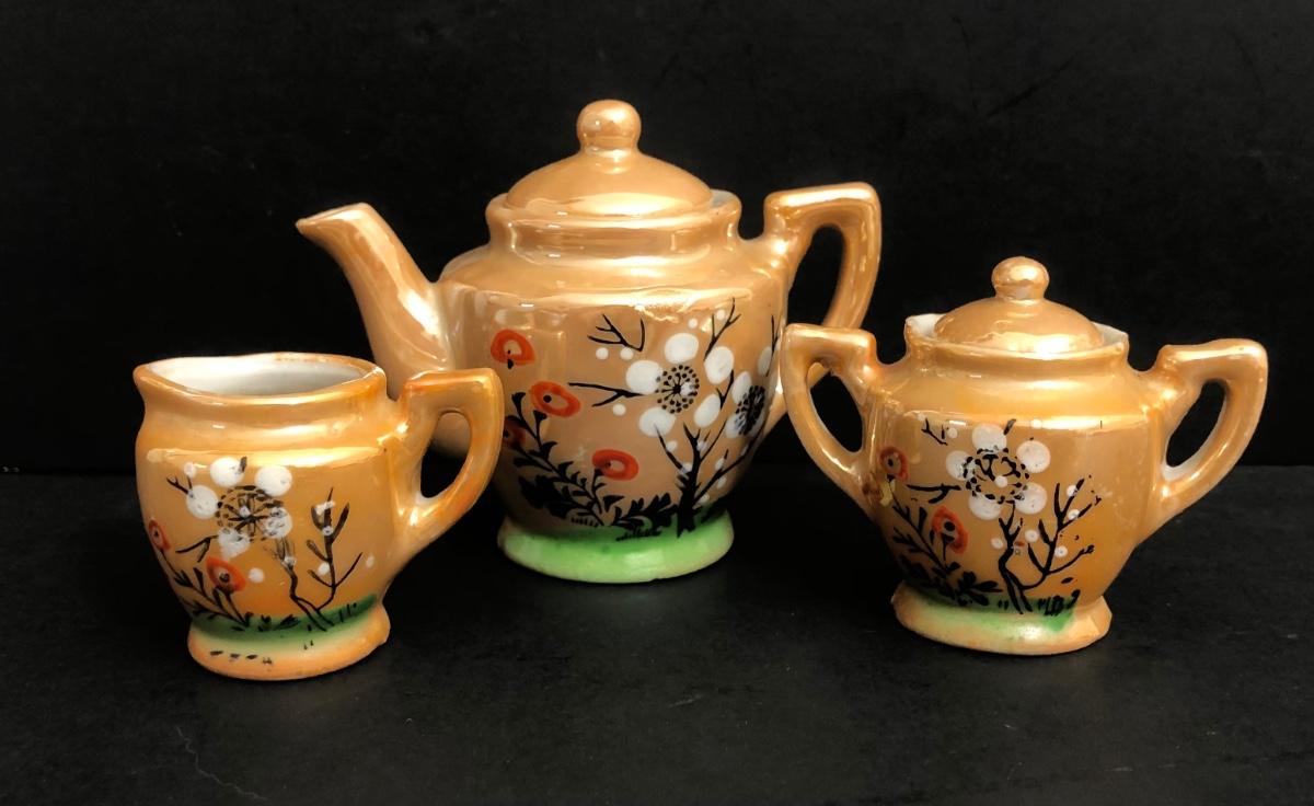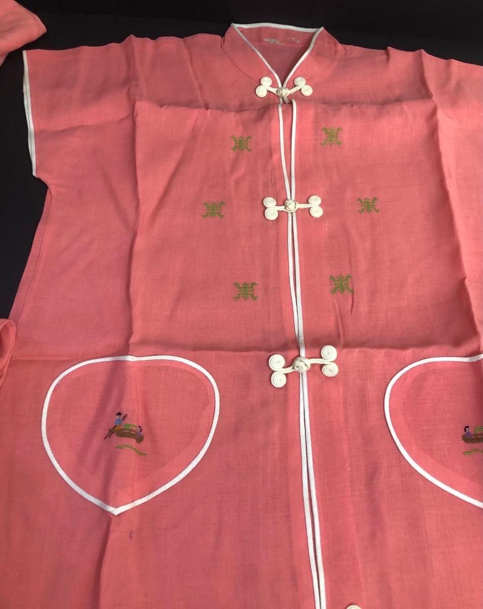 LOT 18A: Vintage Japanese Lusterware Child's Tea Set & Pink Shirts w/ Embroidery