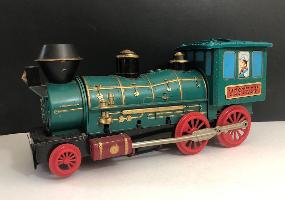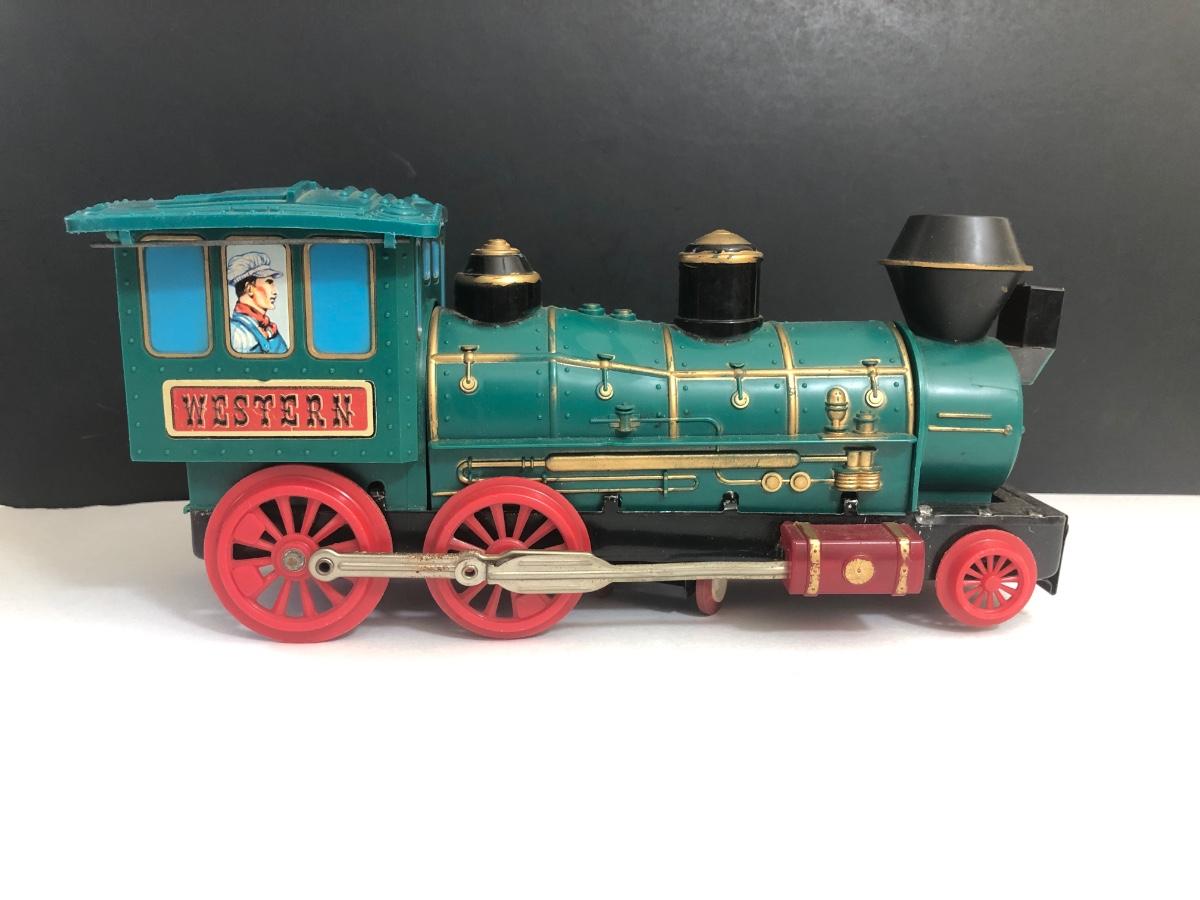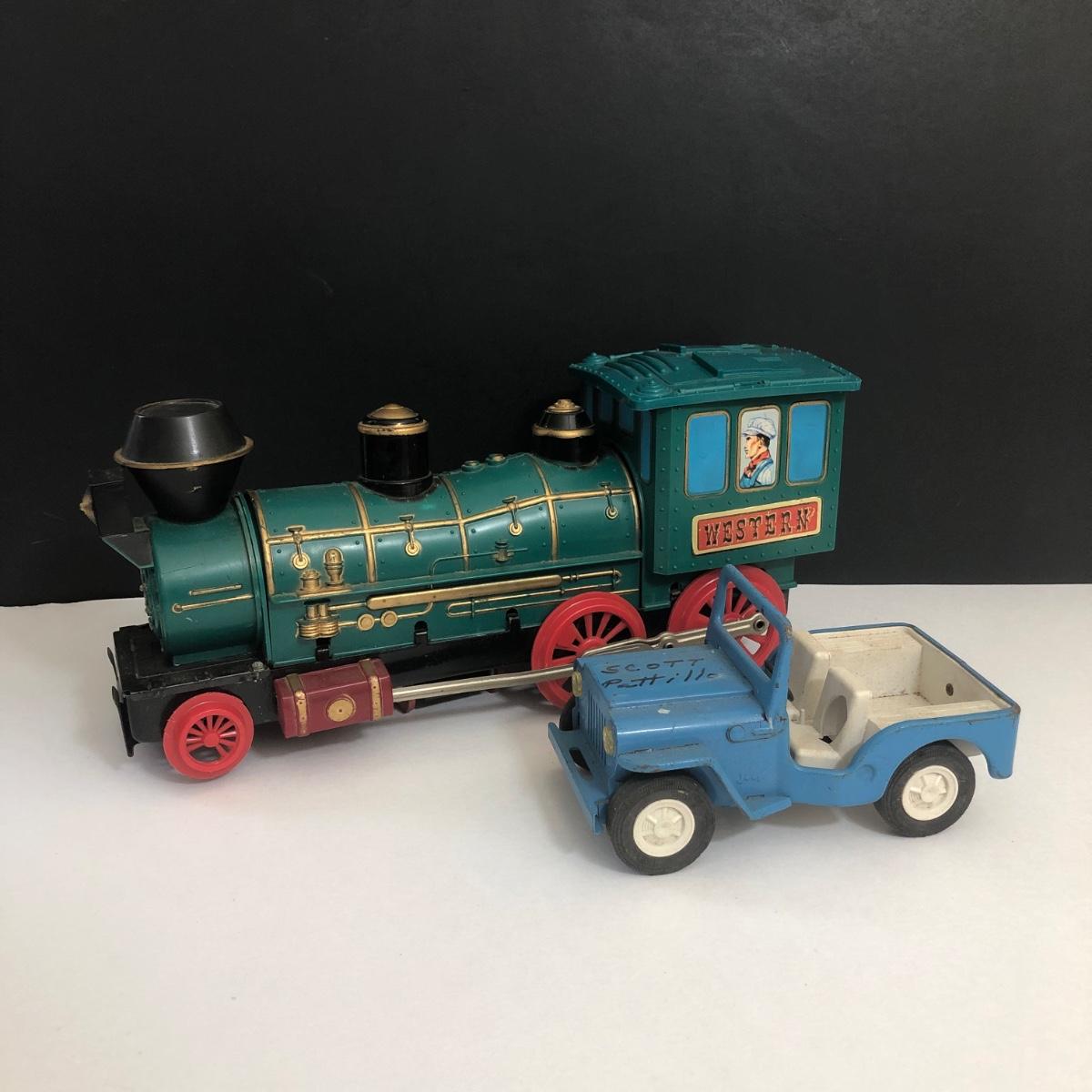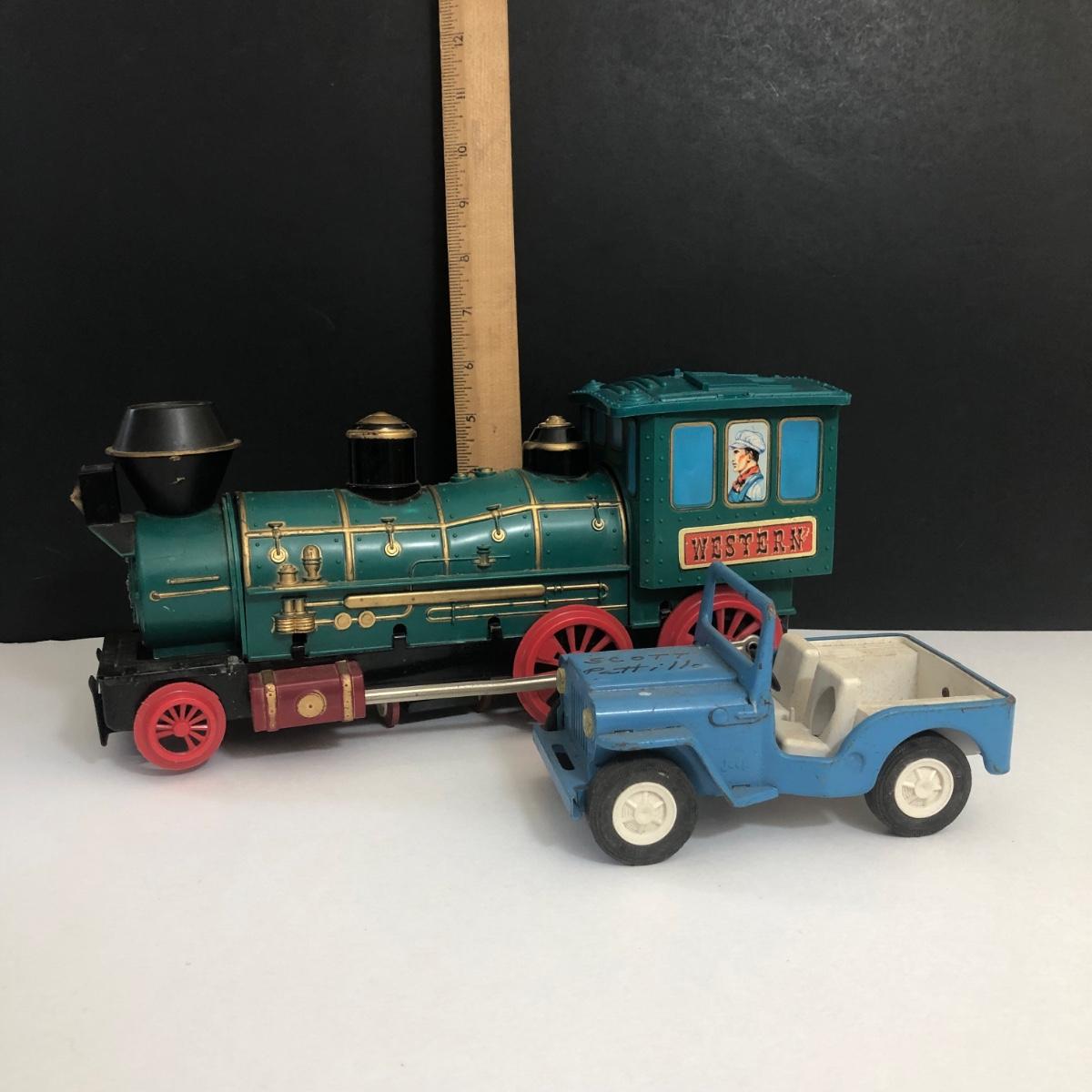 LOT 21A: Vintage 1970s Marx Toys Battery Operated Western Locomotive & 1960s Tonka Metal Jeep