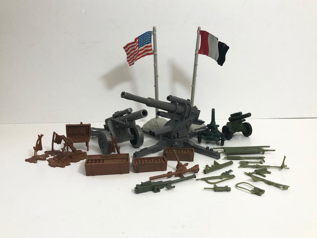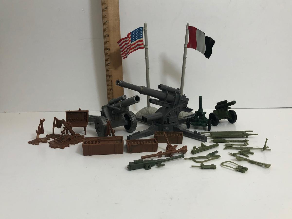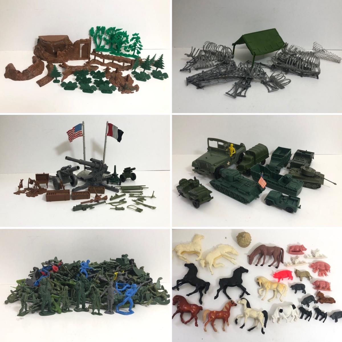 LOT 34A: Huge Collection of Vintage Army Toys w/ Terrain, Vehicles, Flags & More
