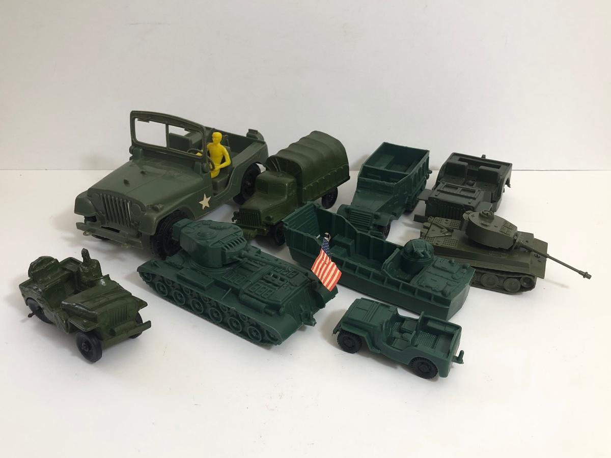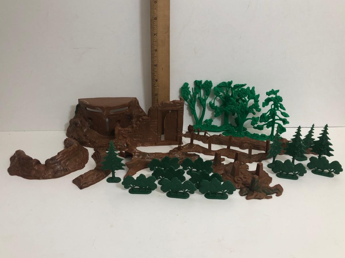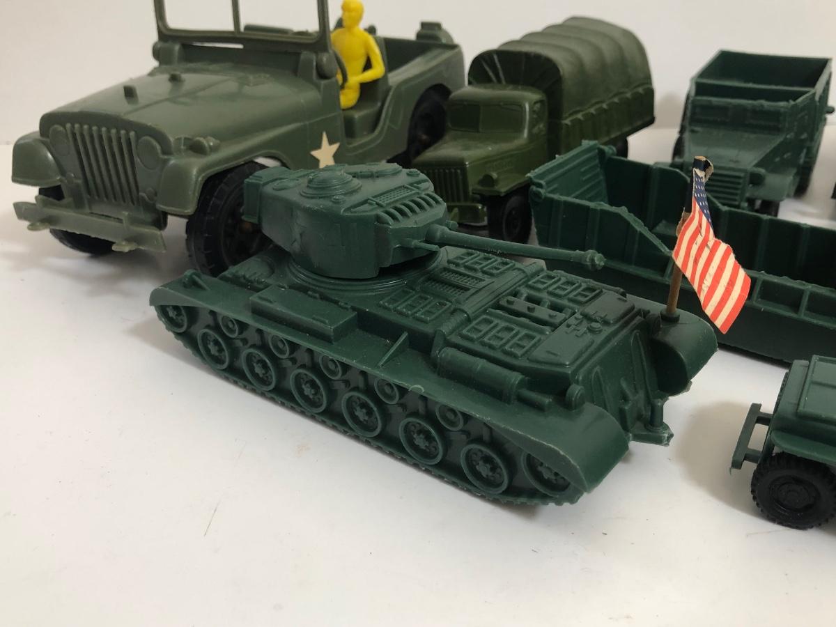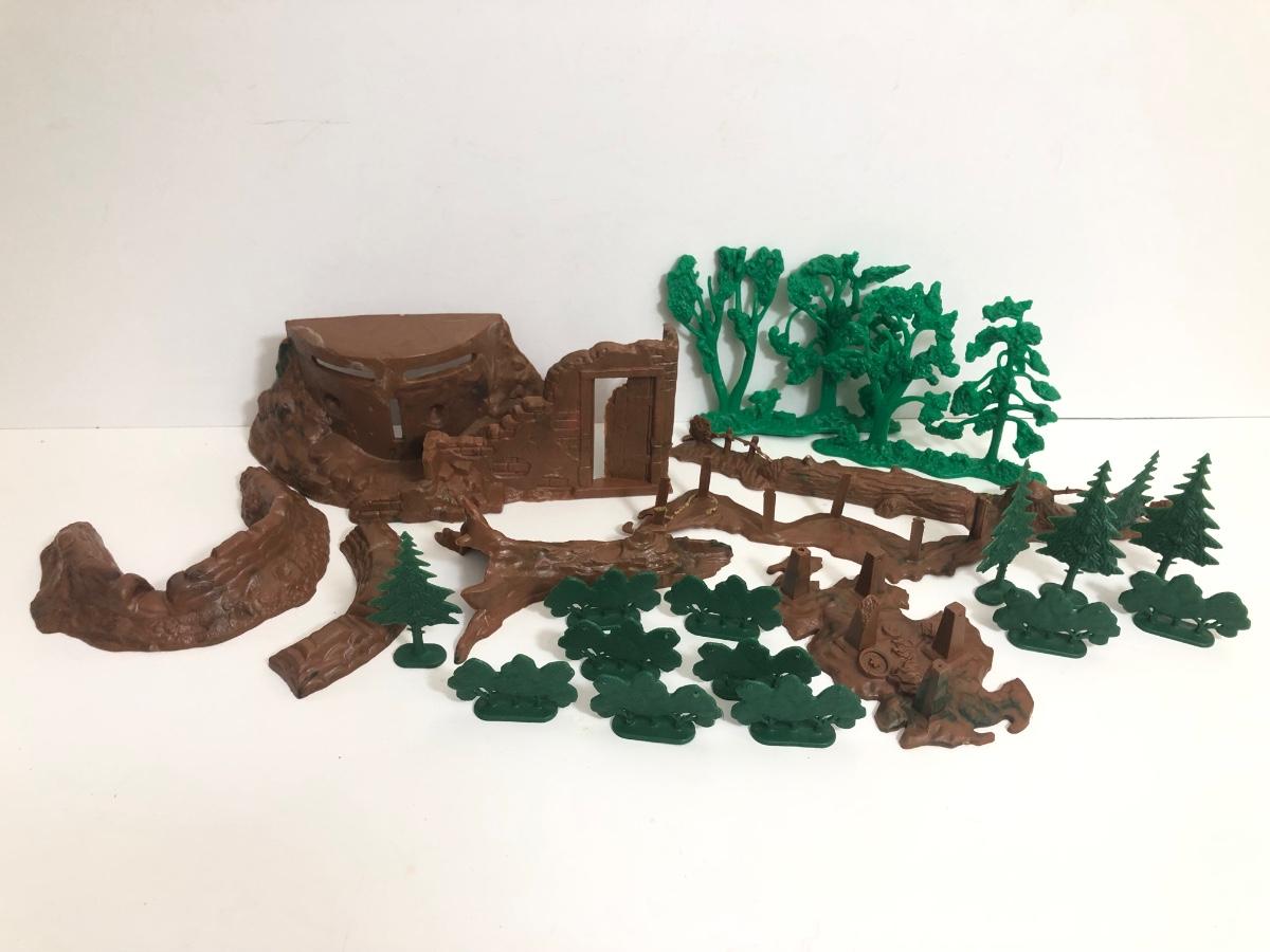LOT 34A: Huge Collection of Vintage Army Toys w/ Terrain, Vehicles, Flags & More