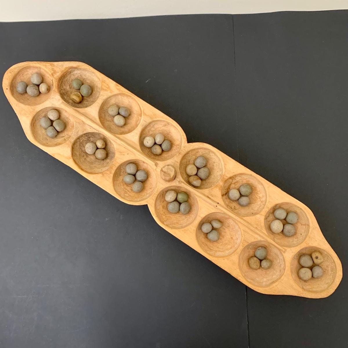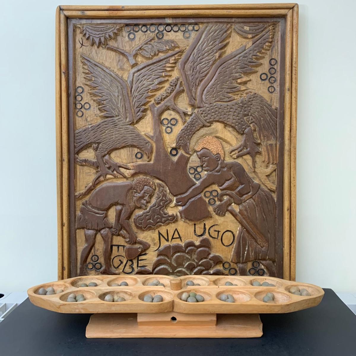 LOT 43 A: Wooden Hand Carved Nigerian Art & Mancala Game