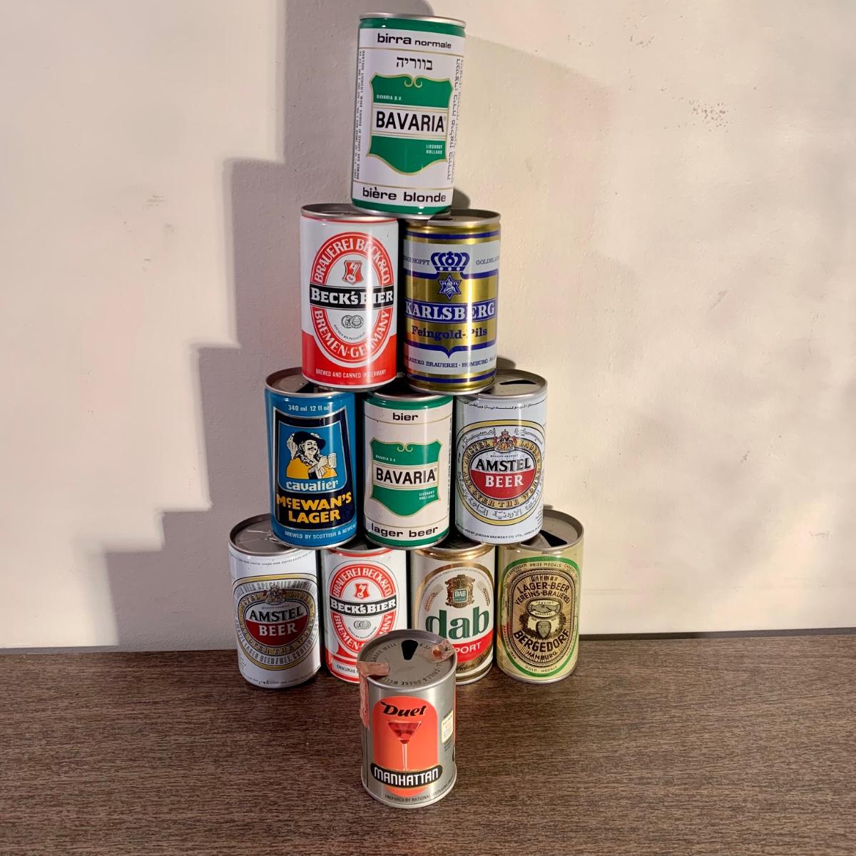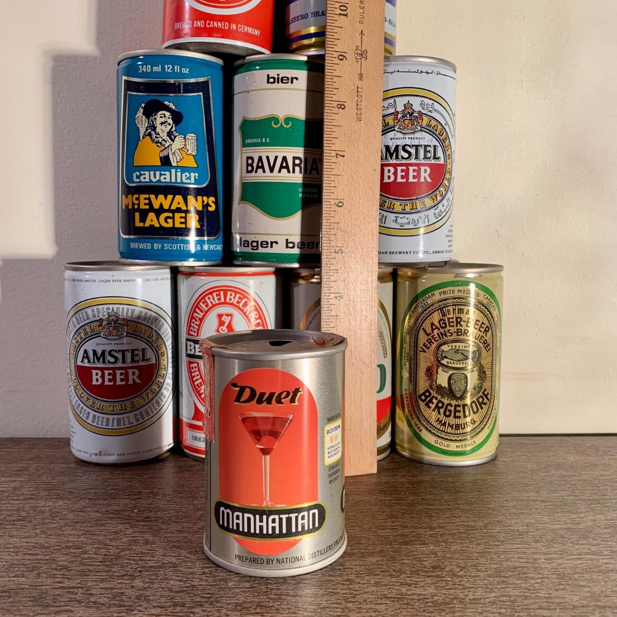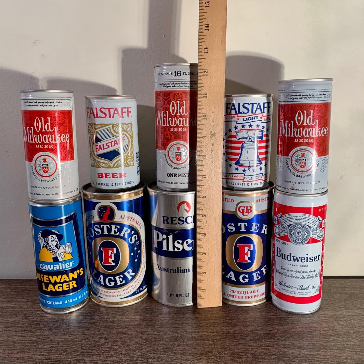 LOT 52 A: Vintage Beer Can Collection: Old Milwaukee, Falstaff, Old Style, Schell's, Schmidt's, Small Rolling Rock Sign & More
