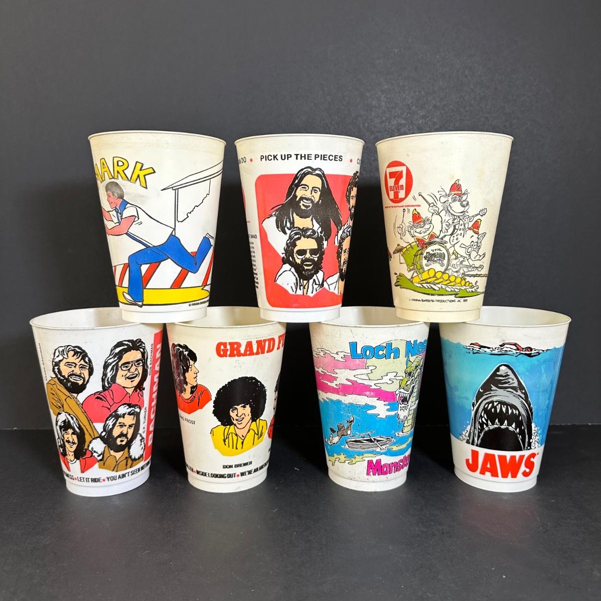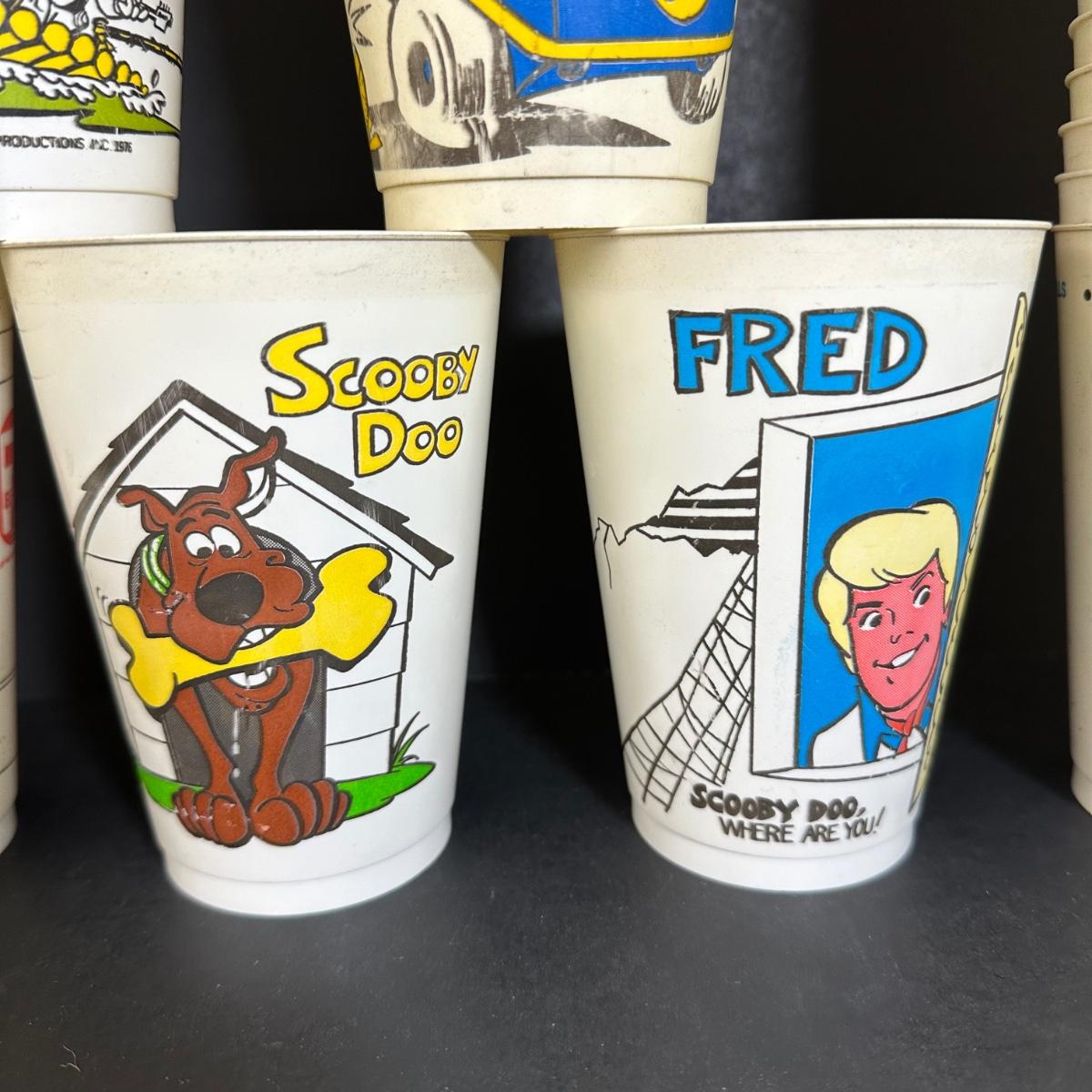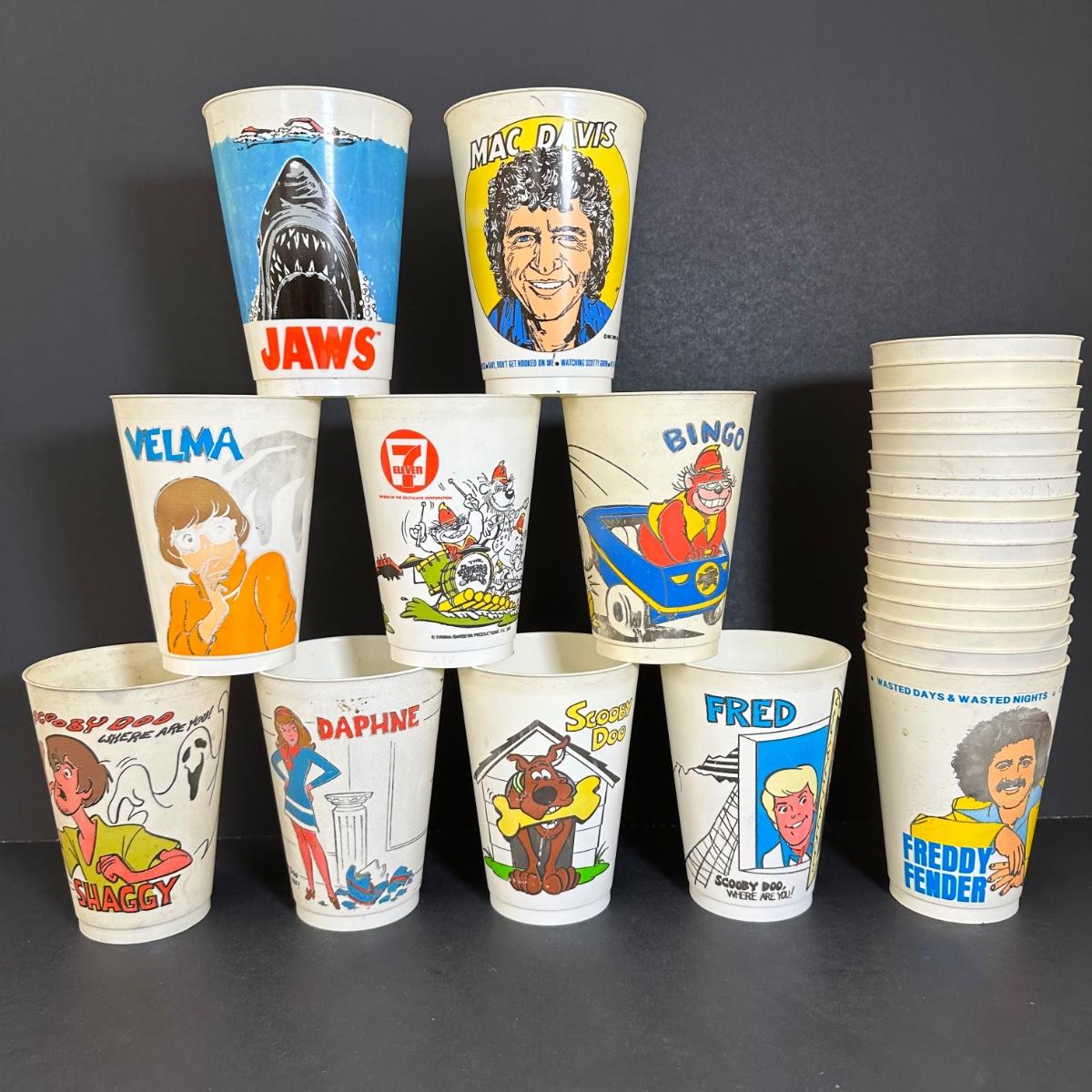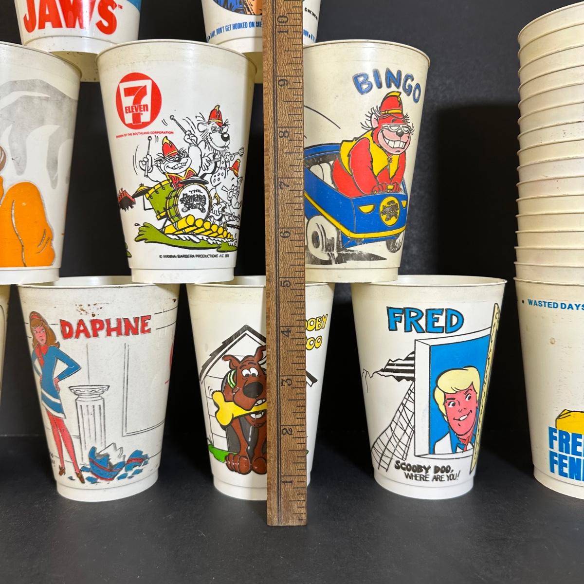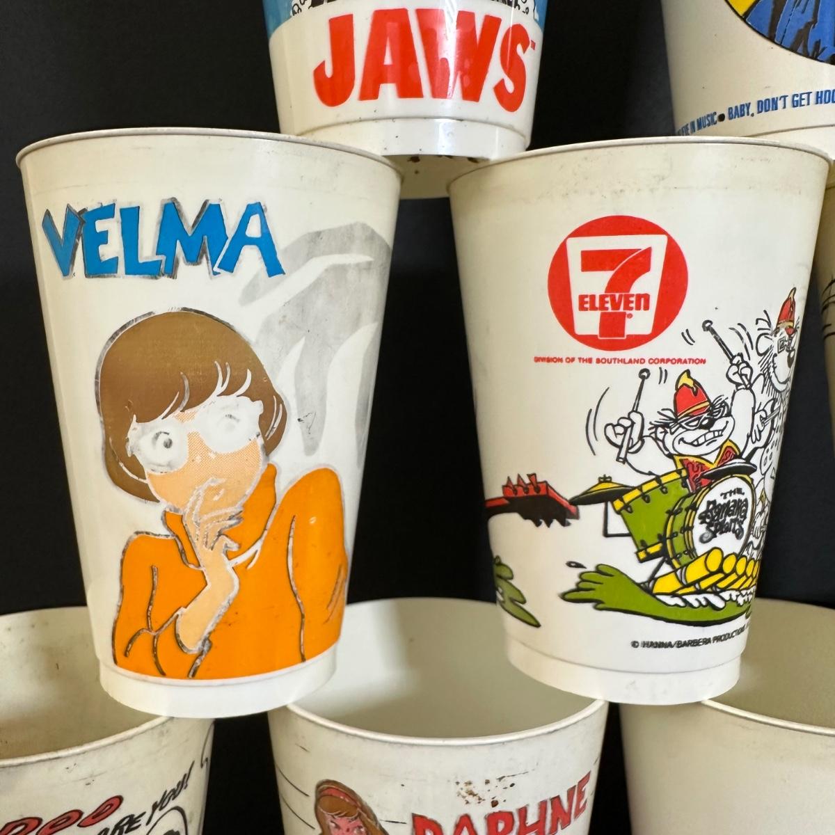 LOT 72A: Vintage 7/11 Slurpee Cup Collection Of Cartoons & Movies - Scooby Doo, Jaws & More