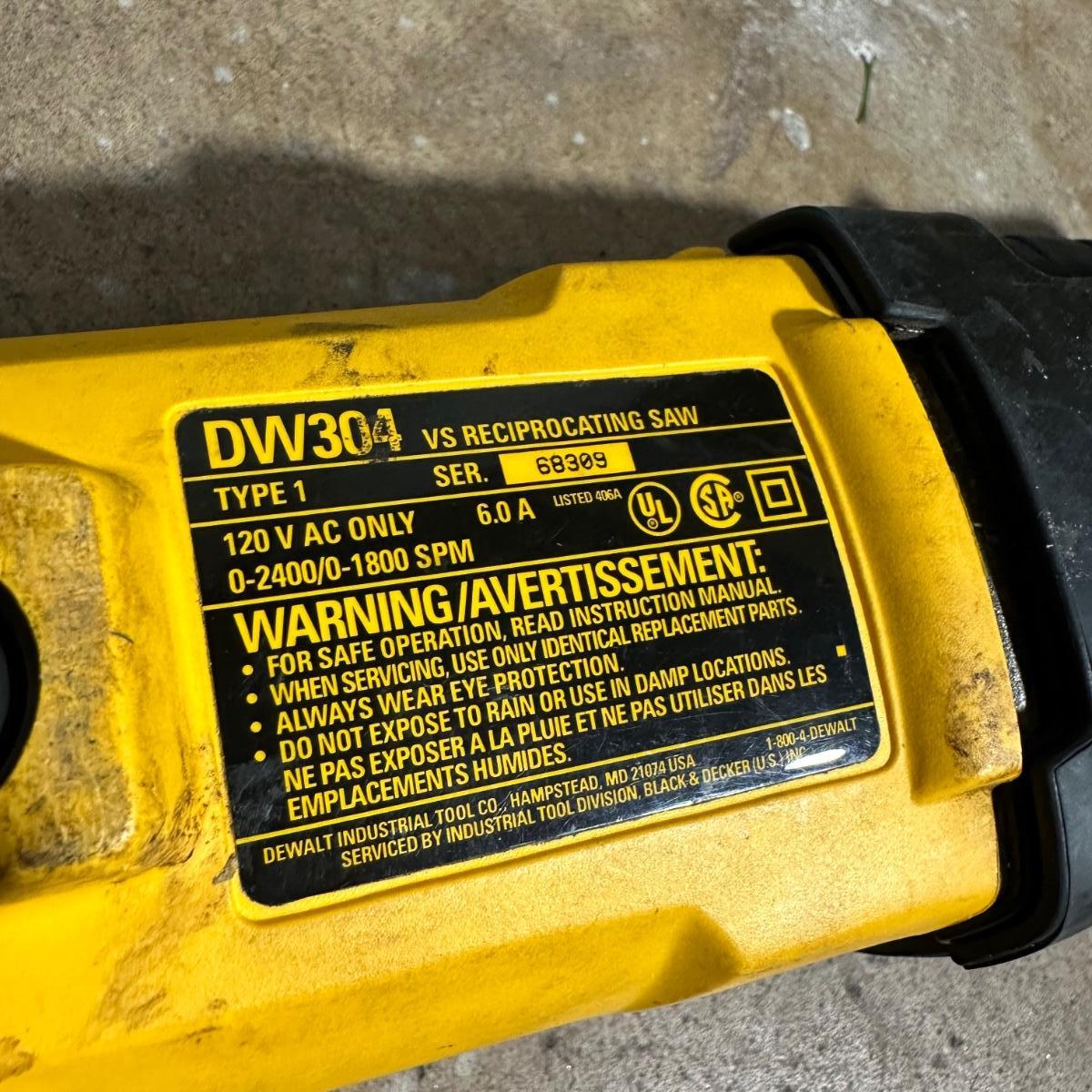 LOT 92G: DeWalt Reciprocating Saw Model DW304 w/ Metal Case