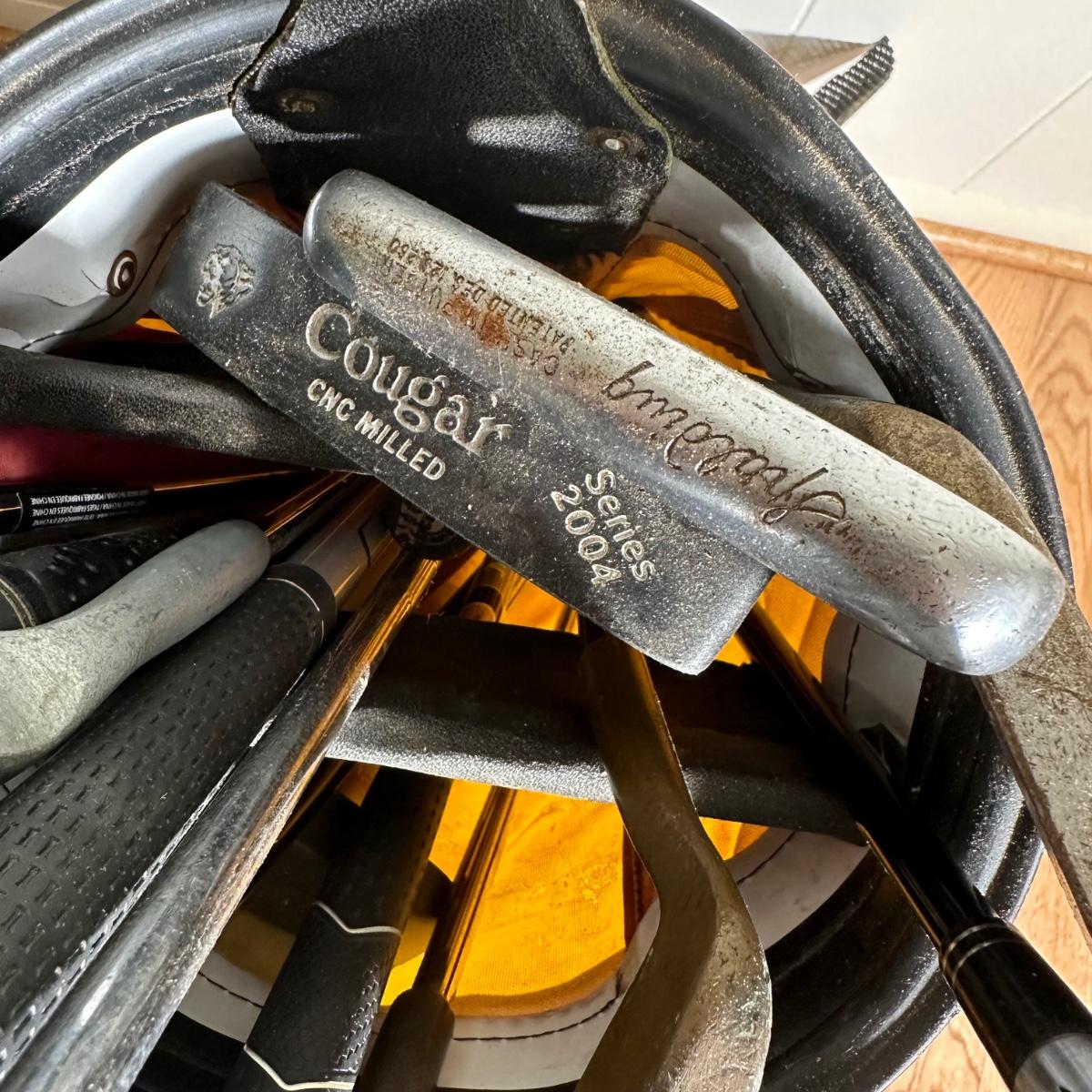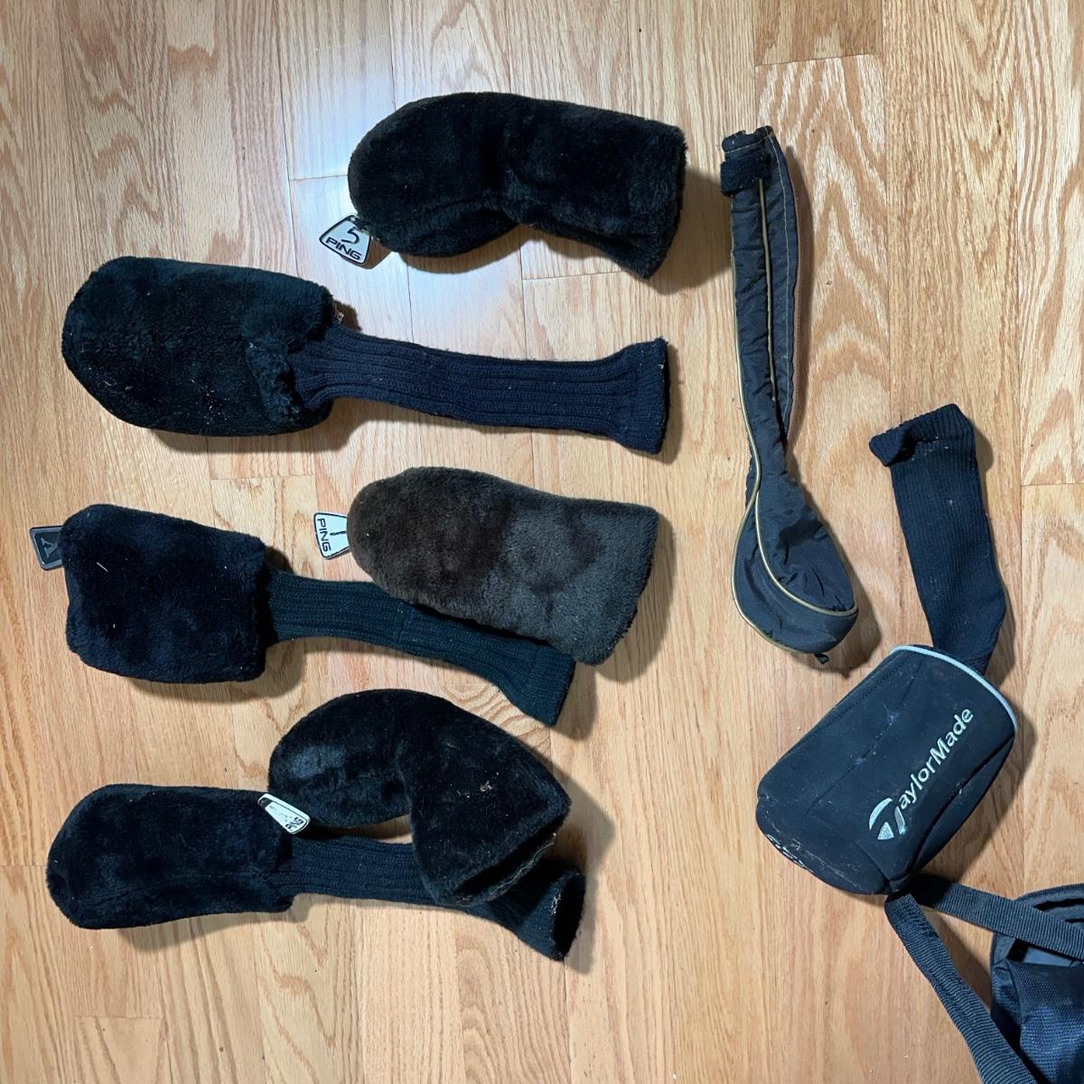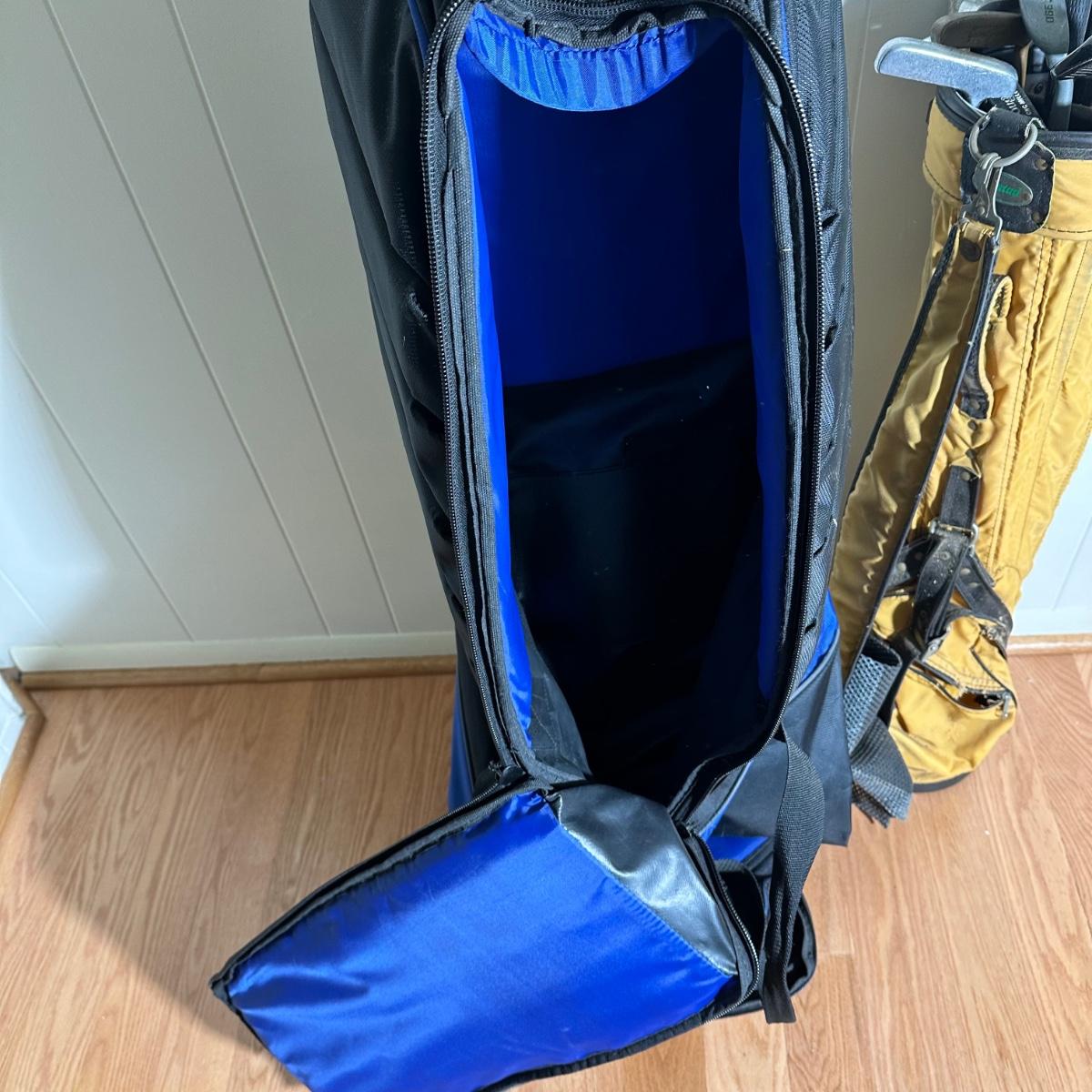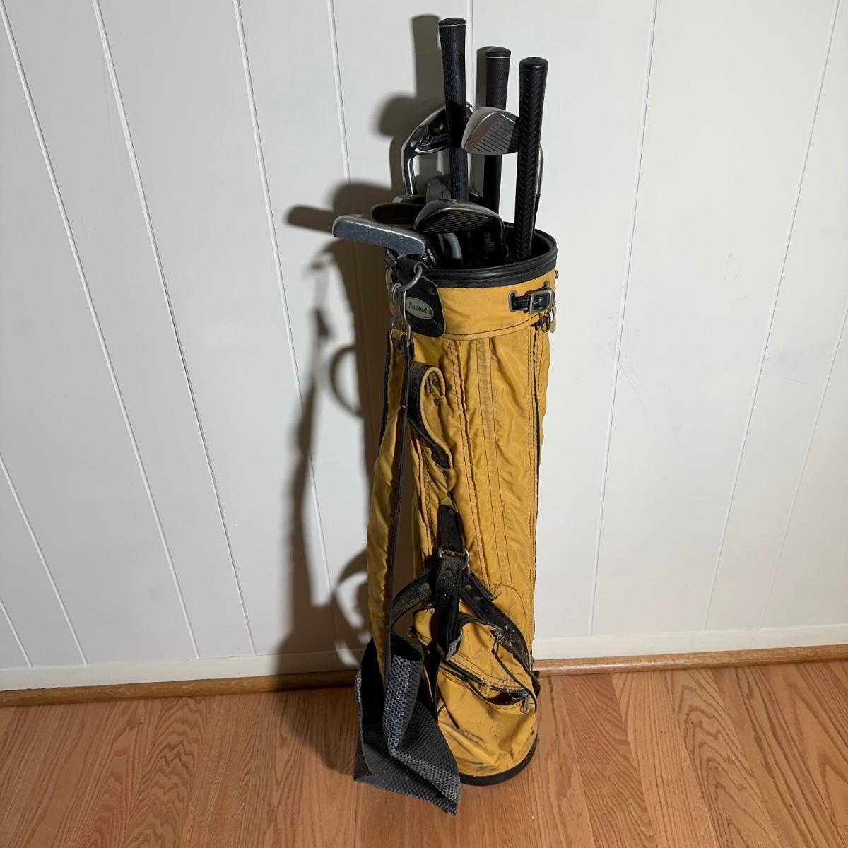 LOT 93F: Golf Collection - Vintage Austad Golf Bag, BagBoy Travel Bag, Socks & Assorted Clubs