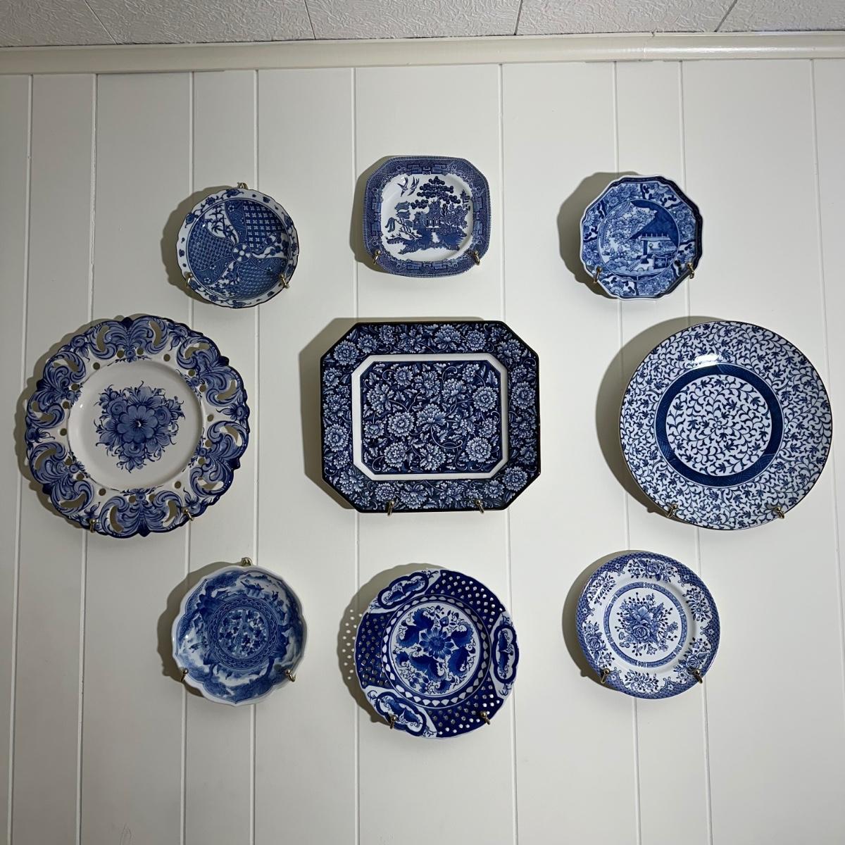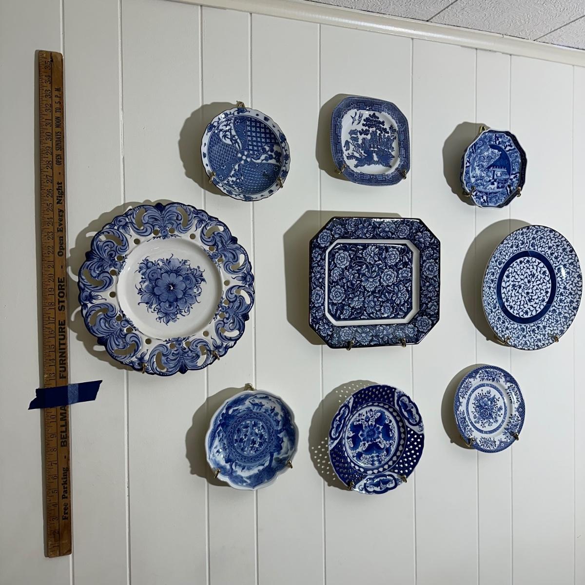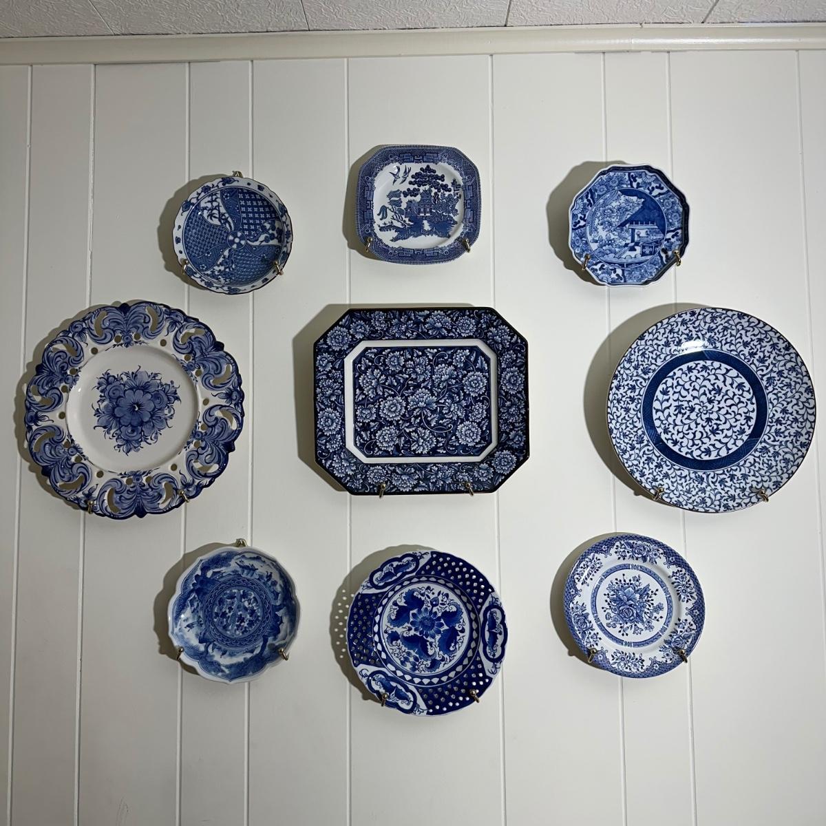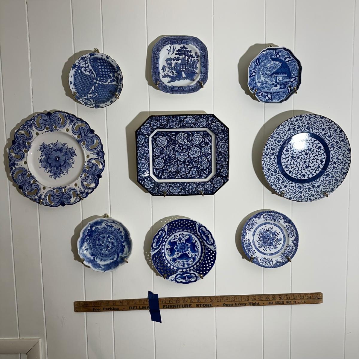 LOT 101F: Collection Of Blue & White China w/ Brass Wall Hangers