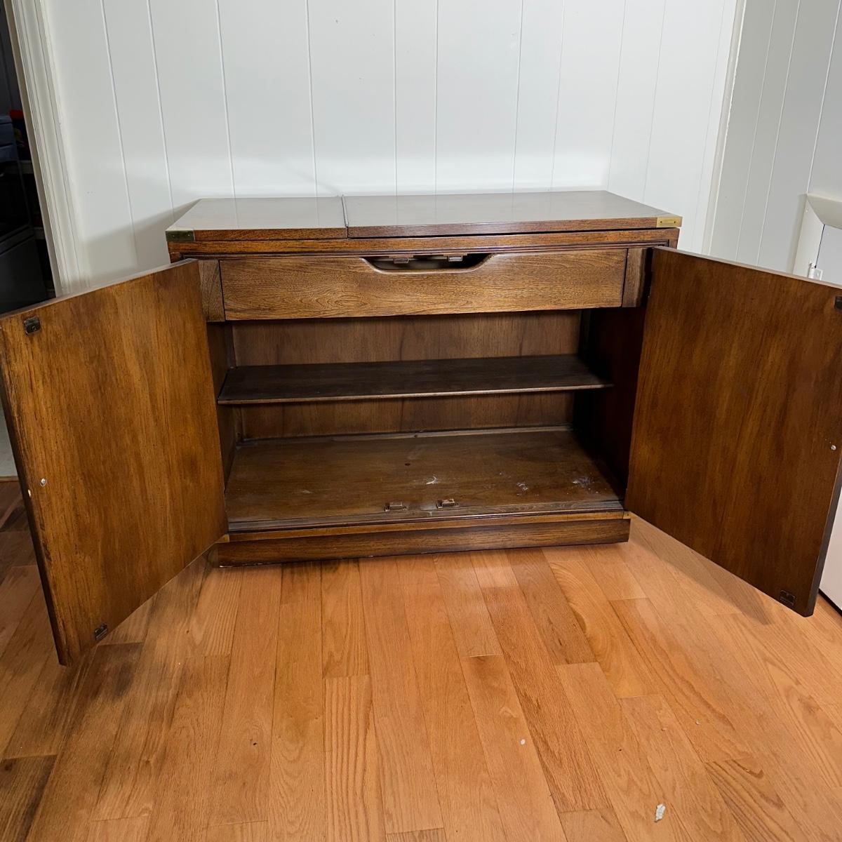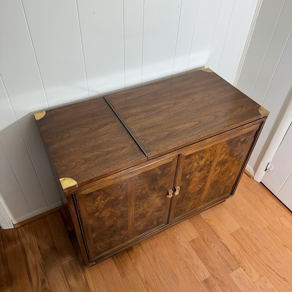 LOT 105F: Vintage Hickory Manufacturing Company Mid Century Burlwood Bar Serving Cart