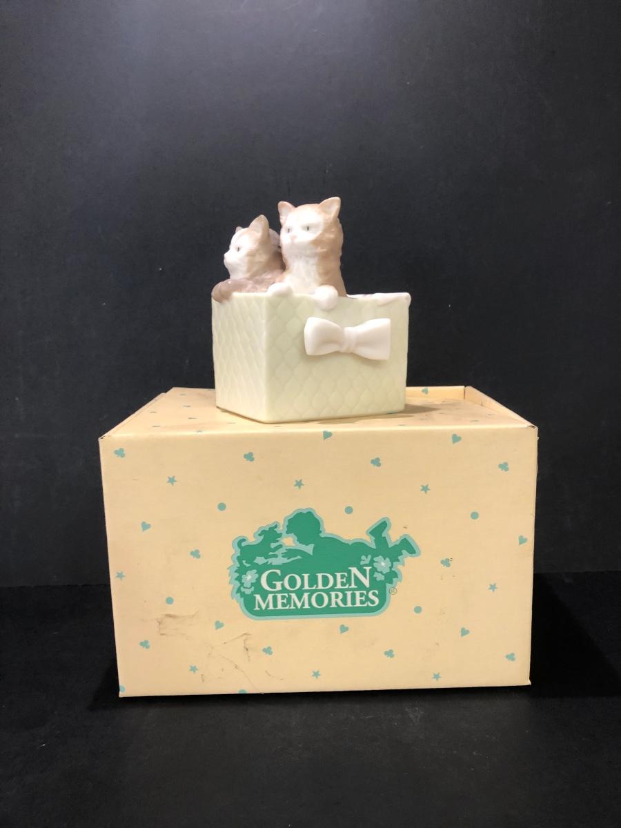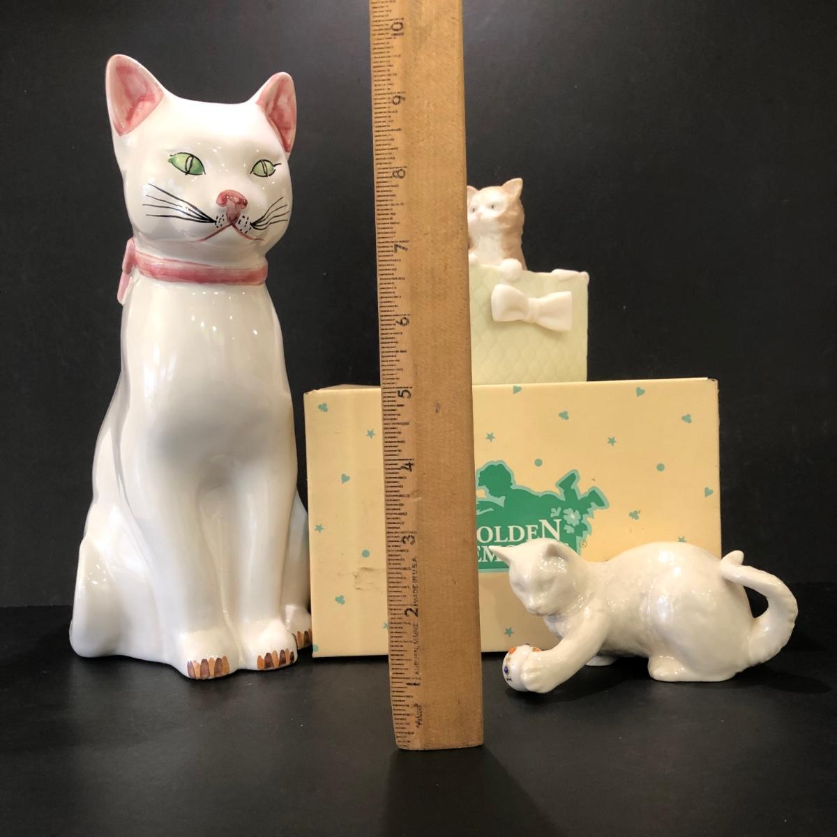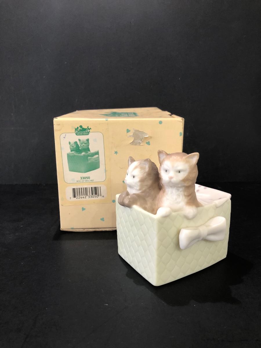 LOT 123K: 1991 Daisa Golden Memories Figurine 33050 Box of Mischief w/ Box, Tall White Cat & Lenox China Jewels Cat