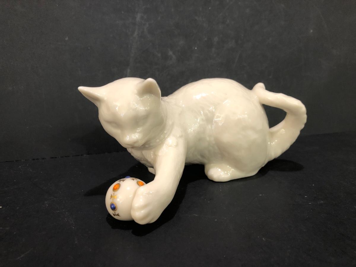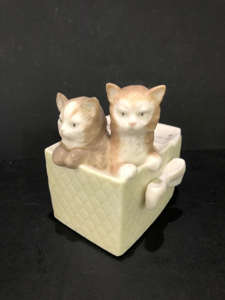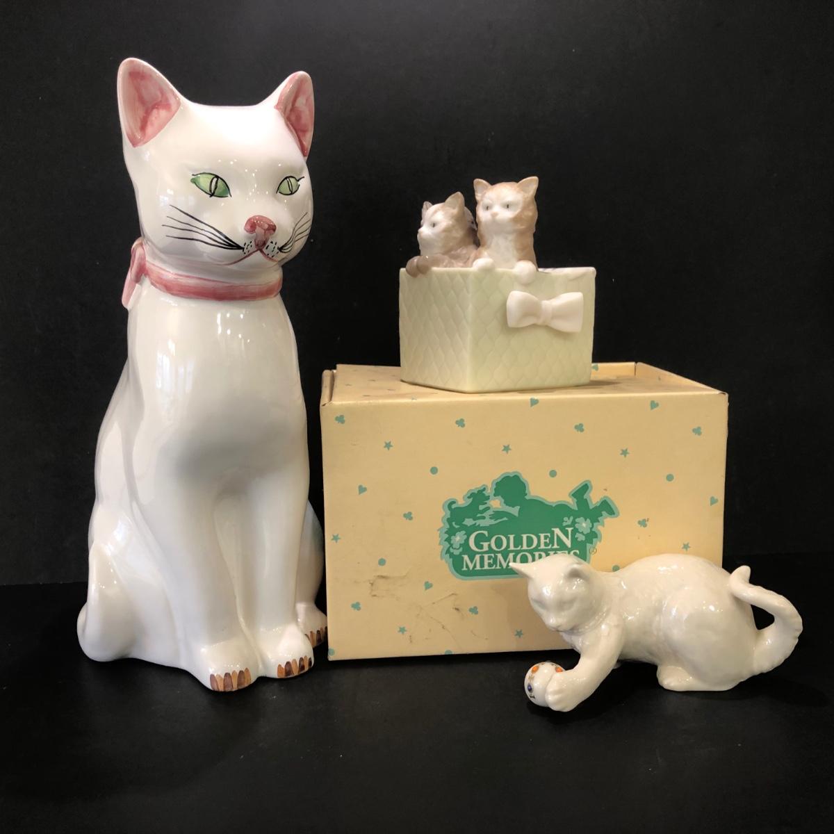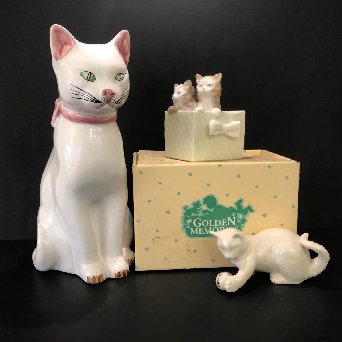 LOT 123K: 1991 Daisa Golden Memories Figurine 33050 Box of Mischief w/ Box, Tall White Cat & Lenox China Jewels Cat