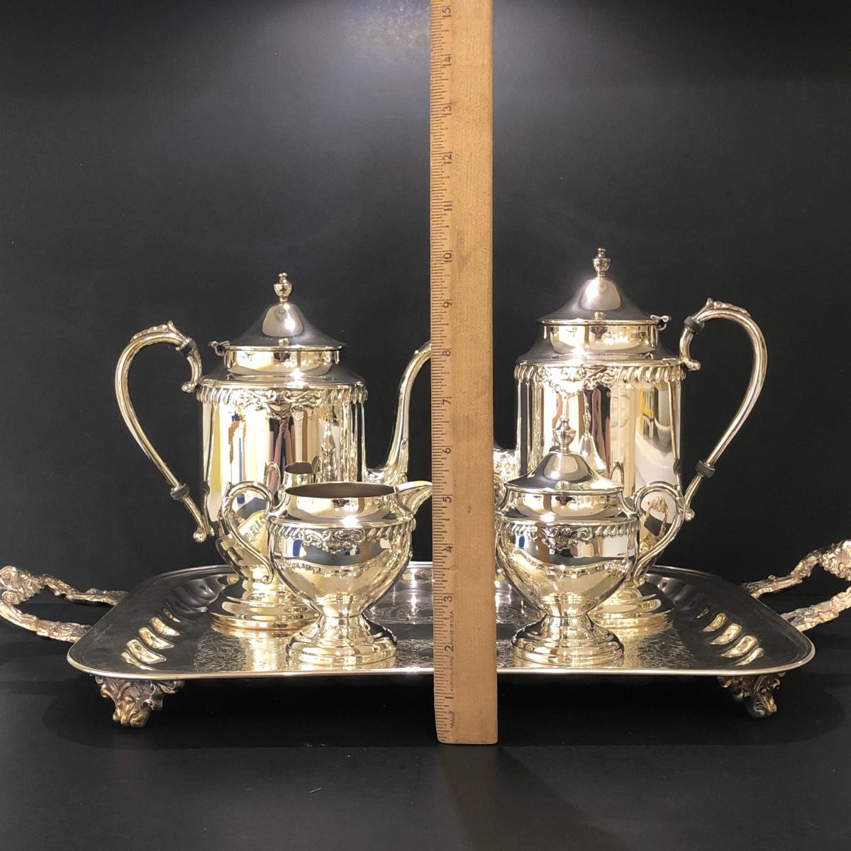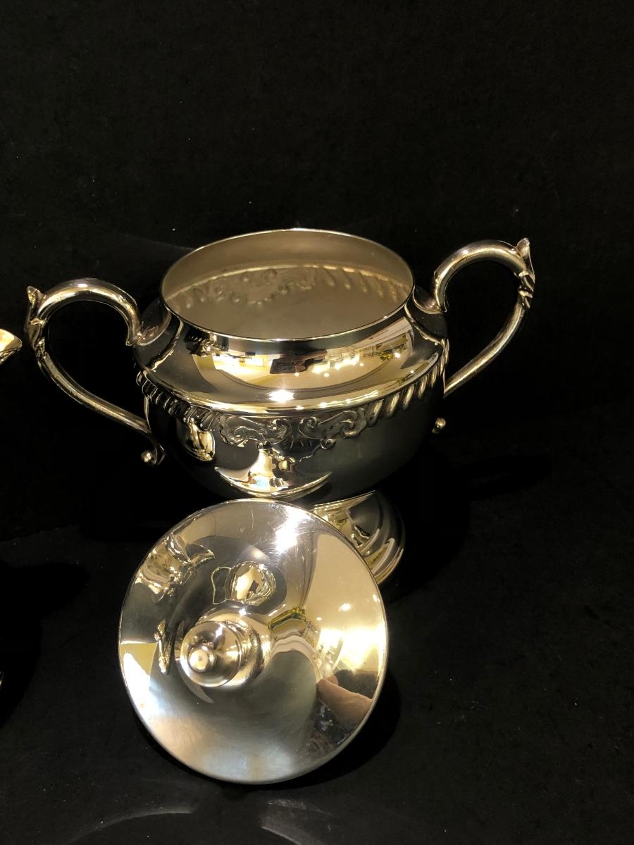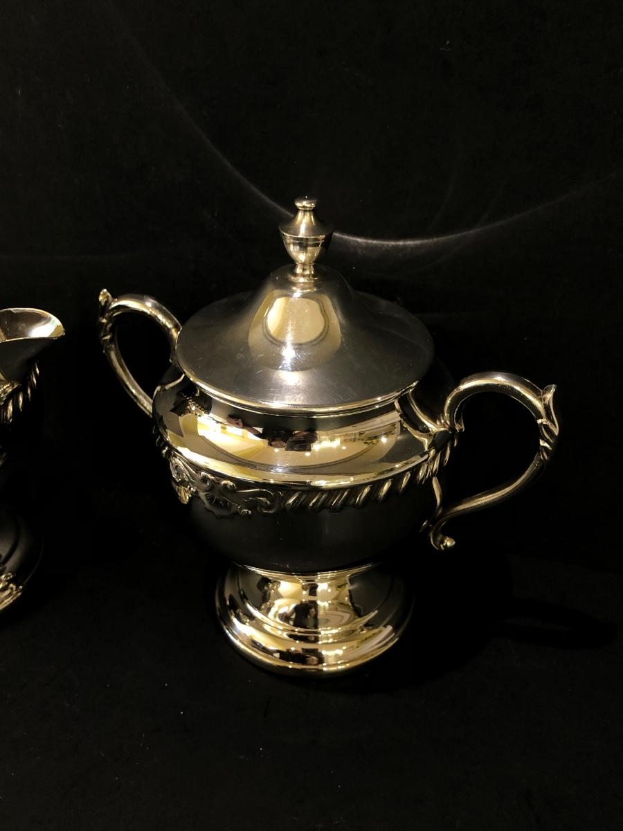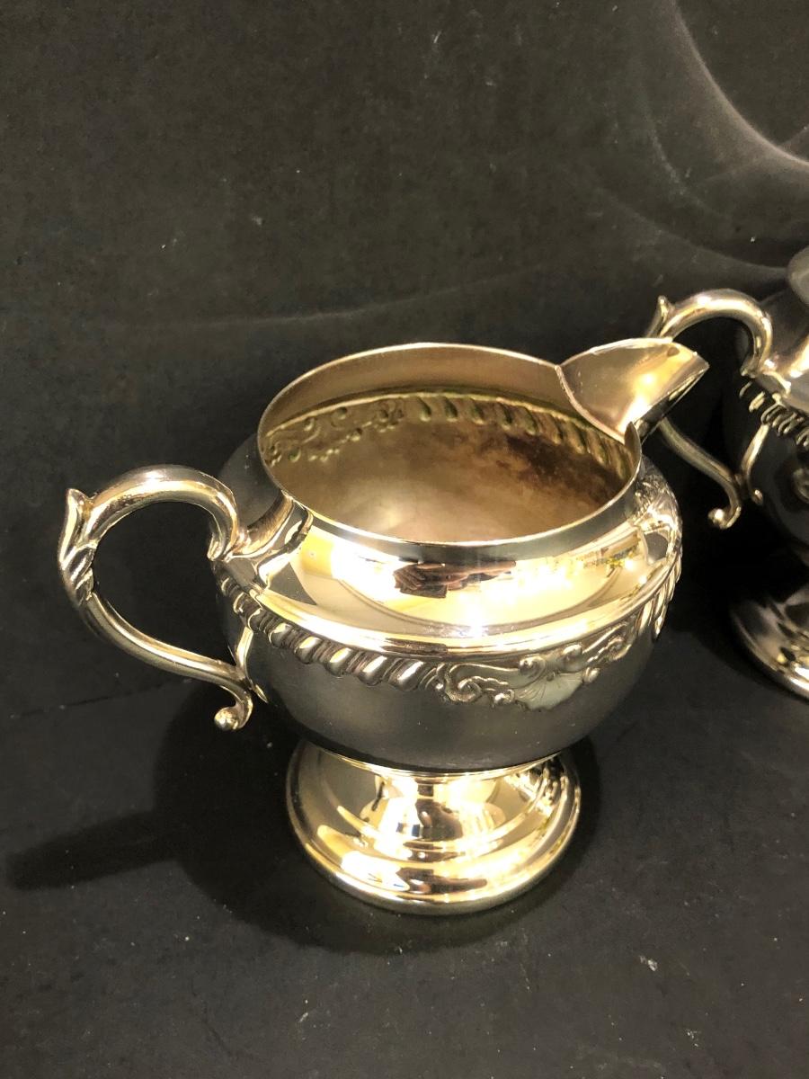LOT 125K: Vintage Sheridan Silver on Copper Tea Set