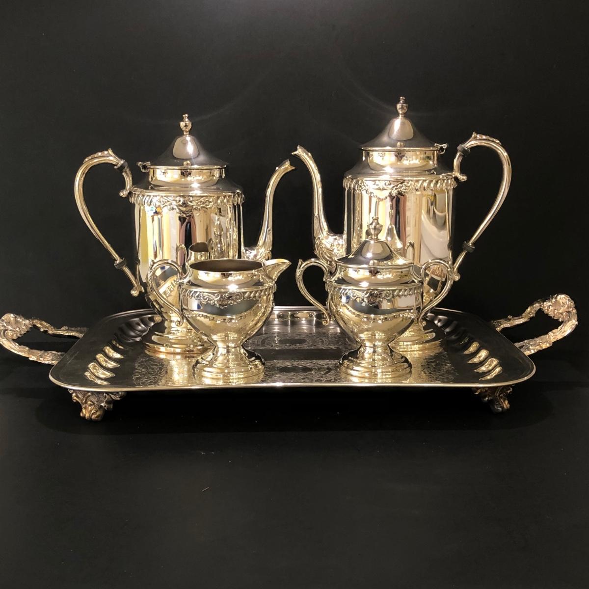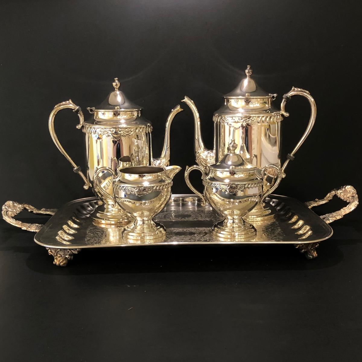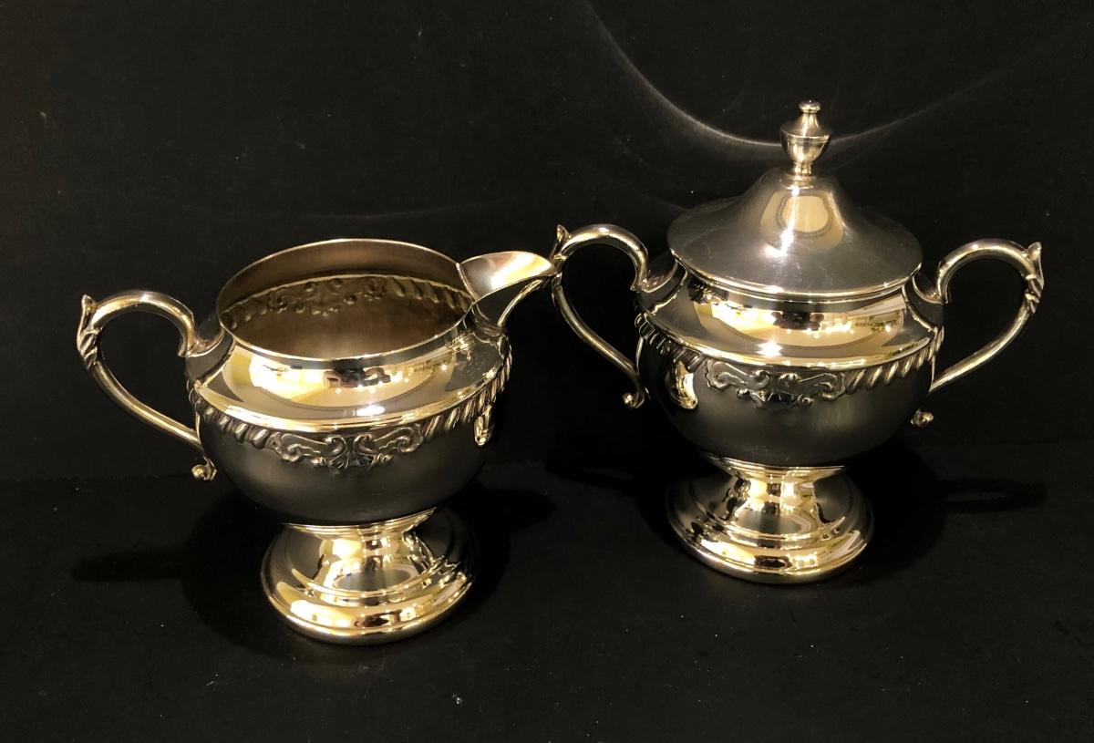 LOT 125K: Vintage Sheridan Silver on Copper Tea Set