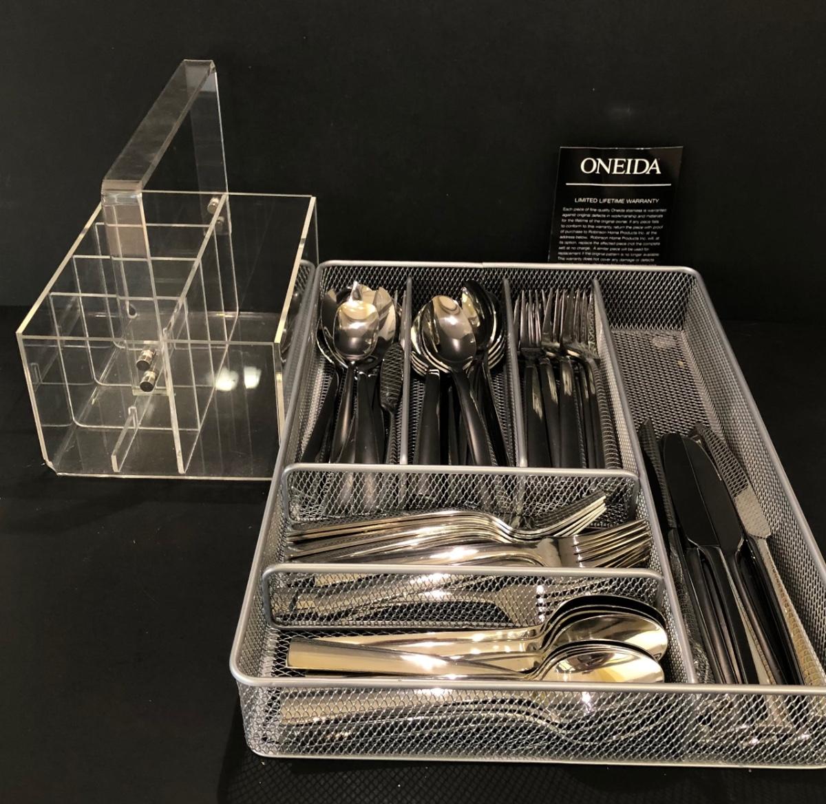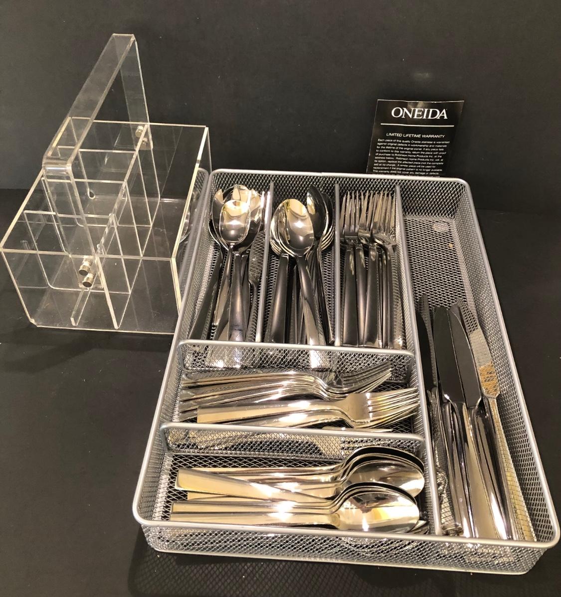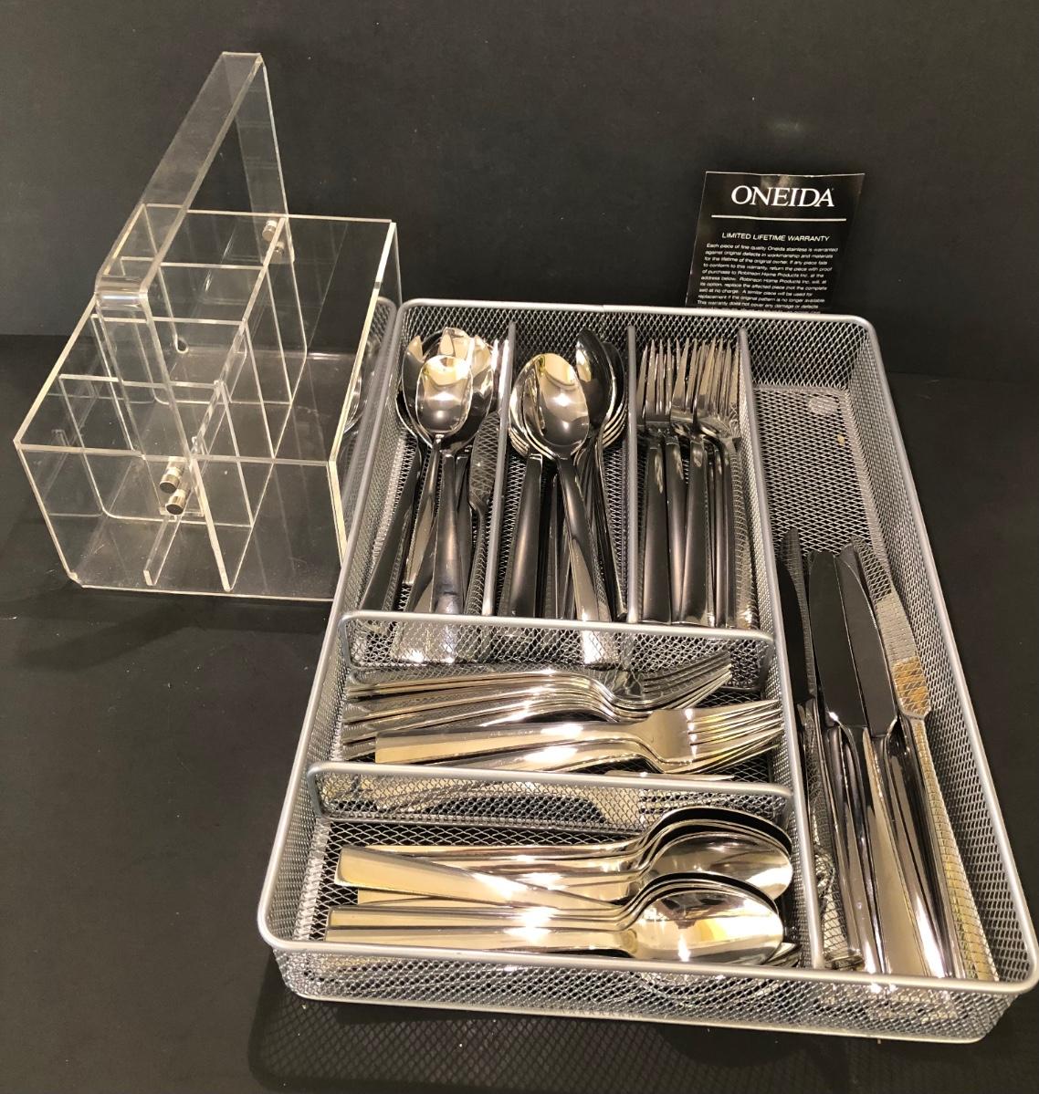 LOT 128K: Oneida Stainless Steel Flatware Set w/ Organizers