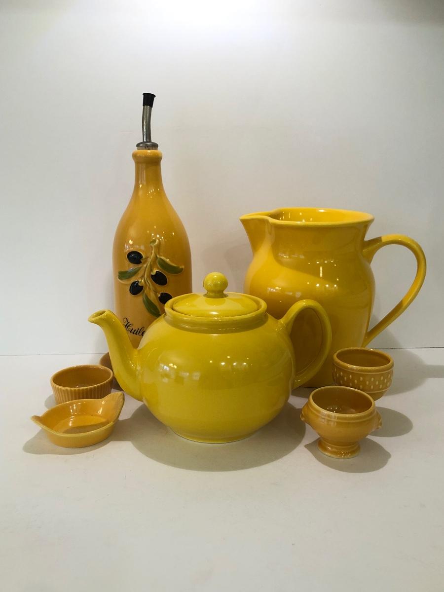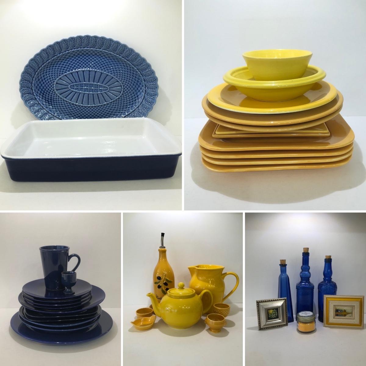 LOT 132K: Blue & Yellow Kitchen Dishes & Decor
