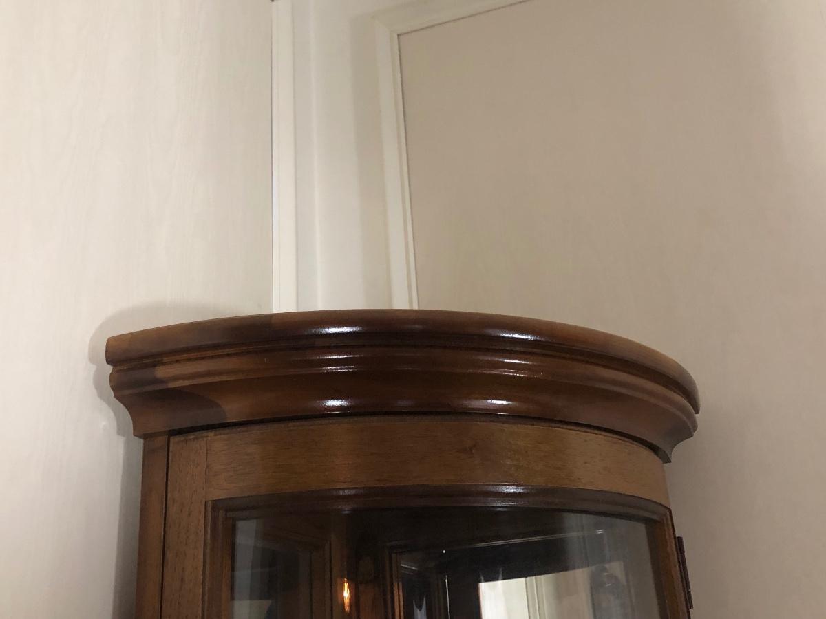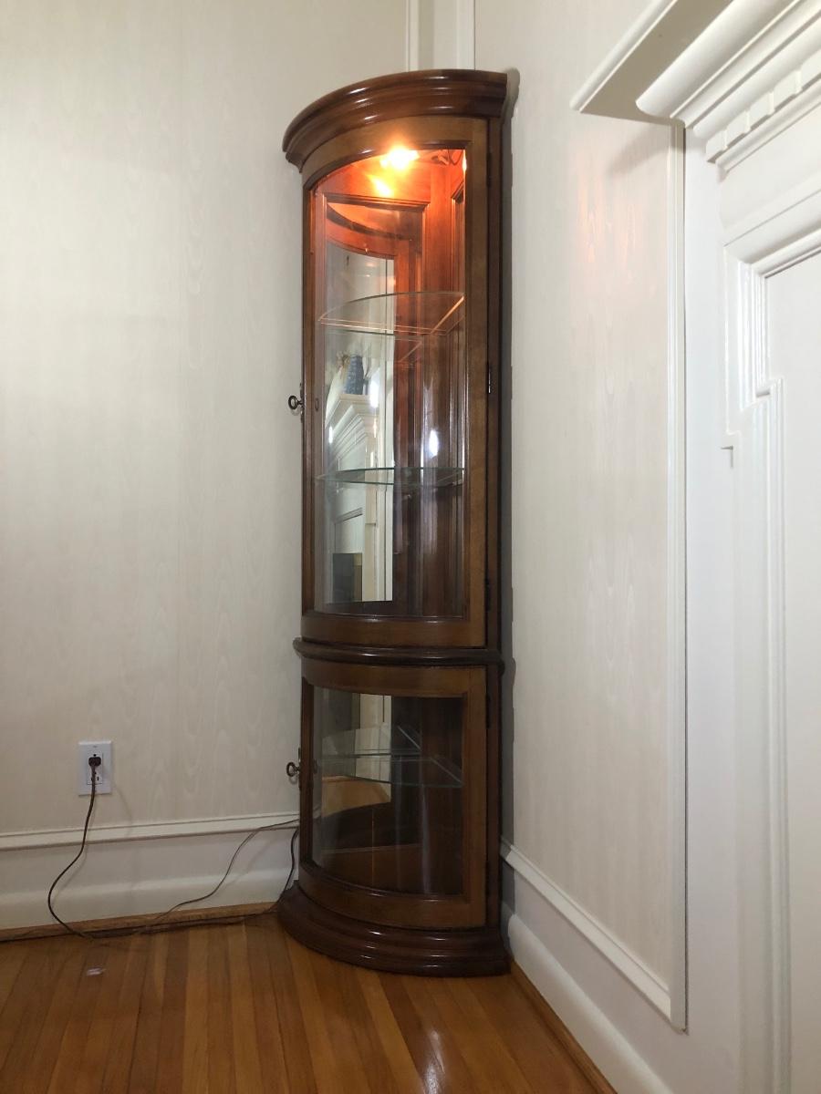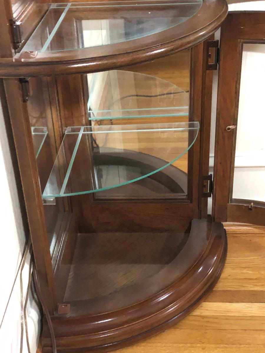 LOT 139L: Vintage Rounded Corner Curio Cabinet w/ Glass Shelves