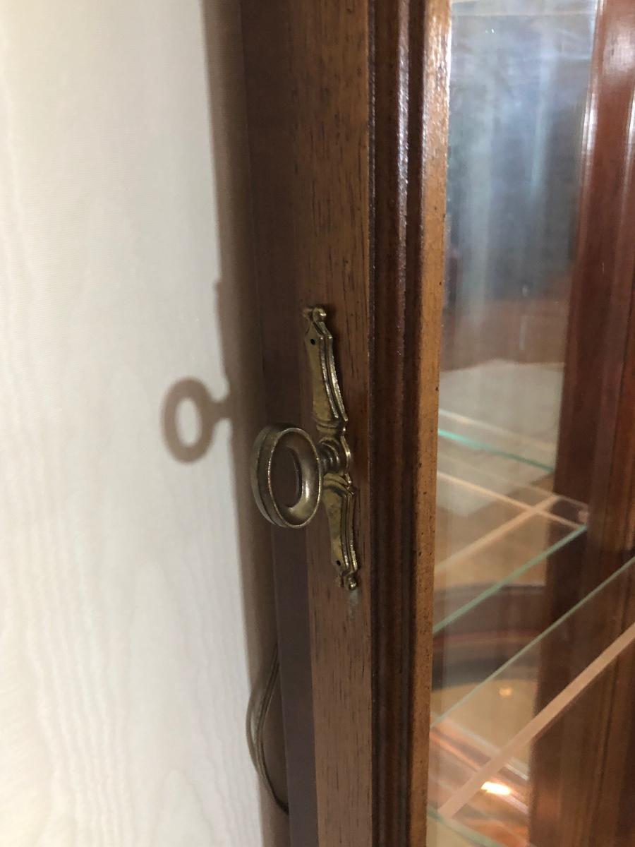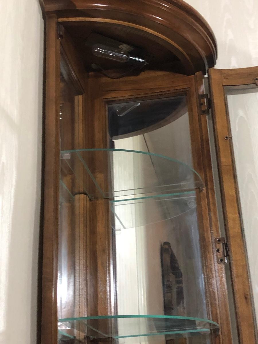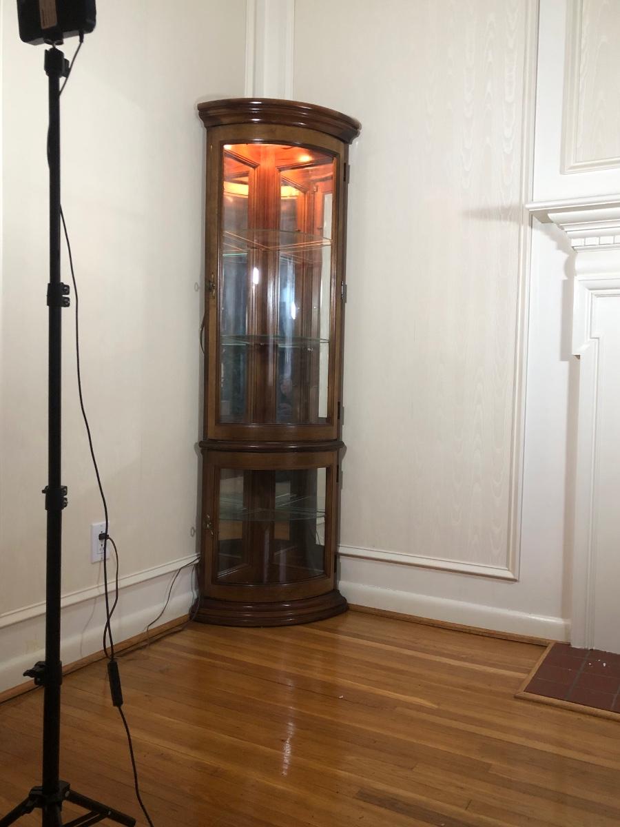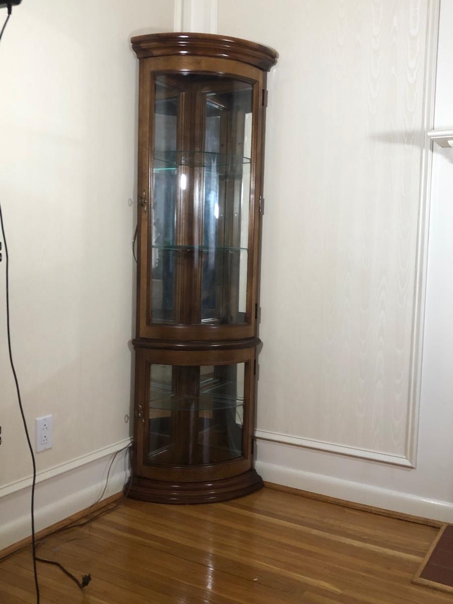 LOT 139L: Vintage Rounded Corner Curio Cabinet w/ Glass Shelves