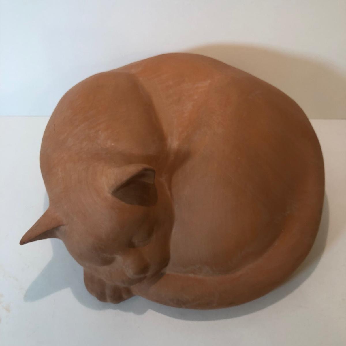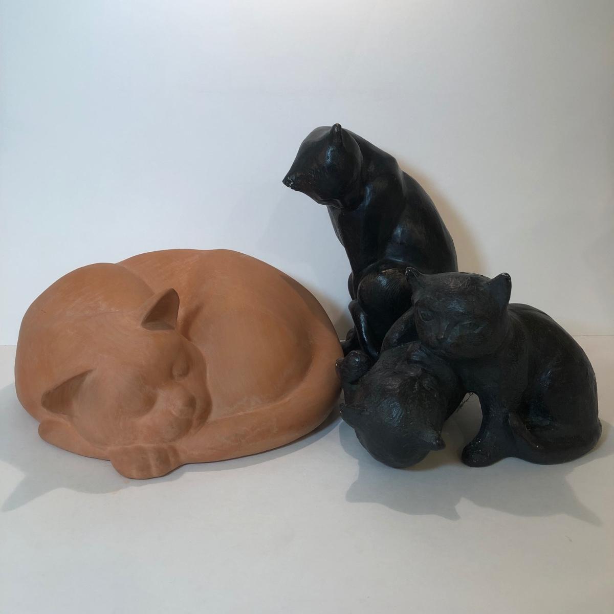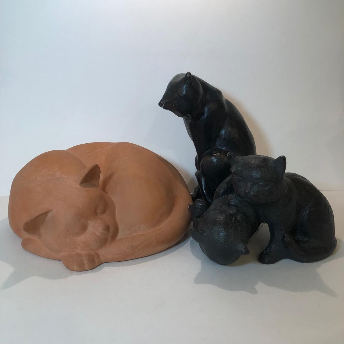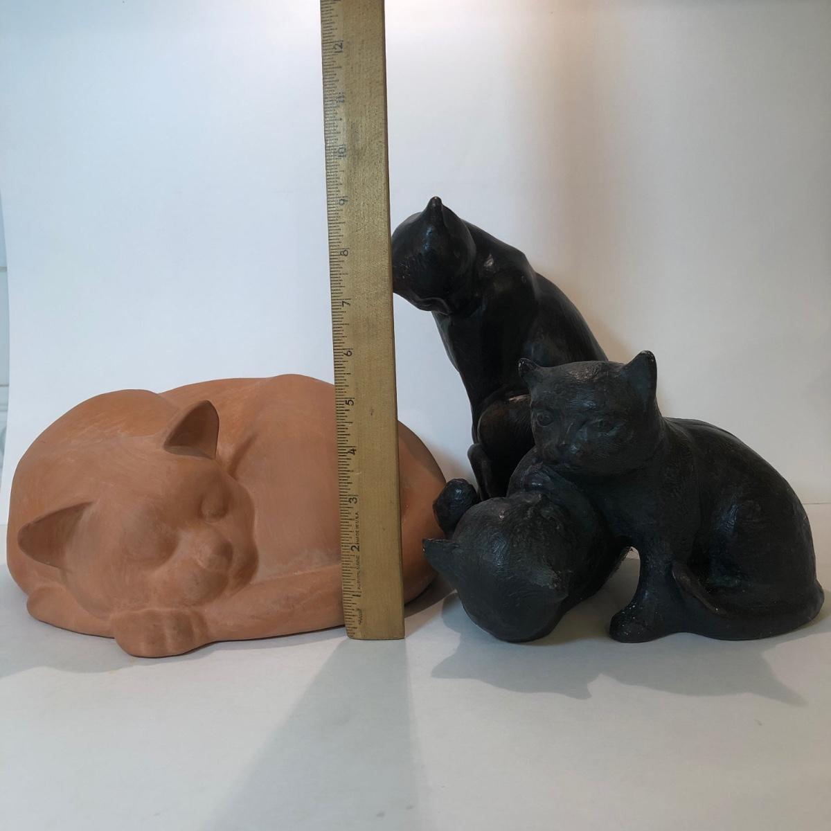 LOT 145L: Terra Cotta Cat w/ 1978 Austin Production Inc Cat Sculptures