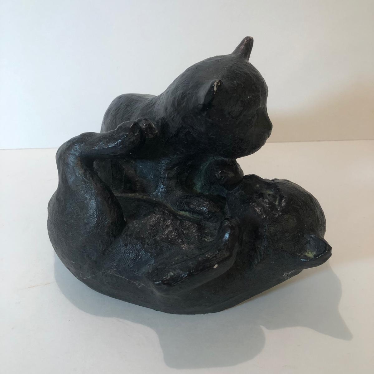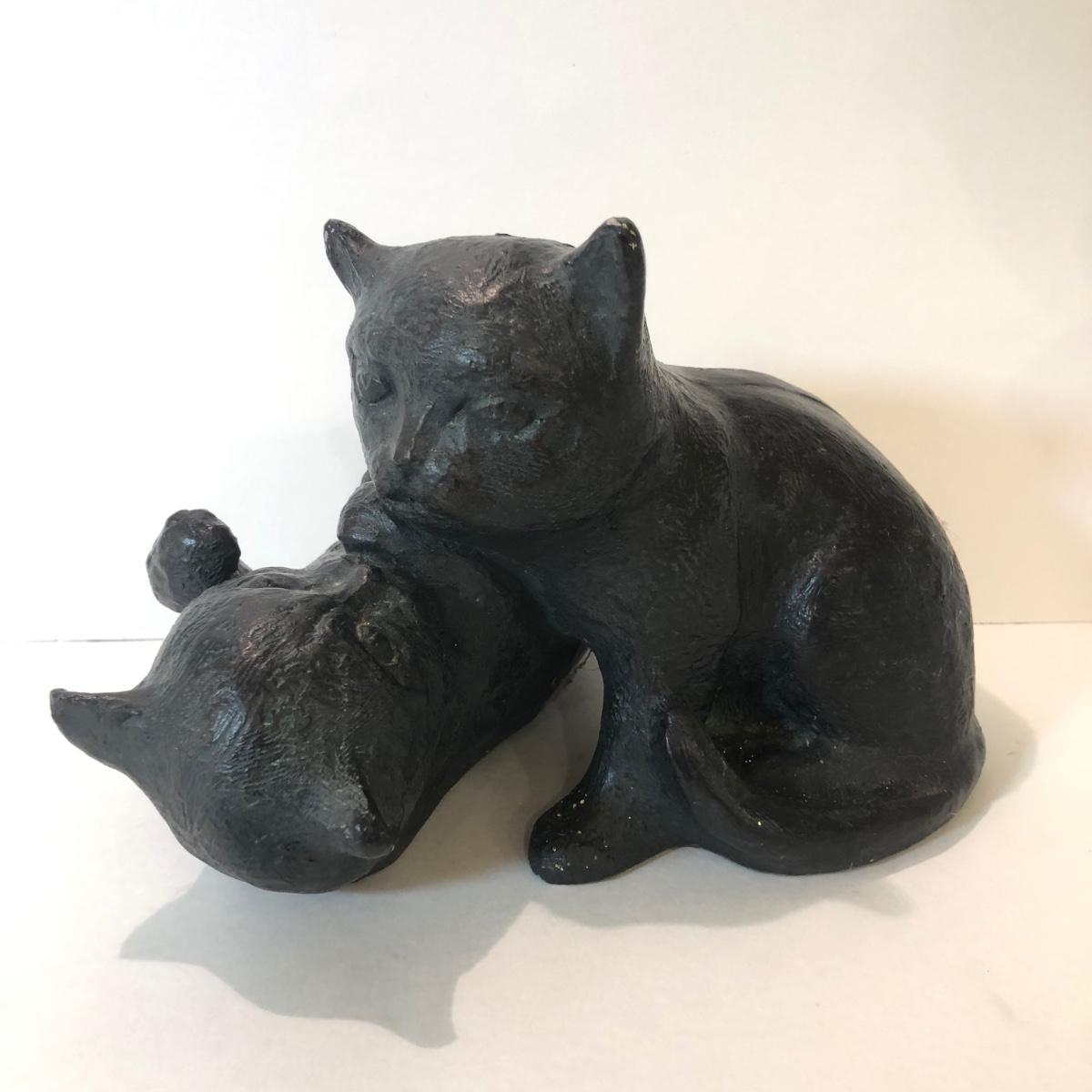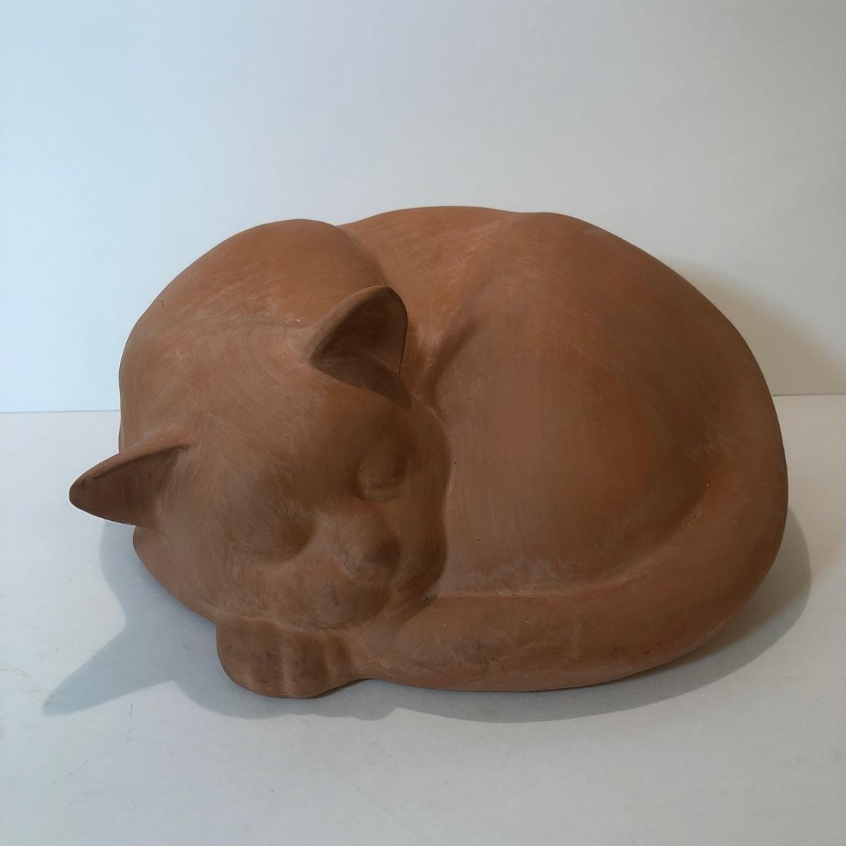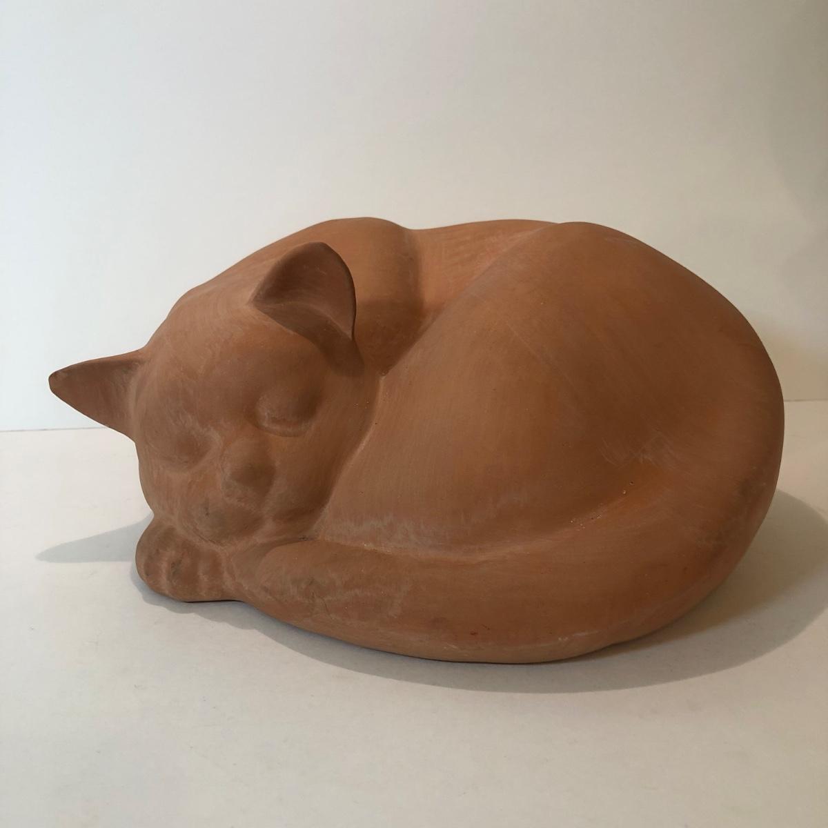 LOT 145L: Terra Cotta Cat w/ 1978 Austin Production Inc Cat Sculptures