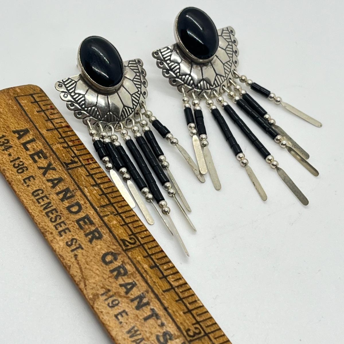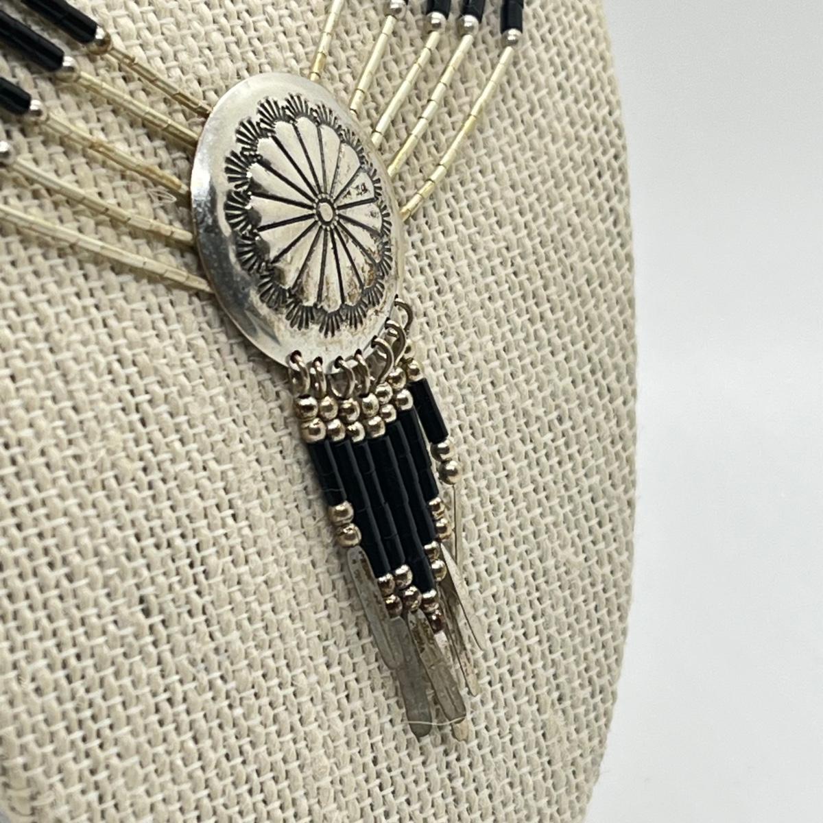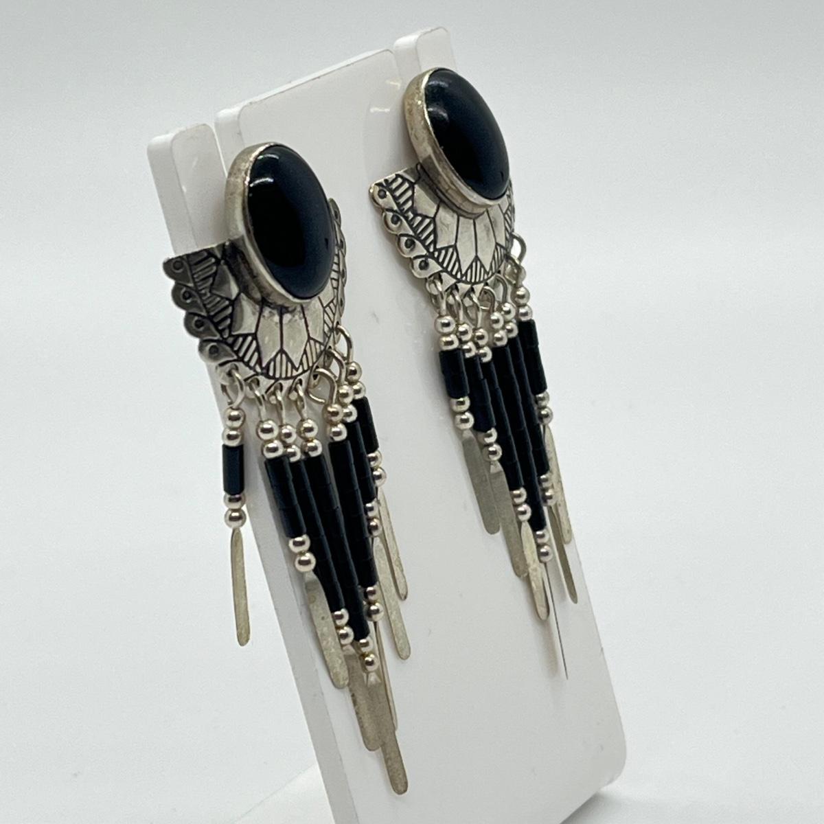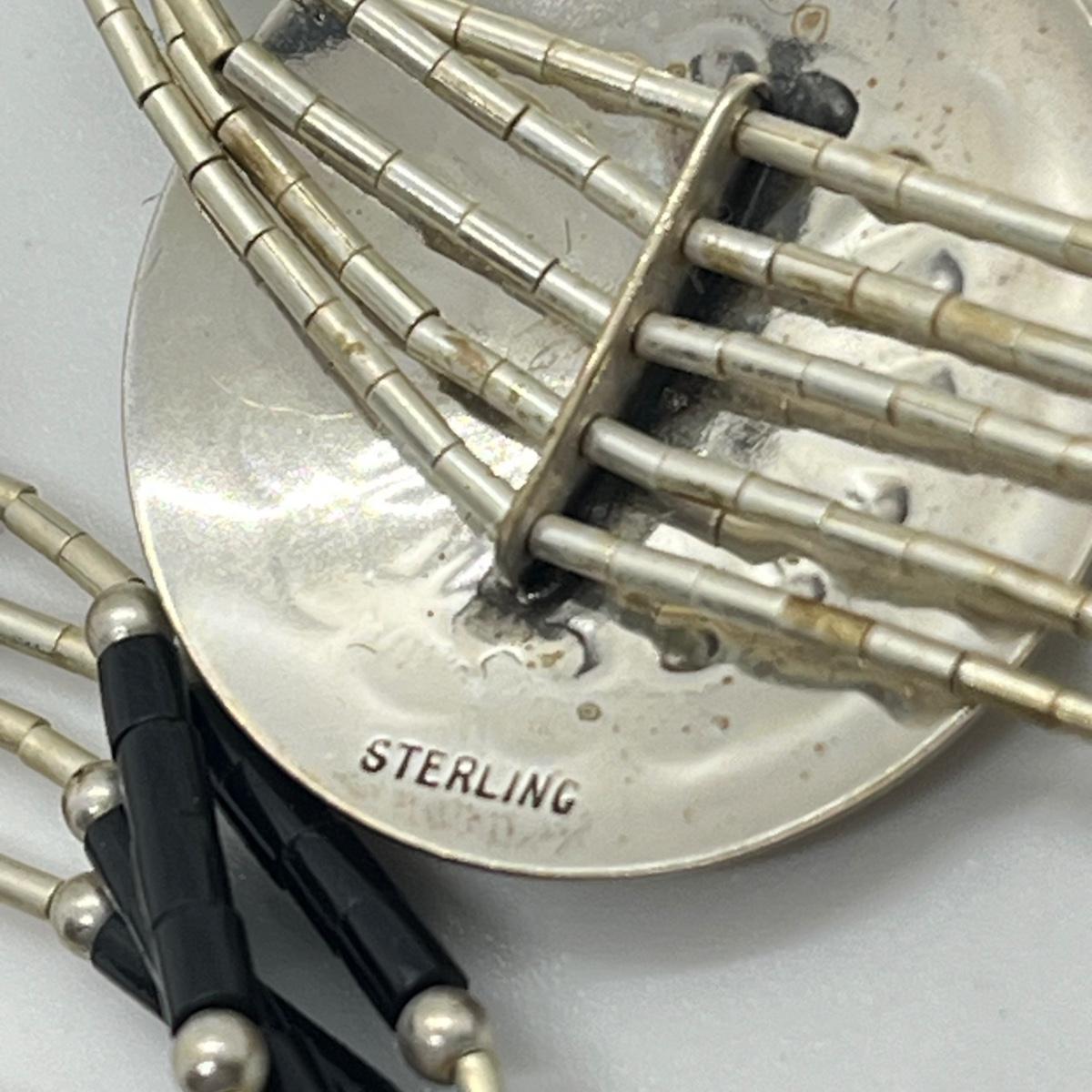 LOT 191J: Native American Sterling Silver and Onyx Jewelry Set - 23” Necklace and Matching Earrings