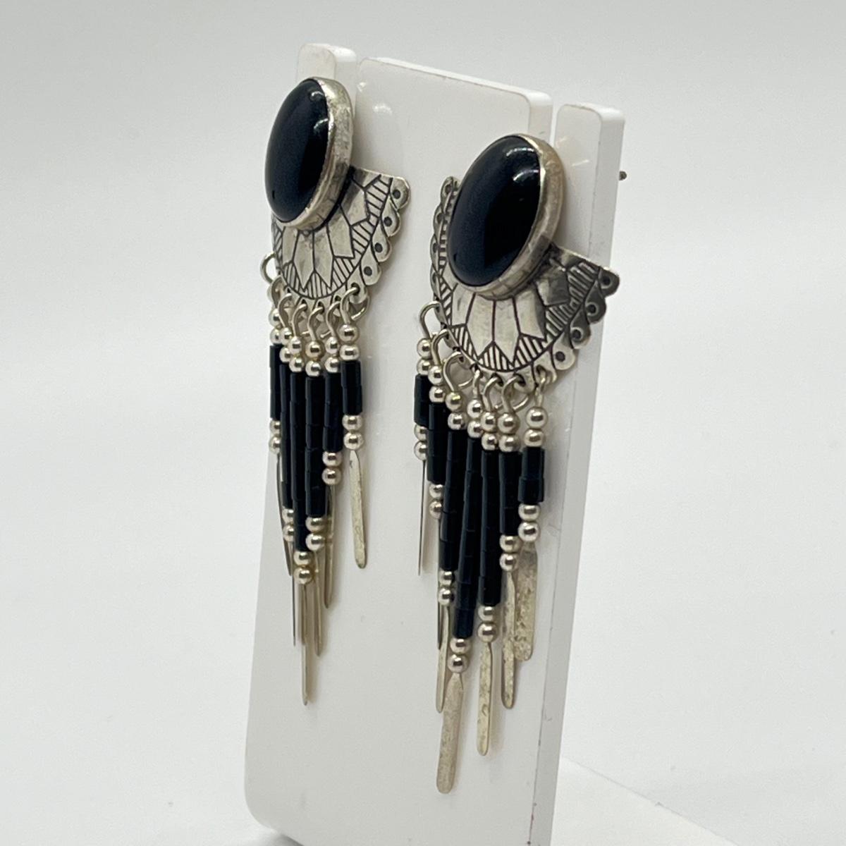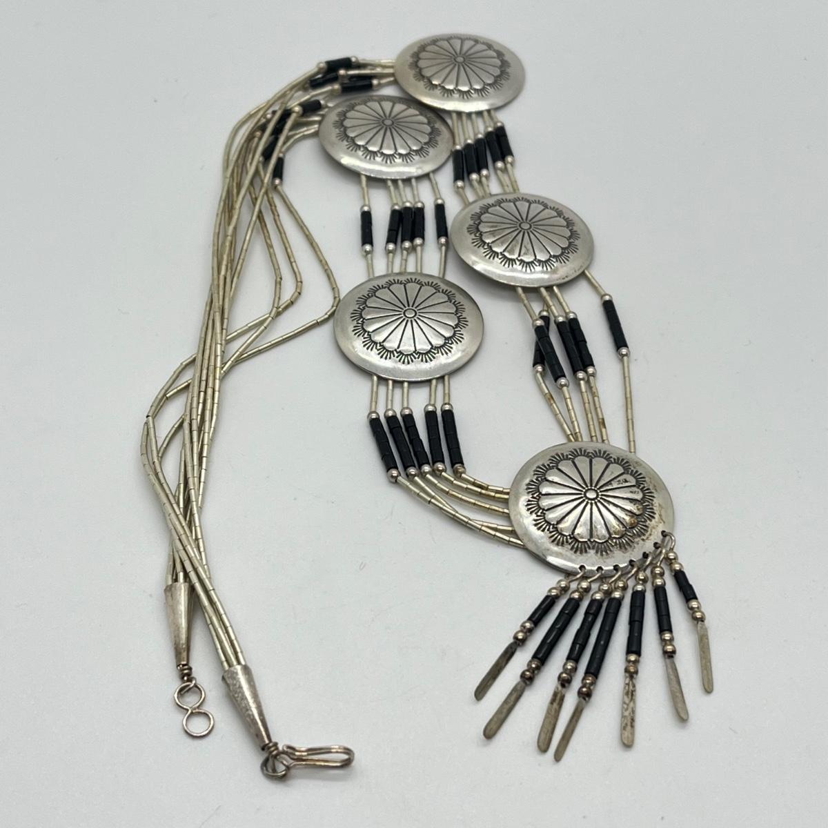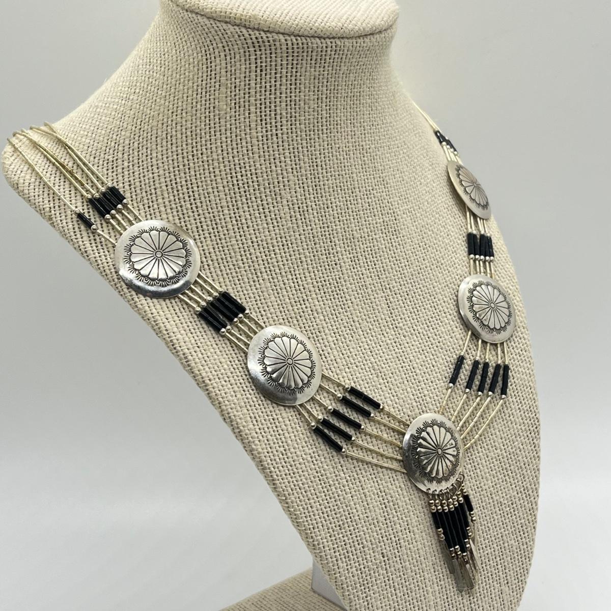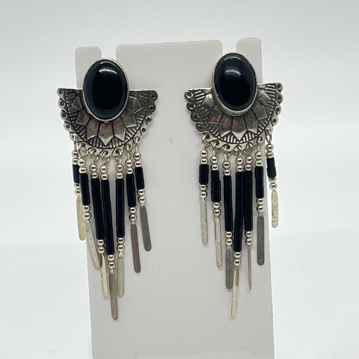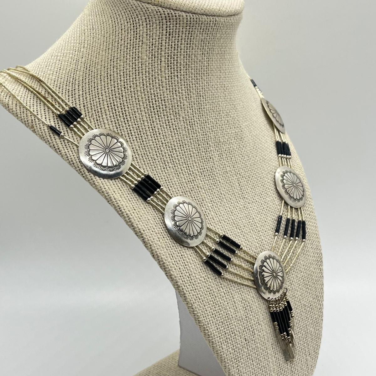 LOT 191J: Native American Sterling Silver and Onyx Jewelry Set - 23” Necklace and Matching Earrings