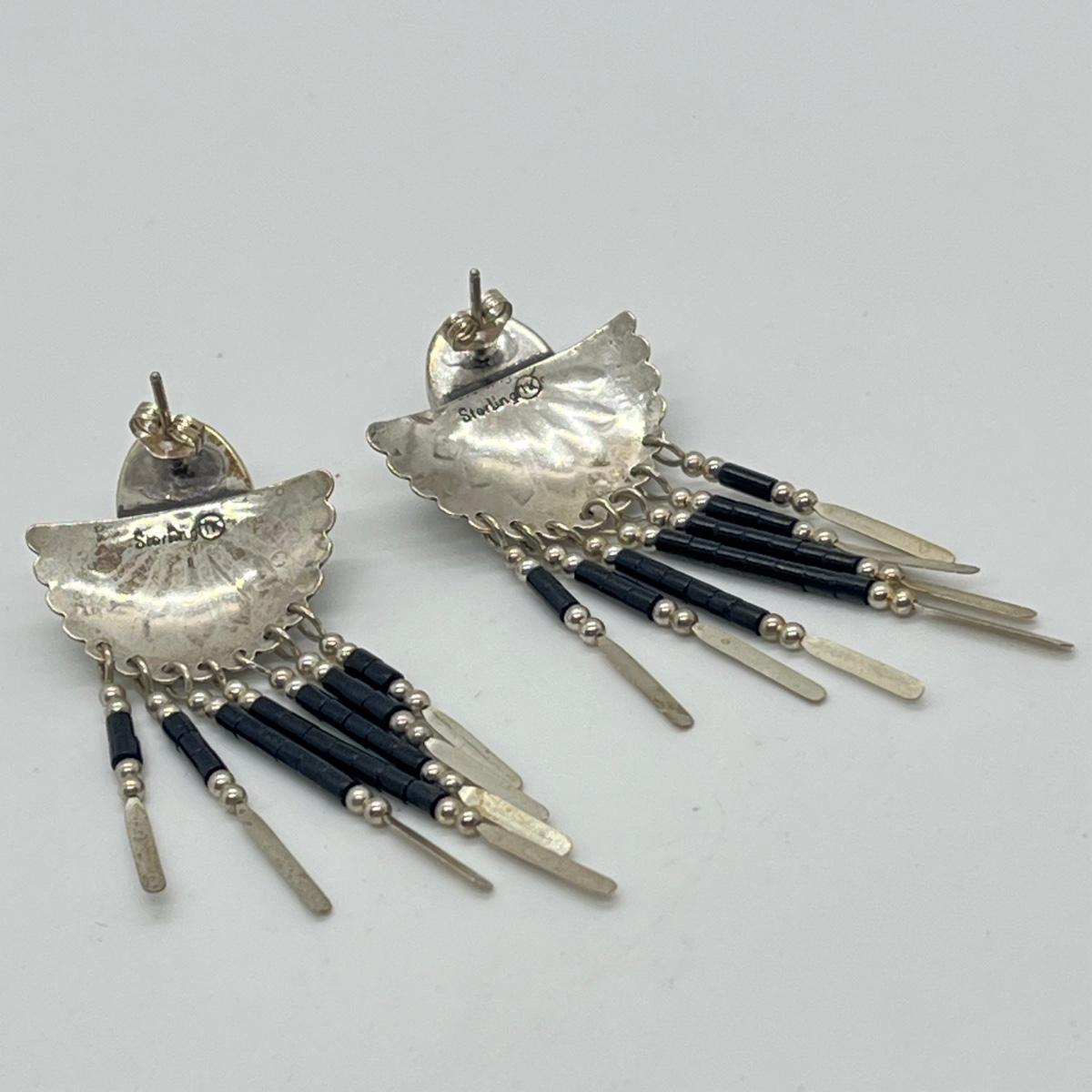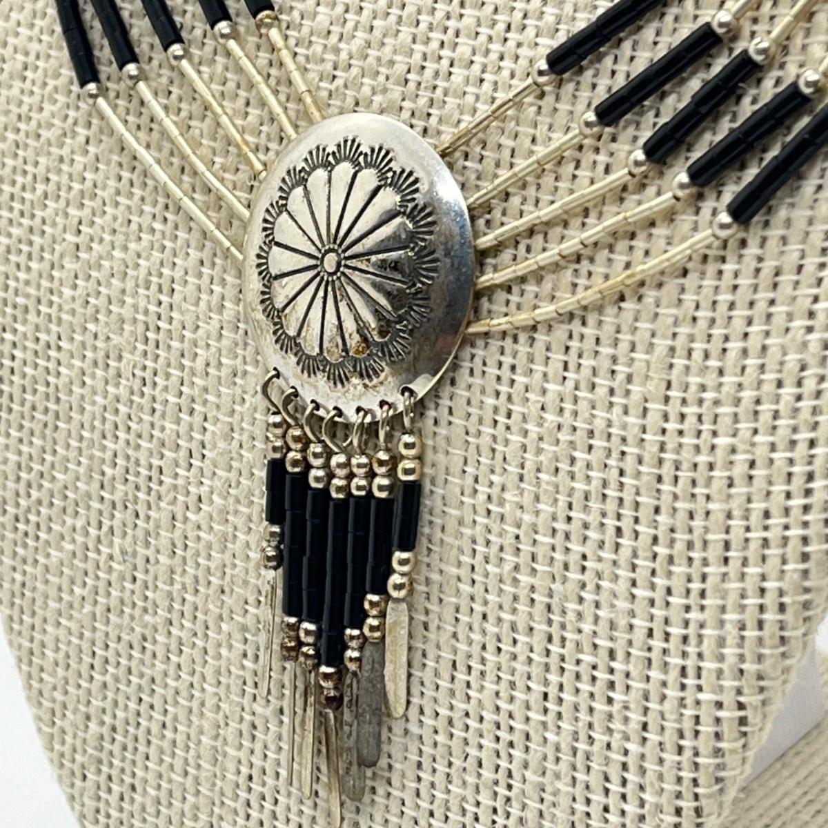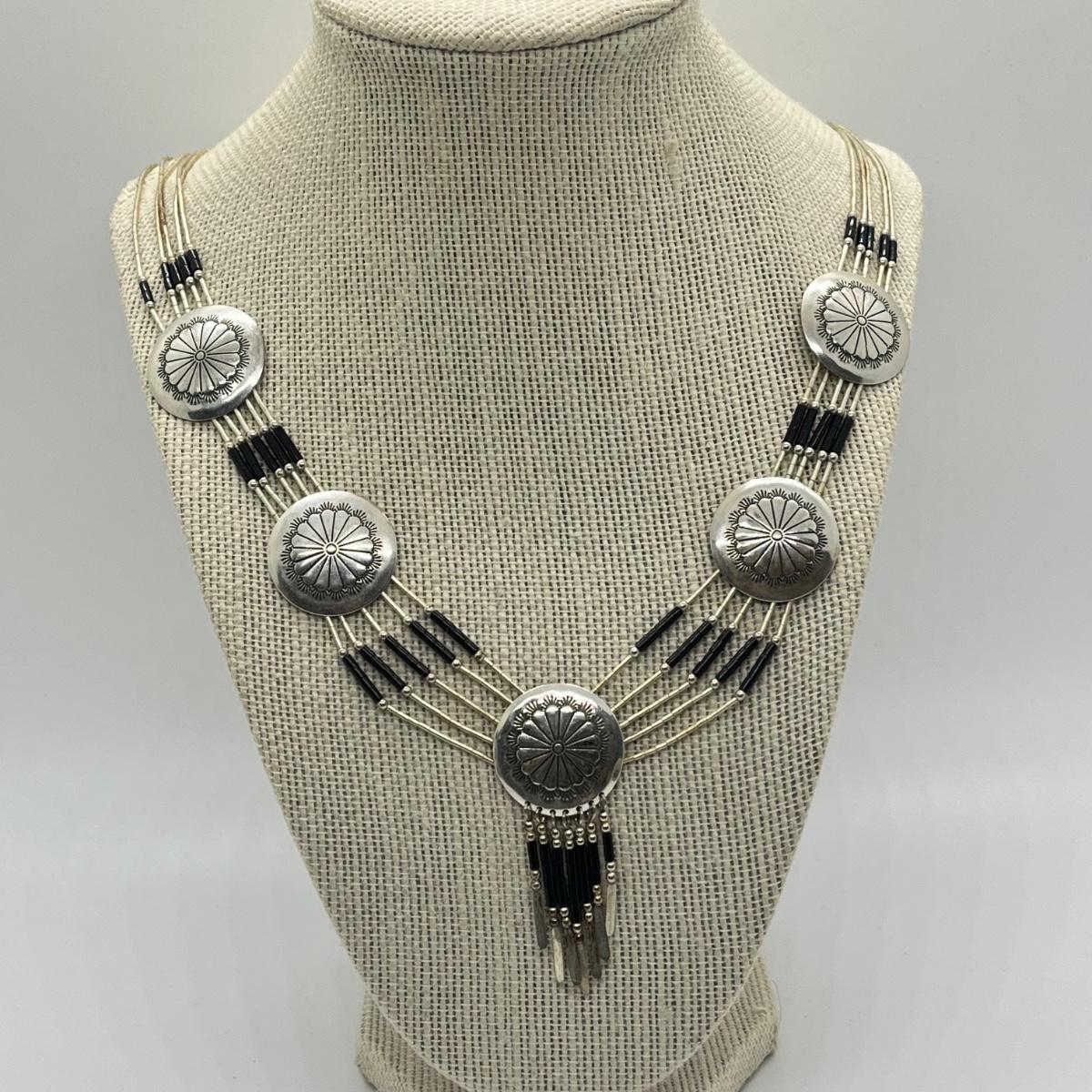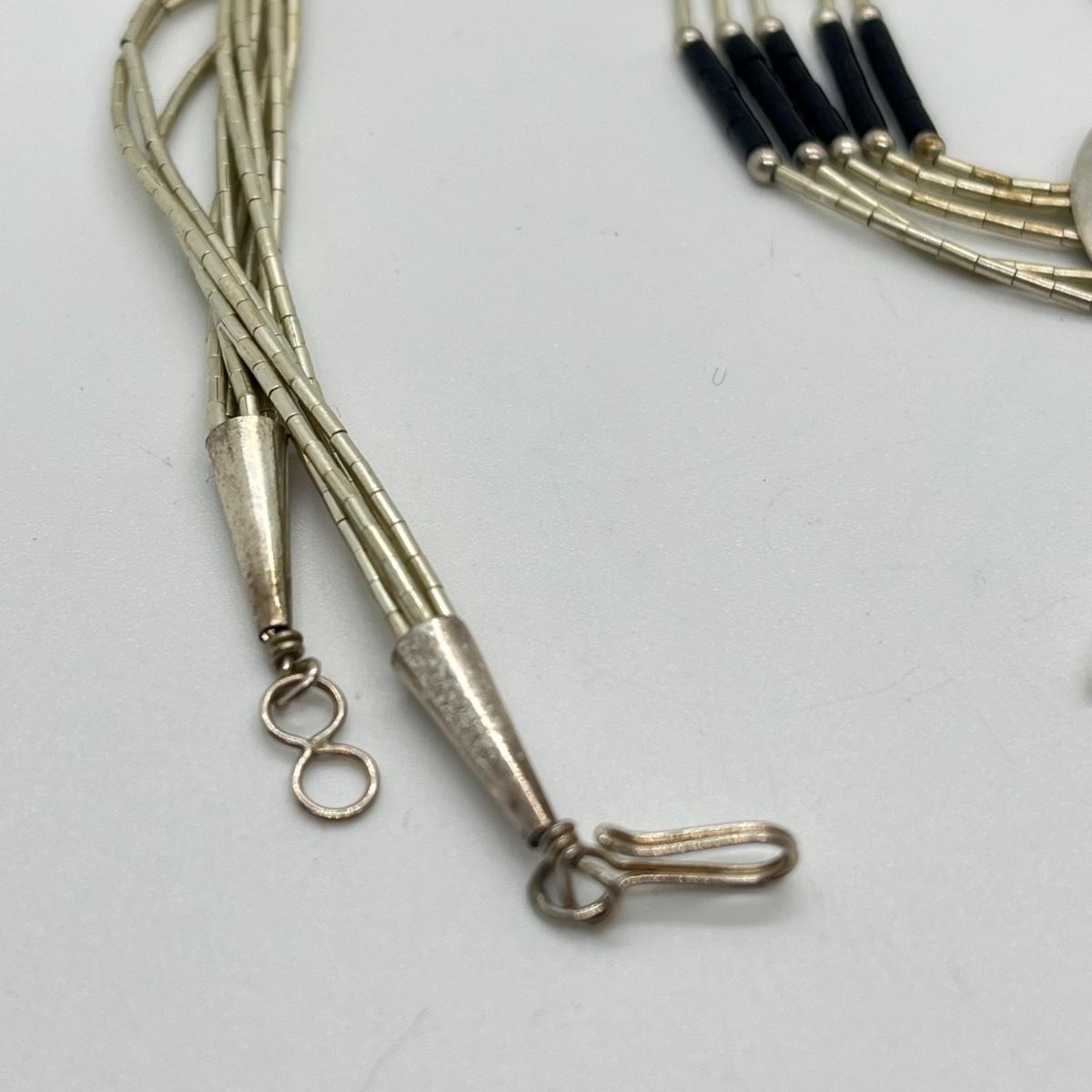 LOT 191J: Native American Sterling Silver and Onyx Jewelry Set - 23” Necklace and Matching Earrings