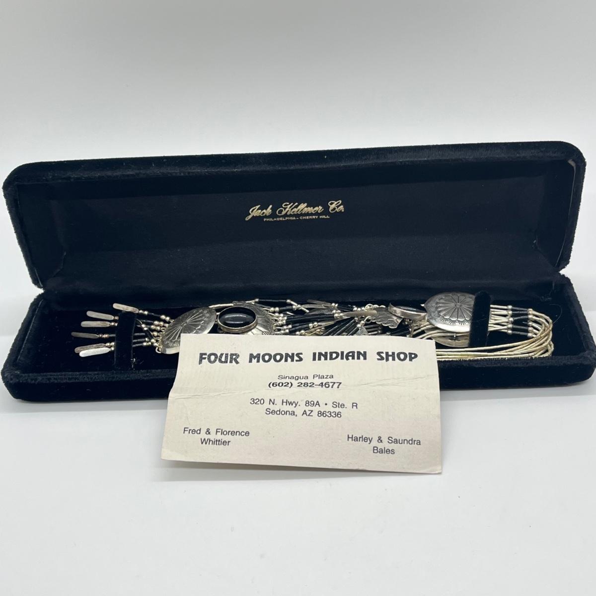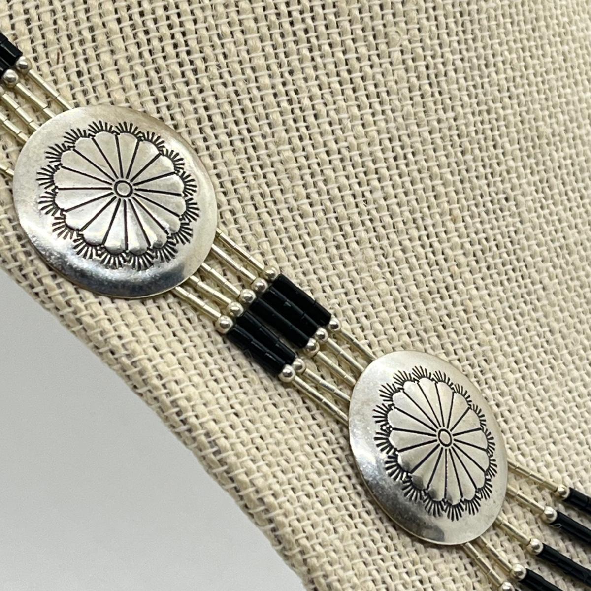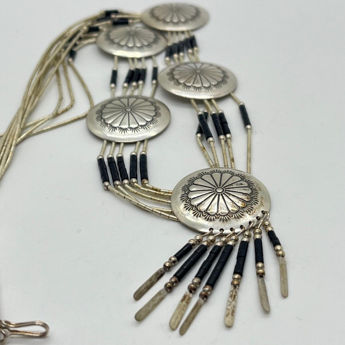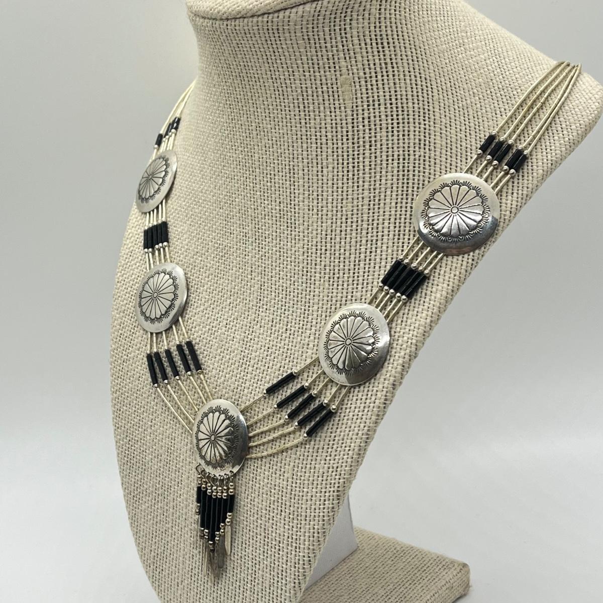LOT 191J: Native American Sterling Silver and Onyx Jewelry Set - 23” Necklace and Matching Earrings