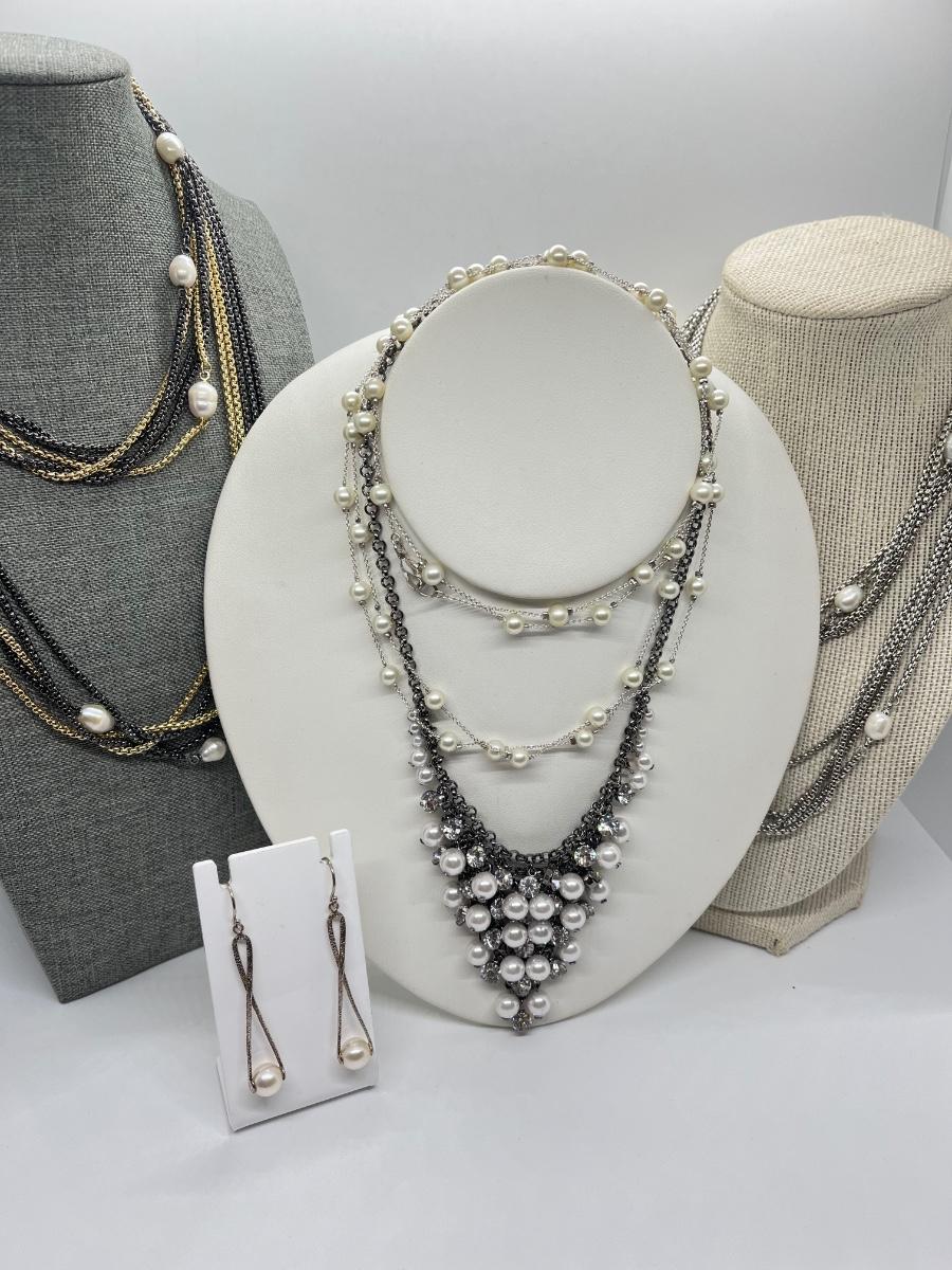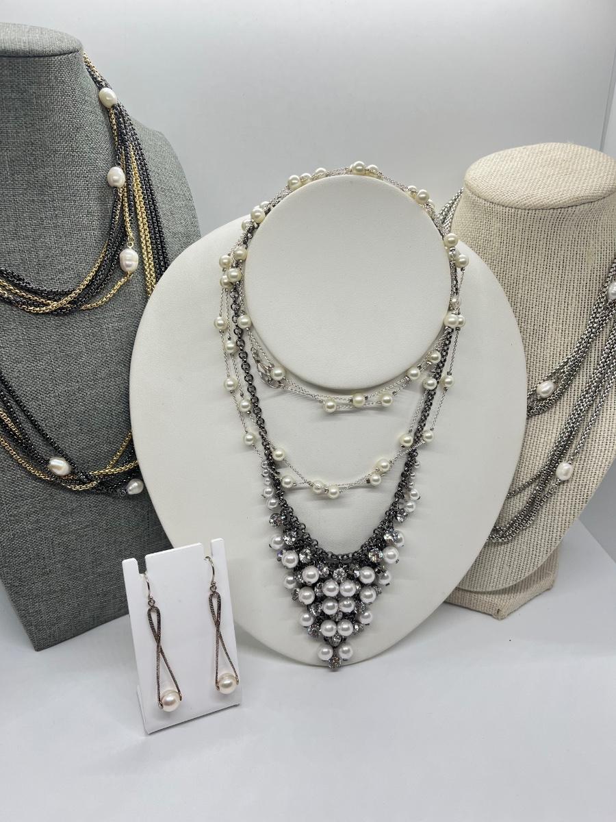 LOT 198J: Collection of Unique Layered Necklaces, Some With Matching Pierced Earrings