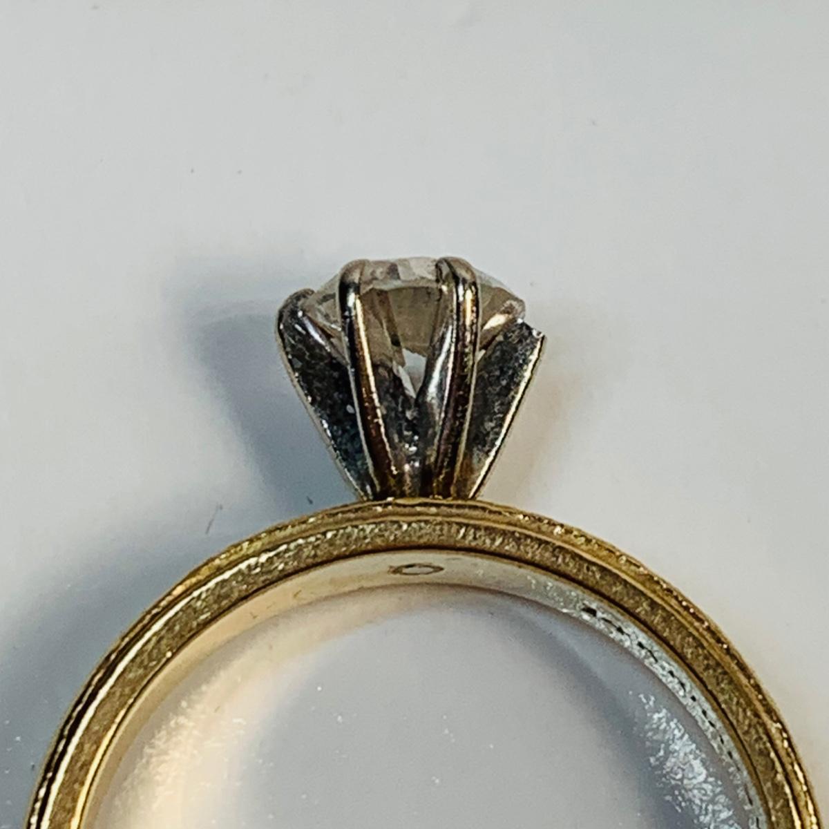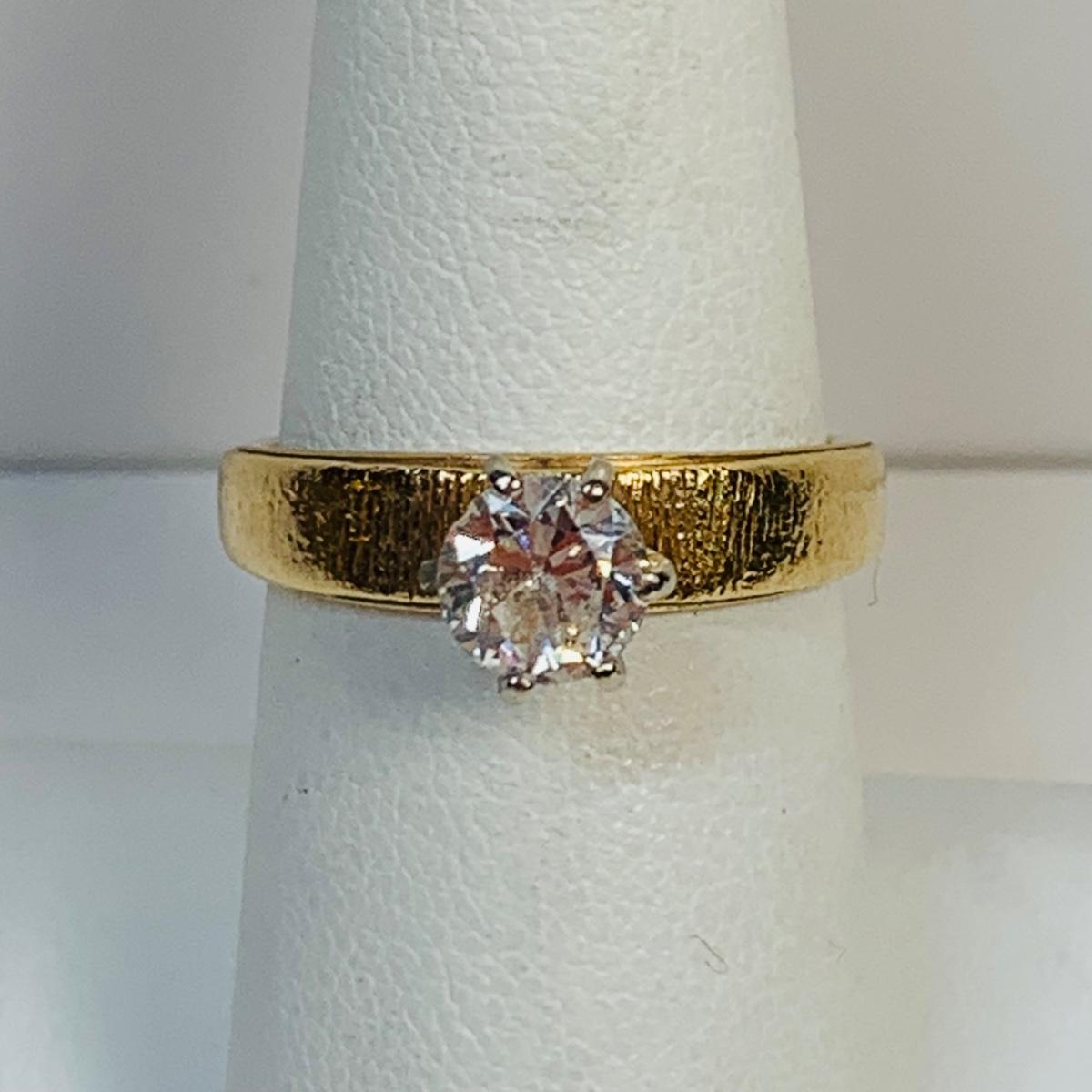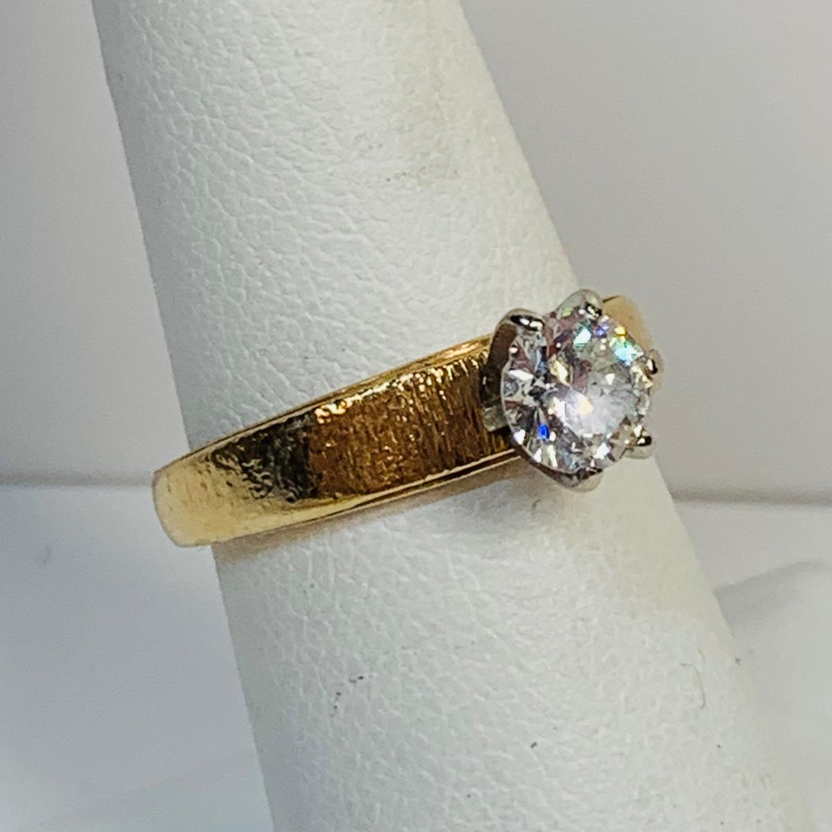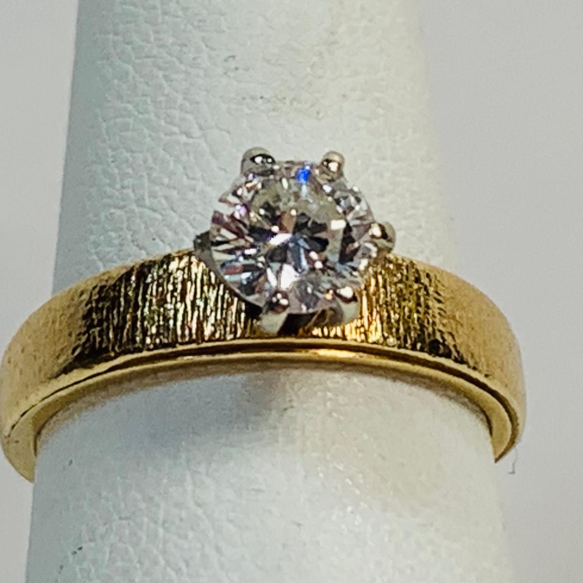 Sz. 7.5-4.3gtw Weighing in at just under one carat this is a beautiful brilliant cut white diamond, absolutely gorgeous! Please note when we photograph reflective jewelry there are often dark spots that are only reflections. Same goes for the diamonds. Please see all pictures as they are the best representation of the items. The pictures show condition, measurements if taken, and what is included in the lot. Due to the large amount that we photograph and the time frame, we are not always able to take measurements. All items unless noted, are pre-owned and have been used. If you purchased furniture, you must bring help. We do not allow one person to carry large furniture out on their own. Bring help, tools and a truck for the safety of our client’s homes, and your personal safety. Any damages that result to the property including walls, and floors due to moving of the furniture will be charged to the buyer. Company policy. Thank you.