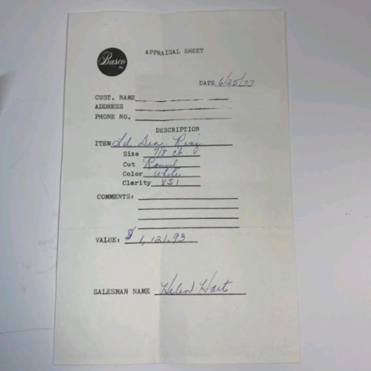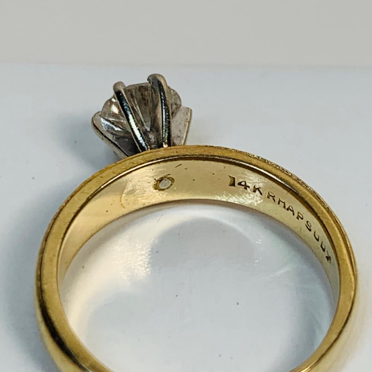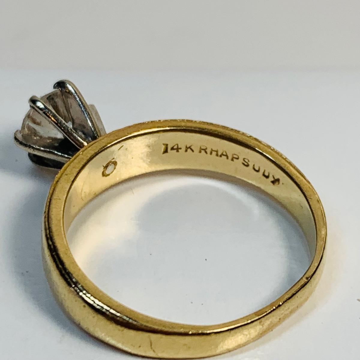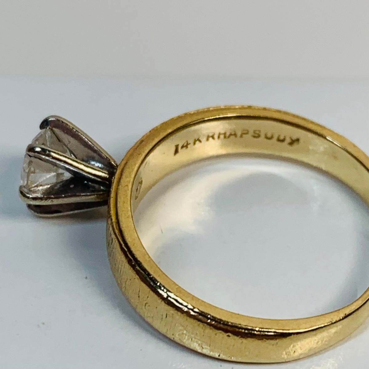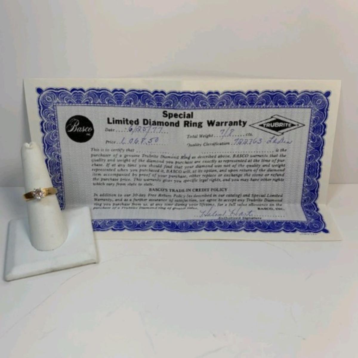 LOT 2: Vintage 14k yellow gold- 7/8 ct. Brilliant Cut Round DIAMOND Solitaire Engagement Ring Includes original appraisal and quarantee Ring marked "Rhapsody"