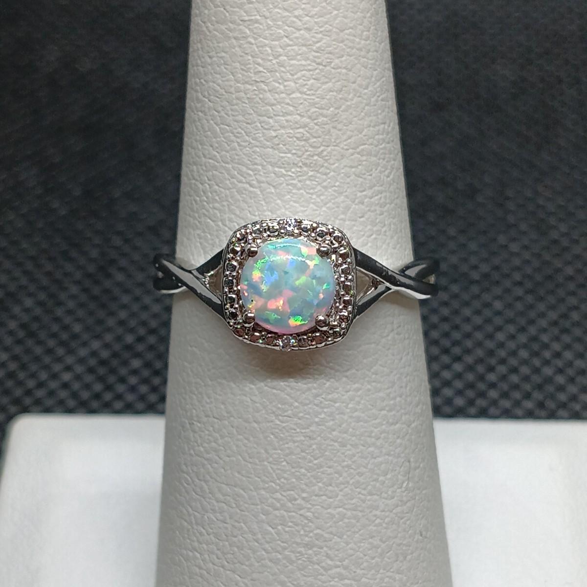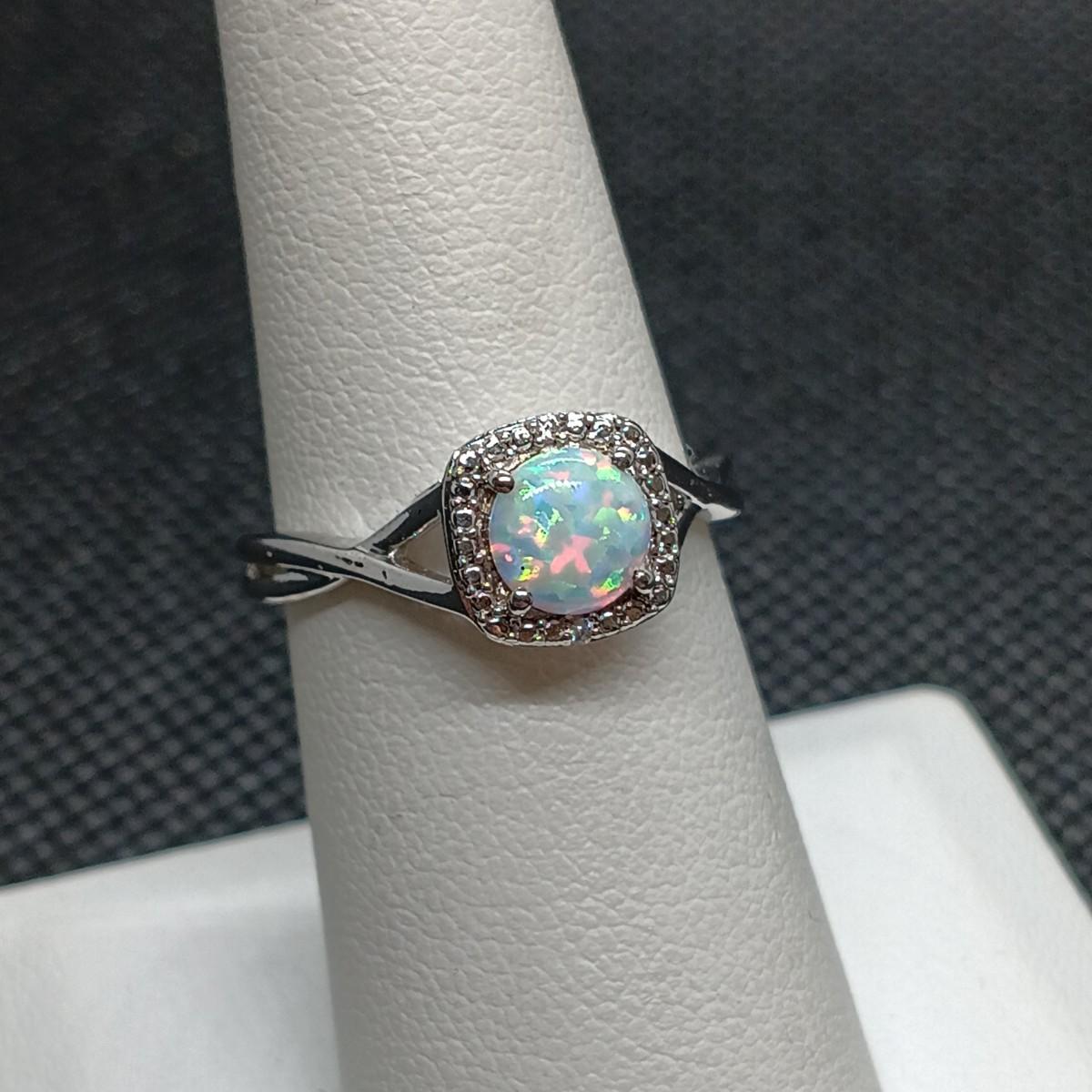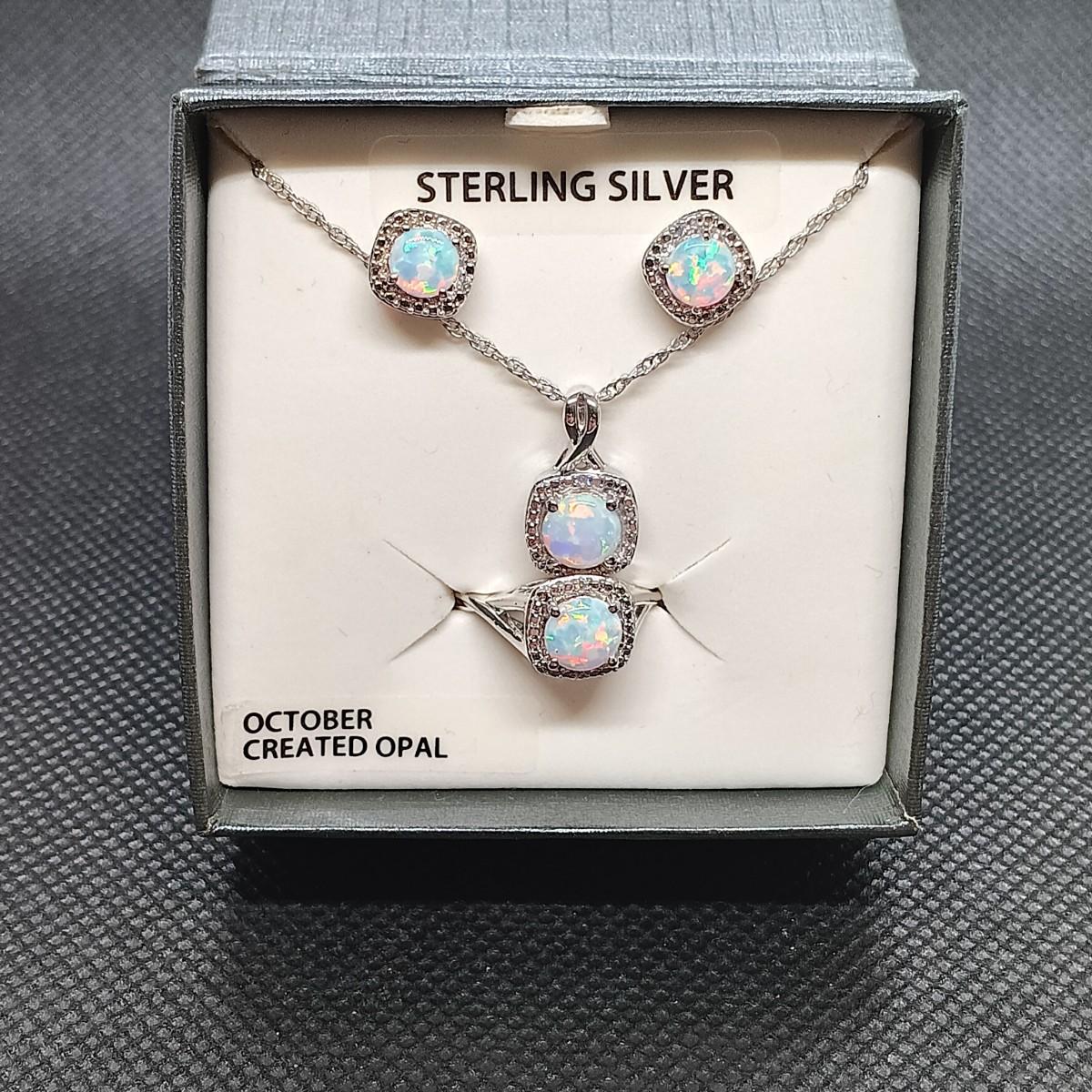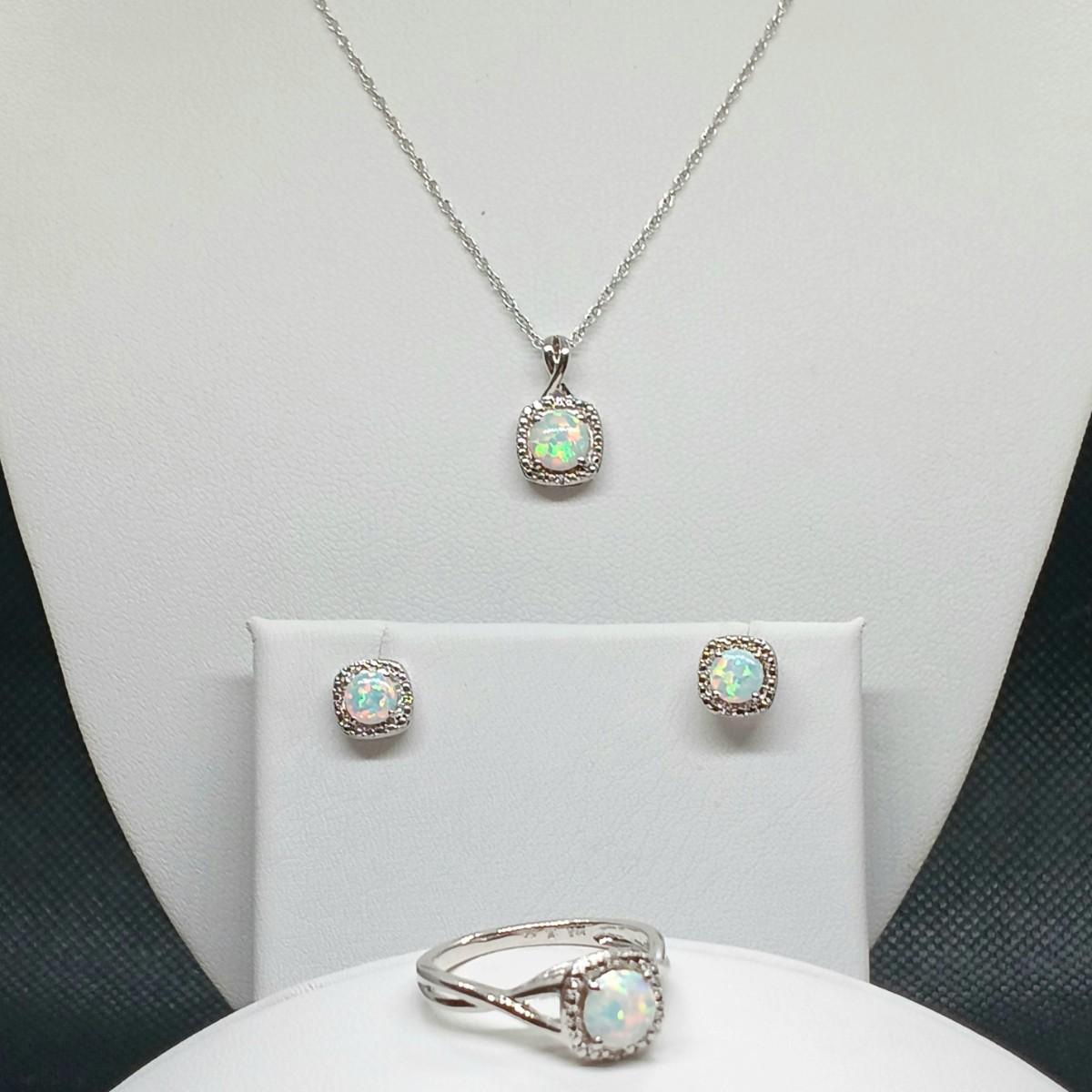 LOT 3: 925 Sterling Silver Lab Created Opal Jewelry Set Sz 7 Ring