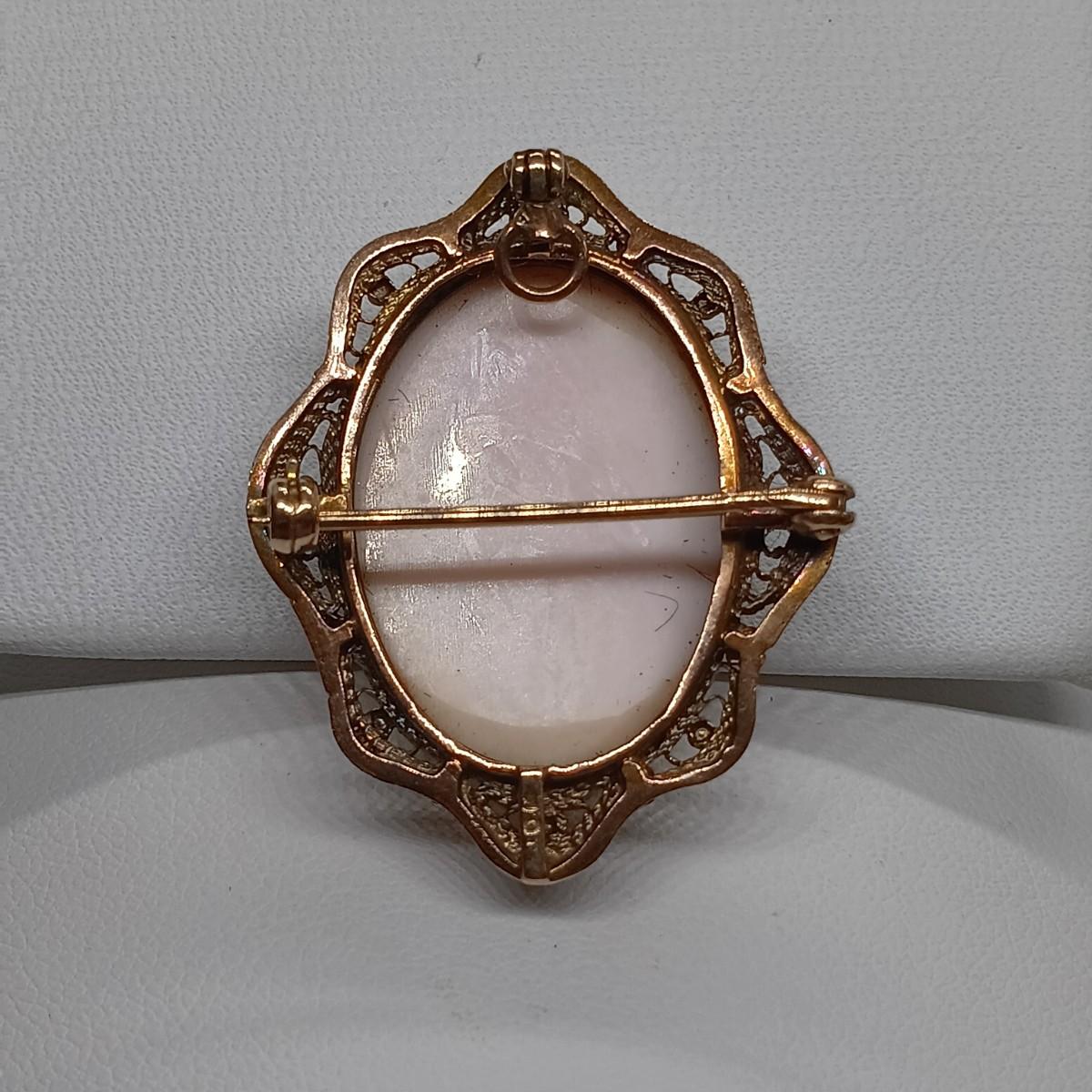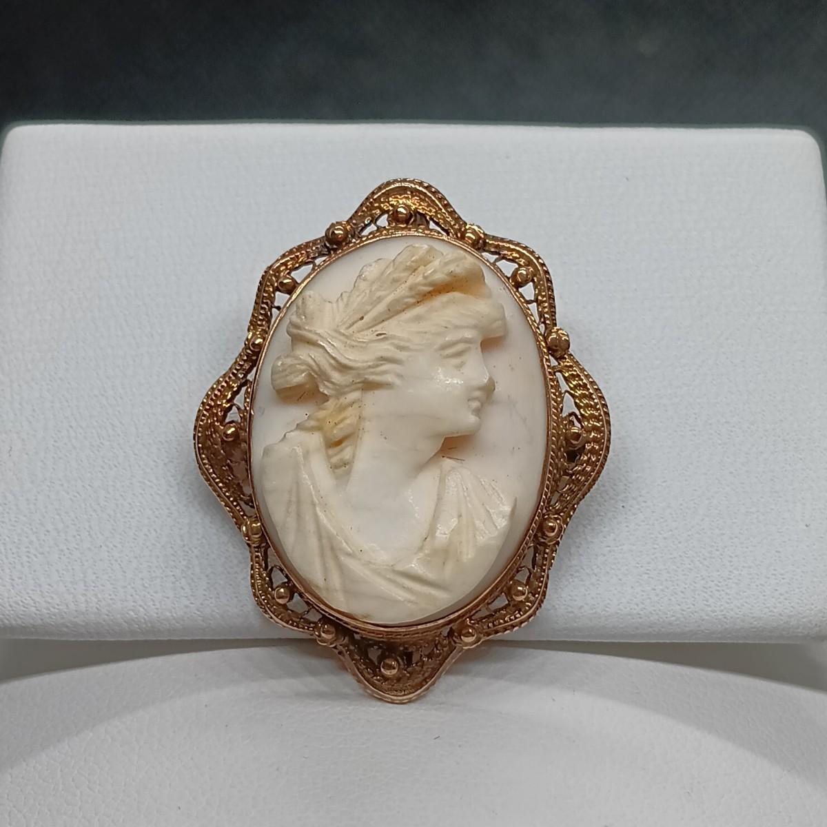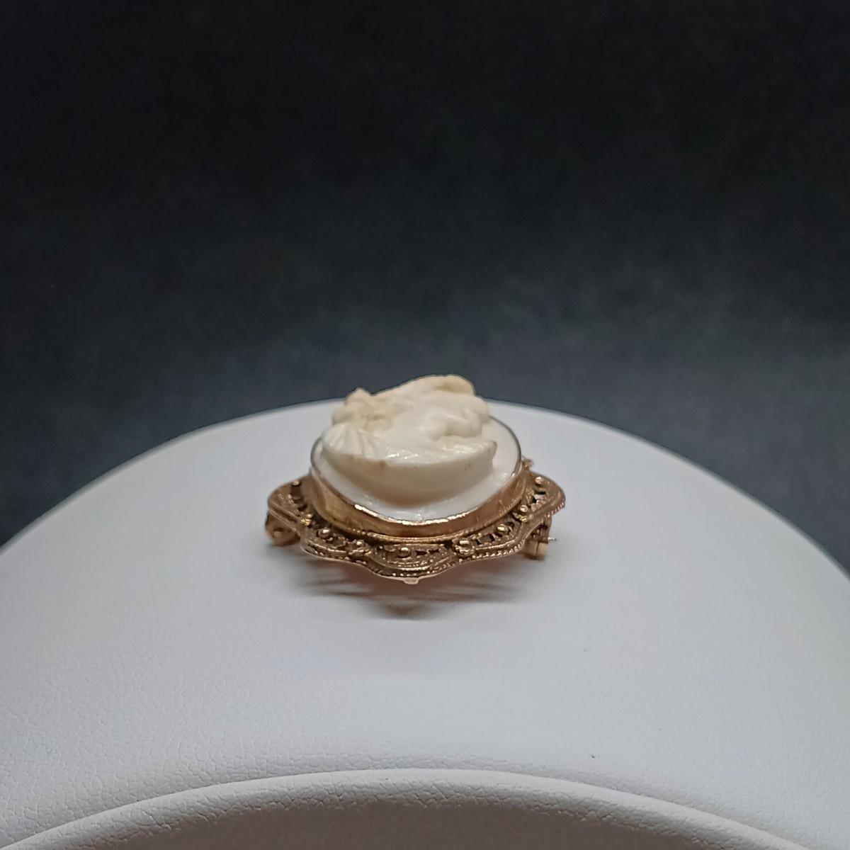 LOT 5: Vintage 10K Cameo Brooch / Pendant - High Relief Carved Conch Shell