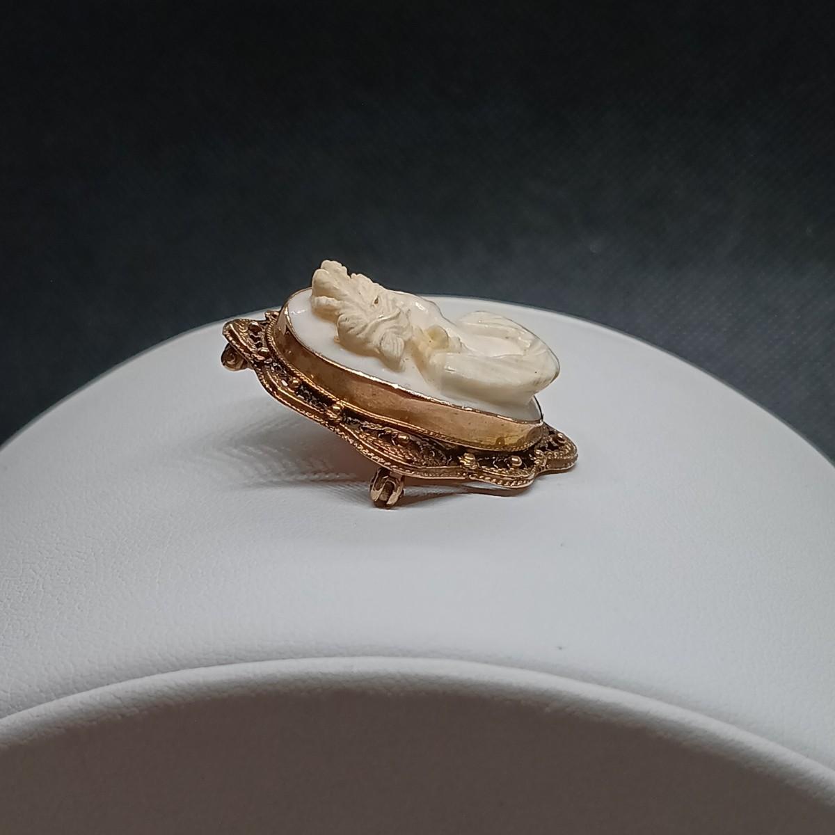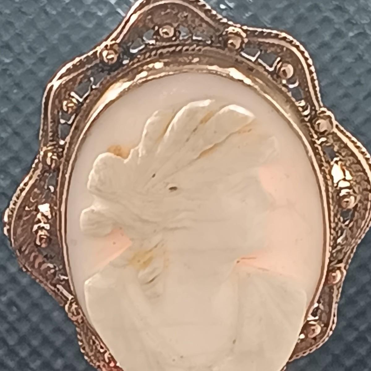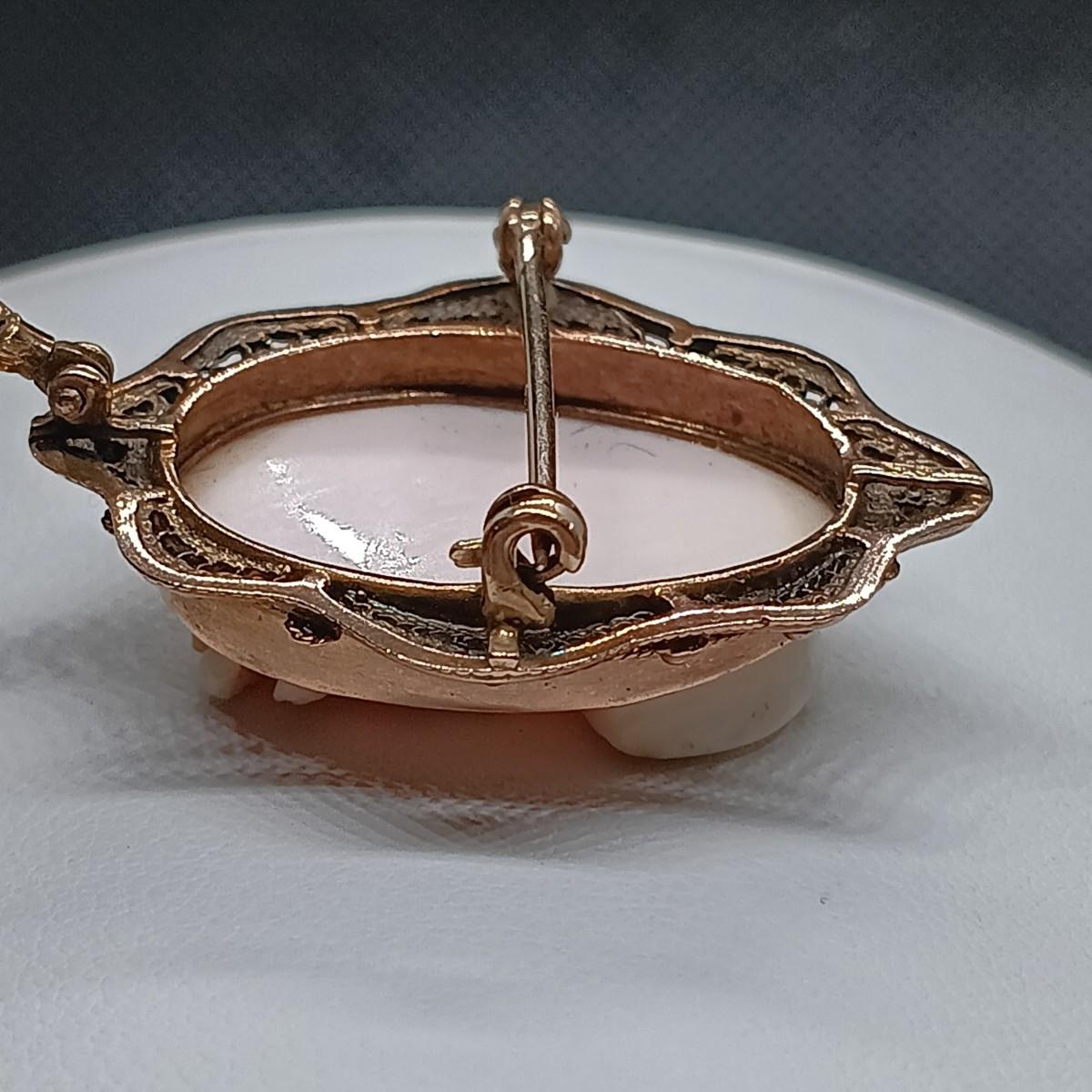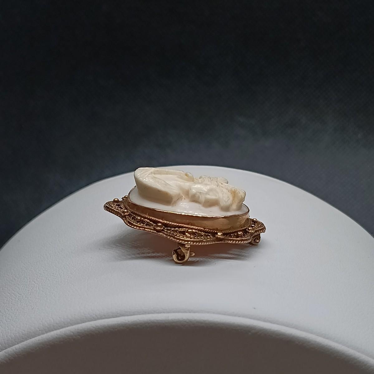 LOT 5: Vintage 10K Cameo Brooch / Pendant - High Relief Carved Conch Shell