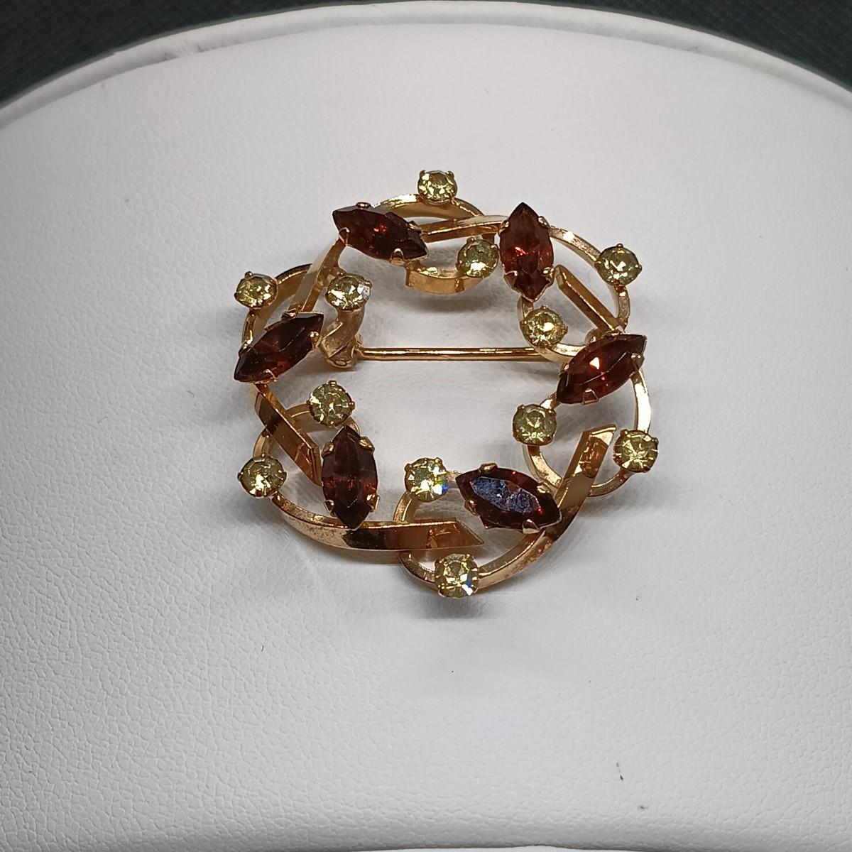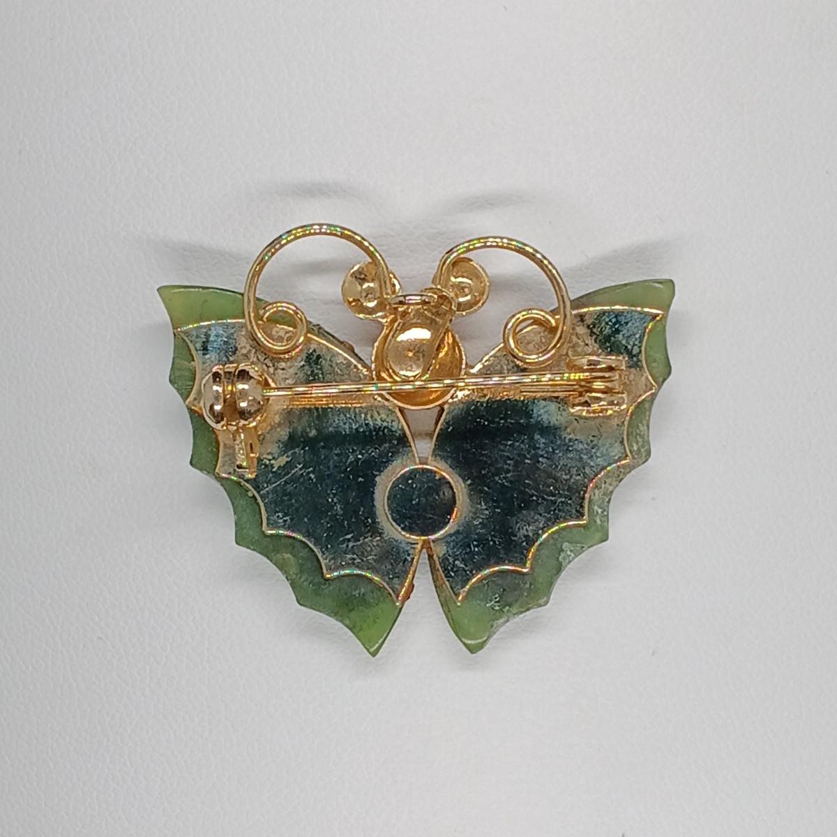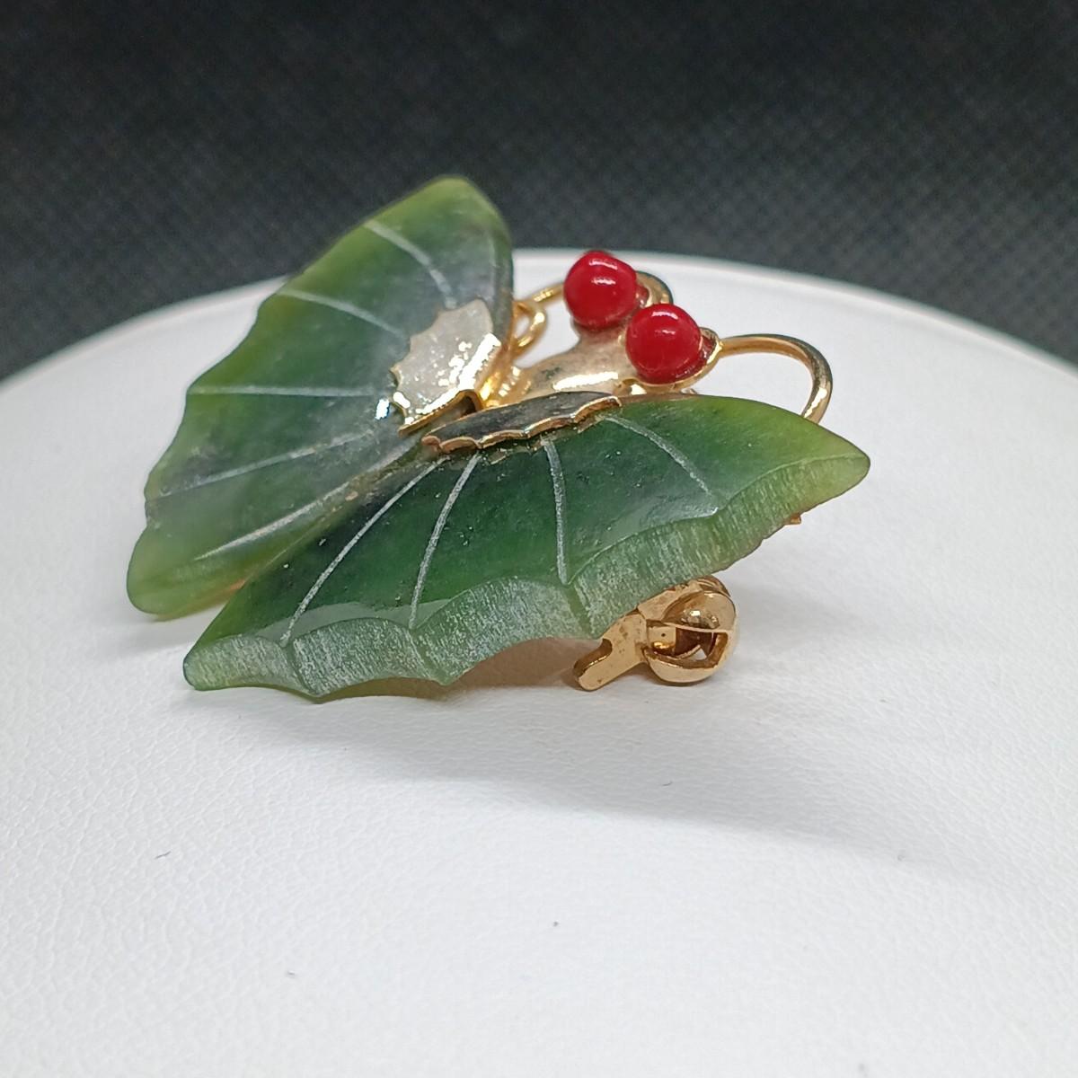 LOT 7: Vintage Coral & Jade Butterfly Brooch: Van Dell Gold-filled Rhinestone Garland Brooch: Gold Tone Faux Garnet Necklace