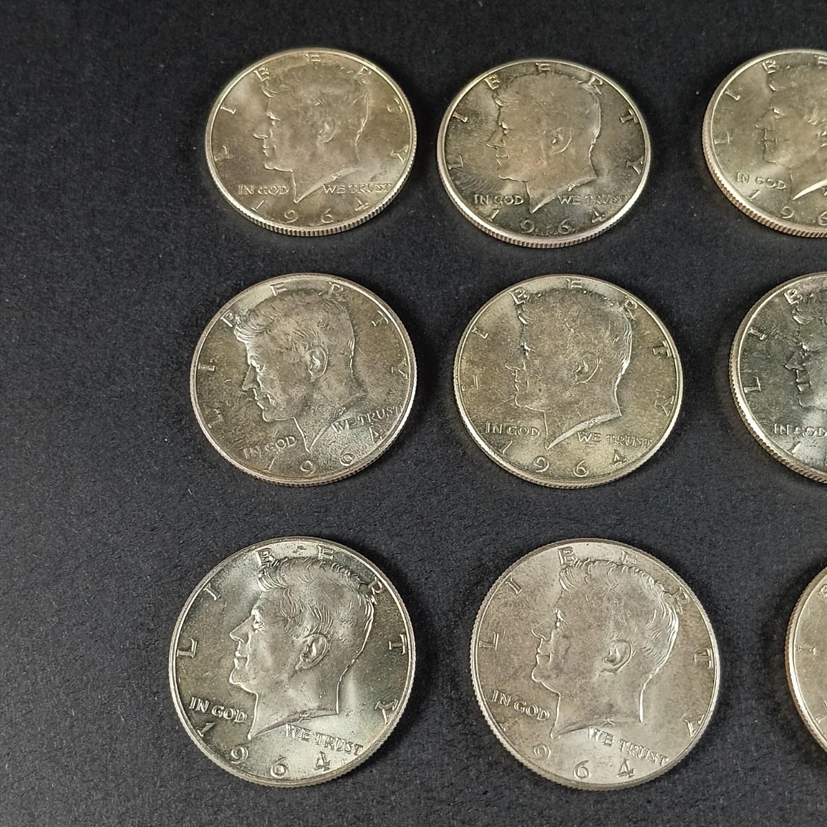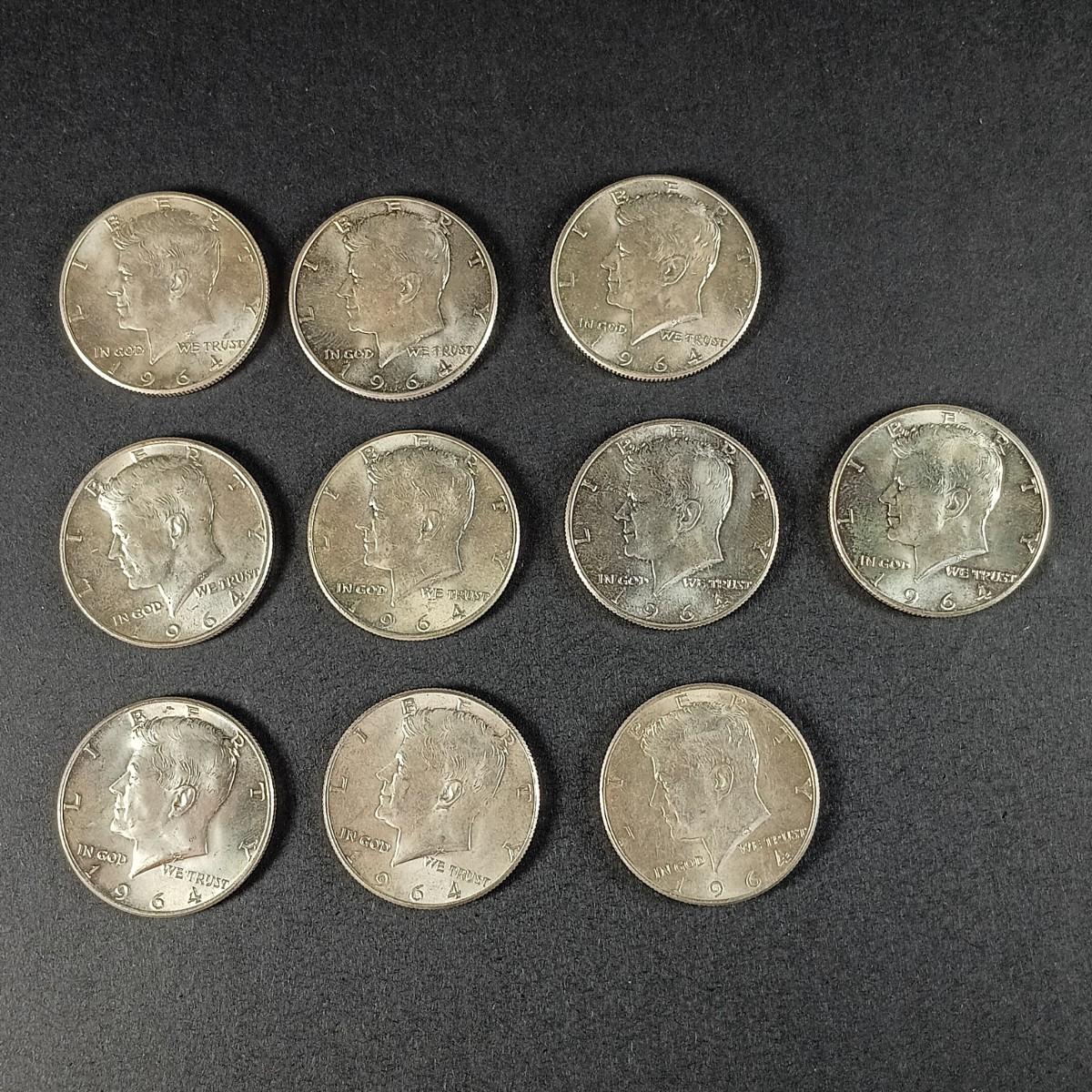 LOT 10: Set of (10) 90% Silver 1964 Kennedy Half Dollars