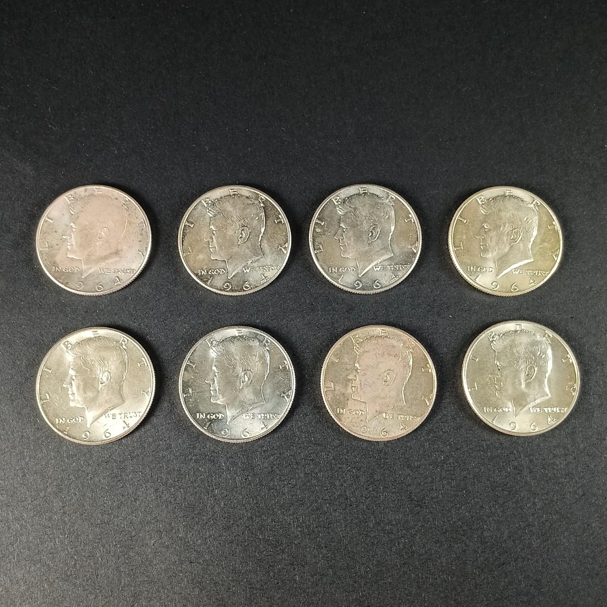 LOT 11: Set of (8) 90% Silver 1964 Kennedy Half-Dollar Coins