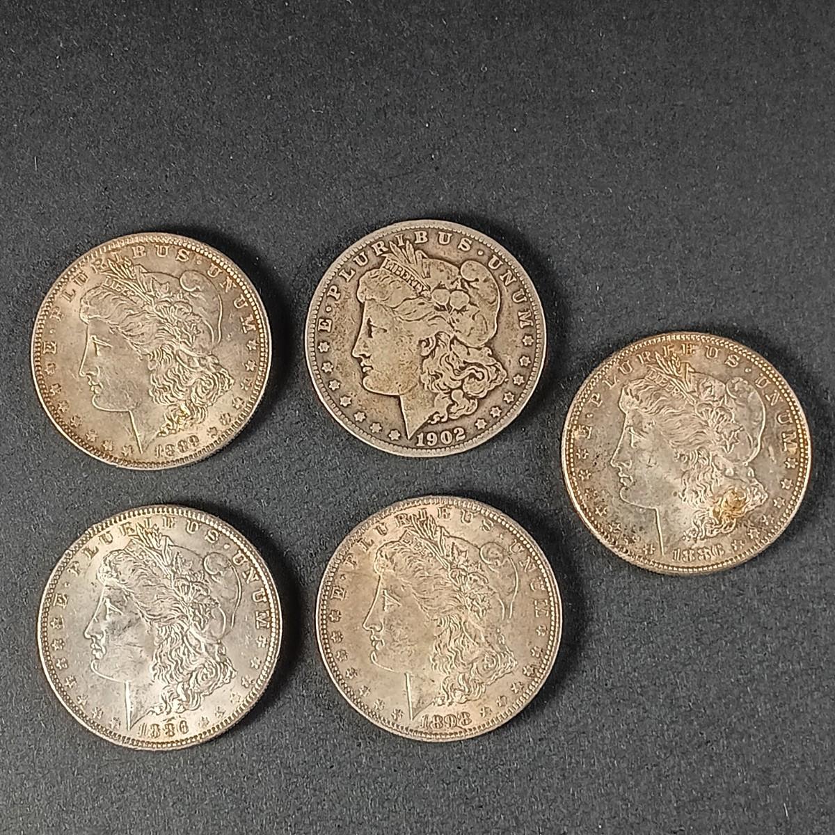 LOT 18: Set of (5) 1886-1902 Liberty Peace Dollar Coins 90% Silver