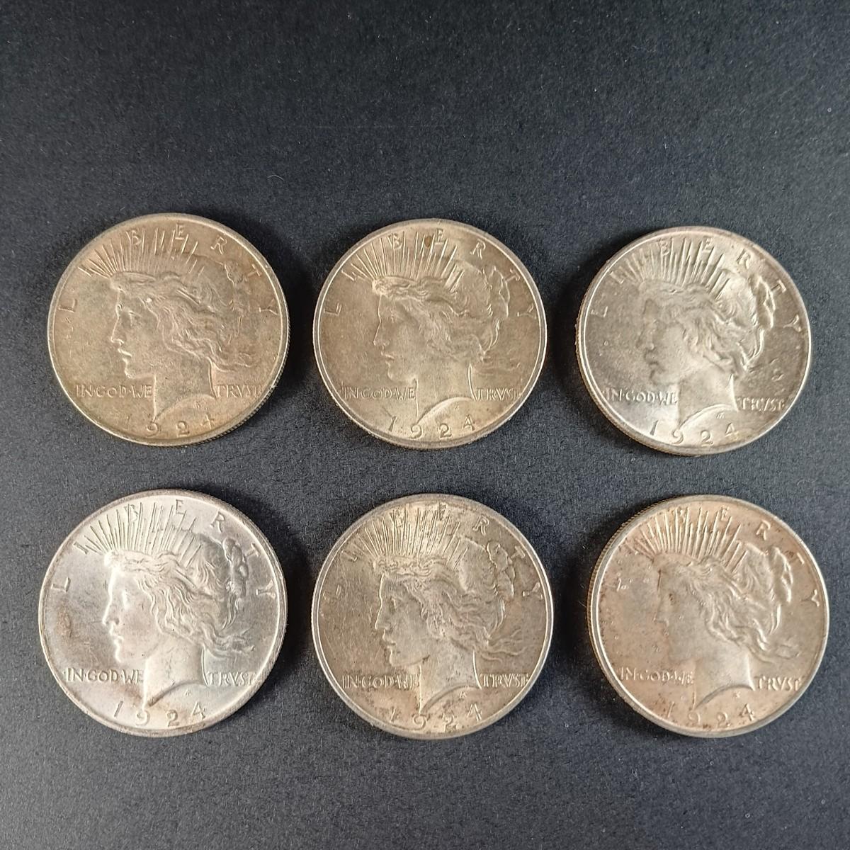 LOT 21: Set of (6) 1924 Liberty Peace Dollar Coins