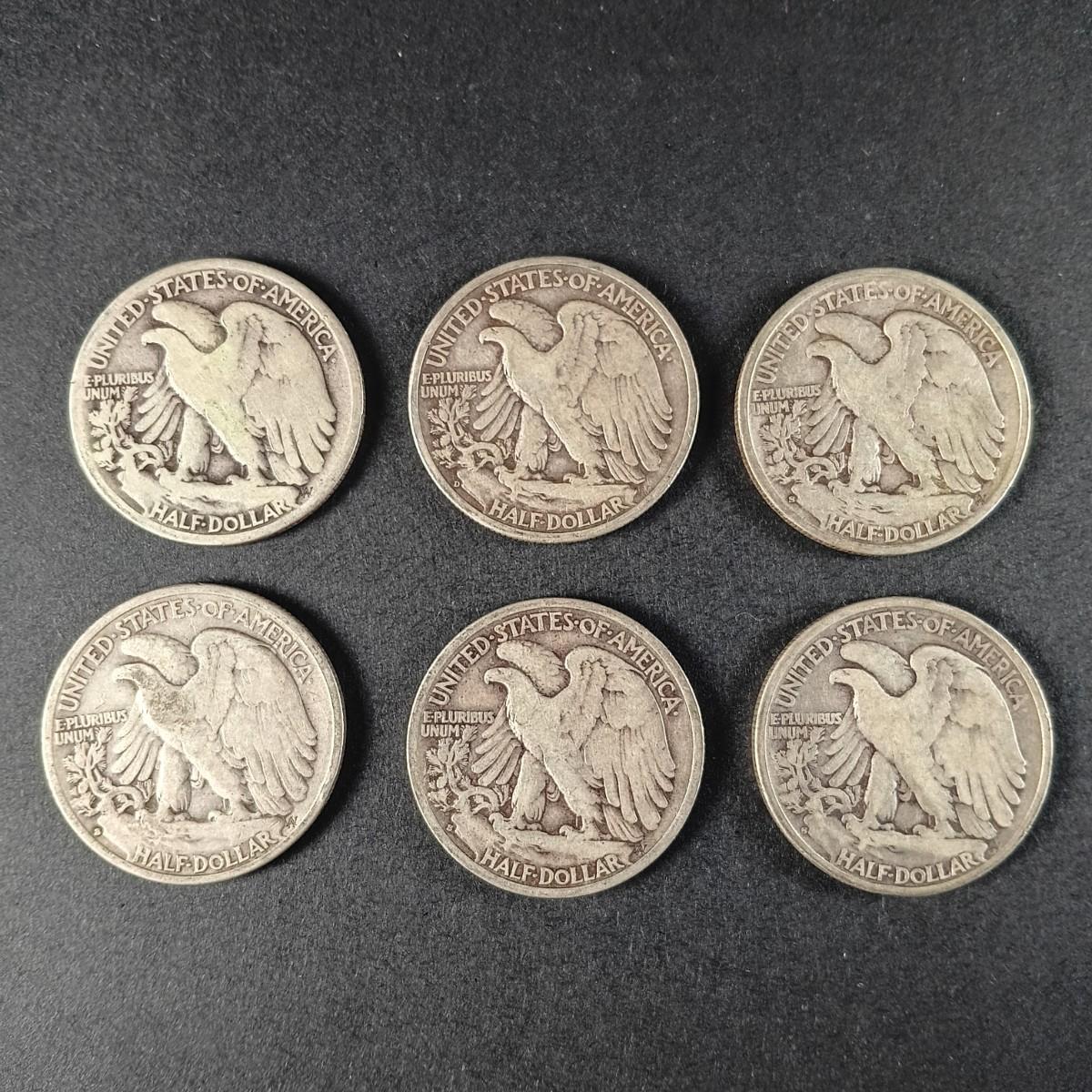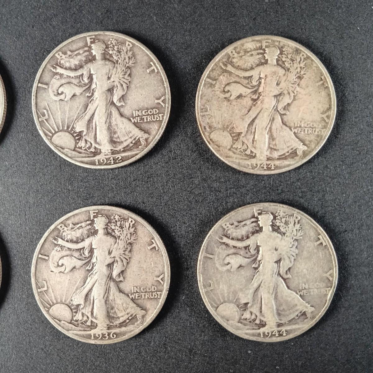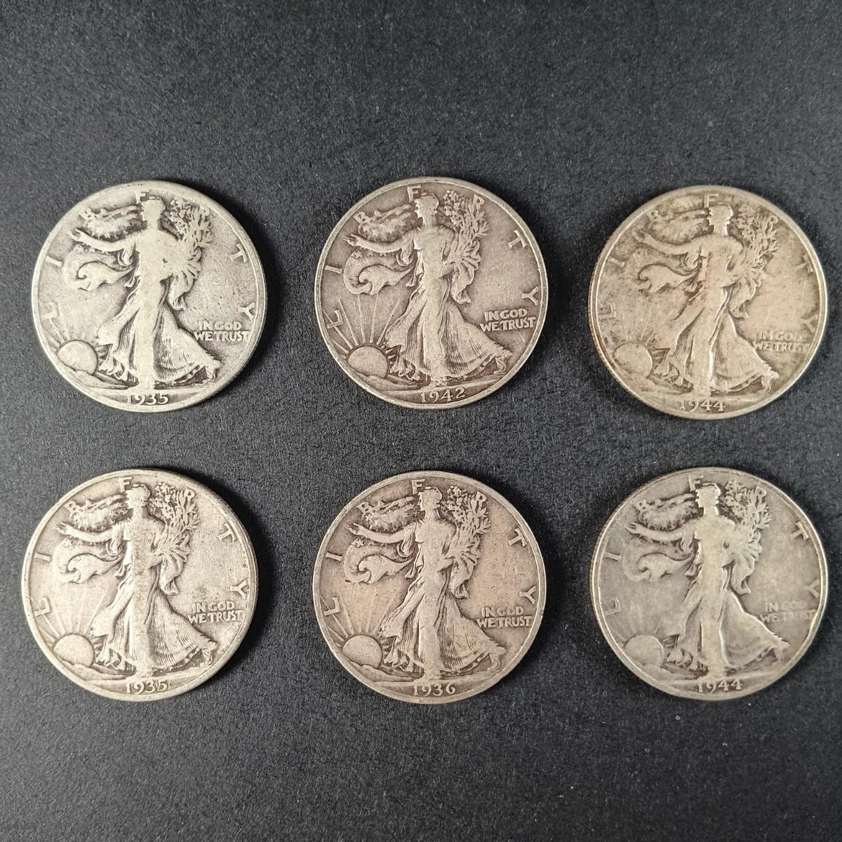 LOT 22: Set of (6) 1935-1944 Walking Liberty Half-Dollar Coins - 90% Silver
