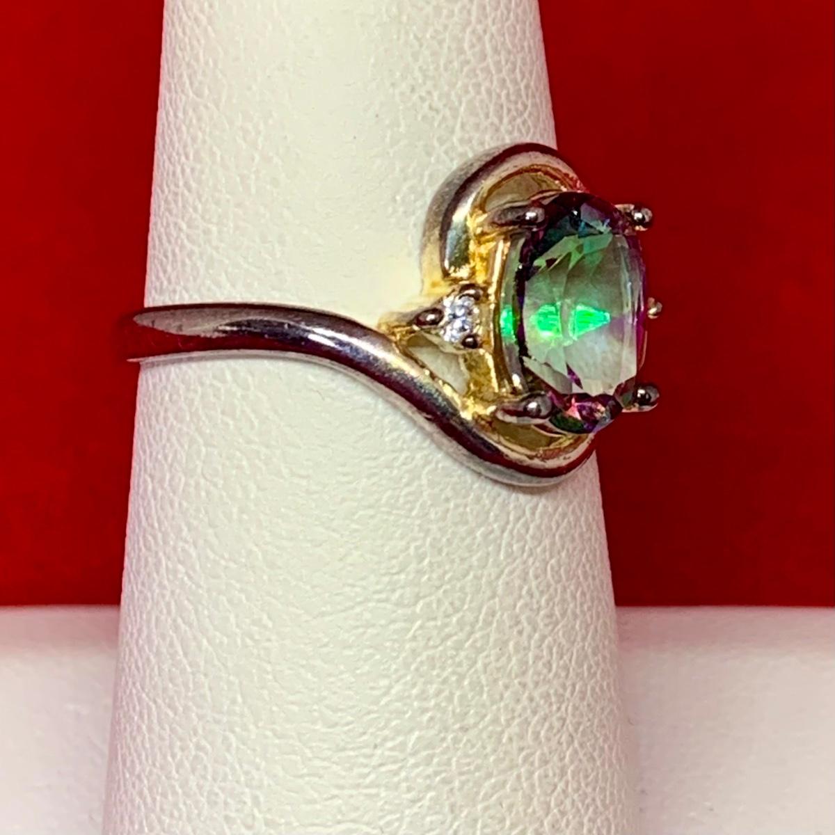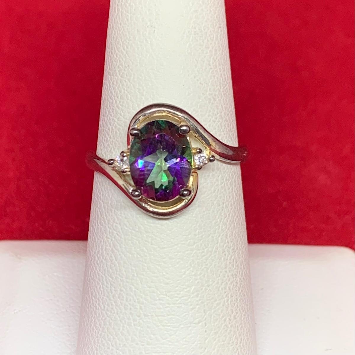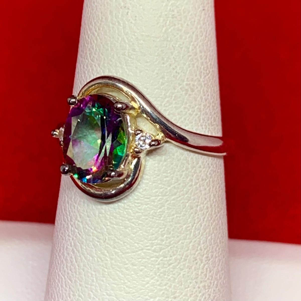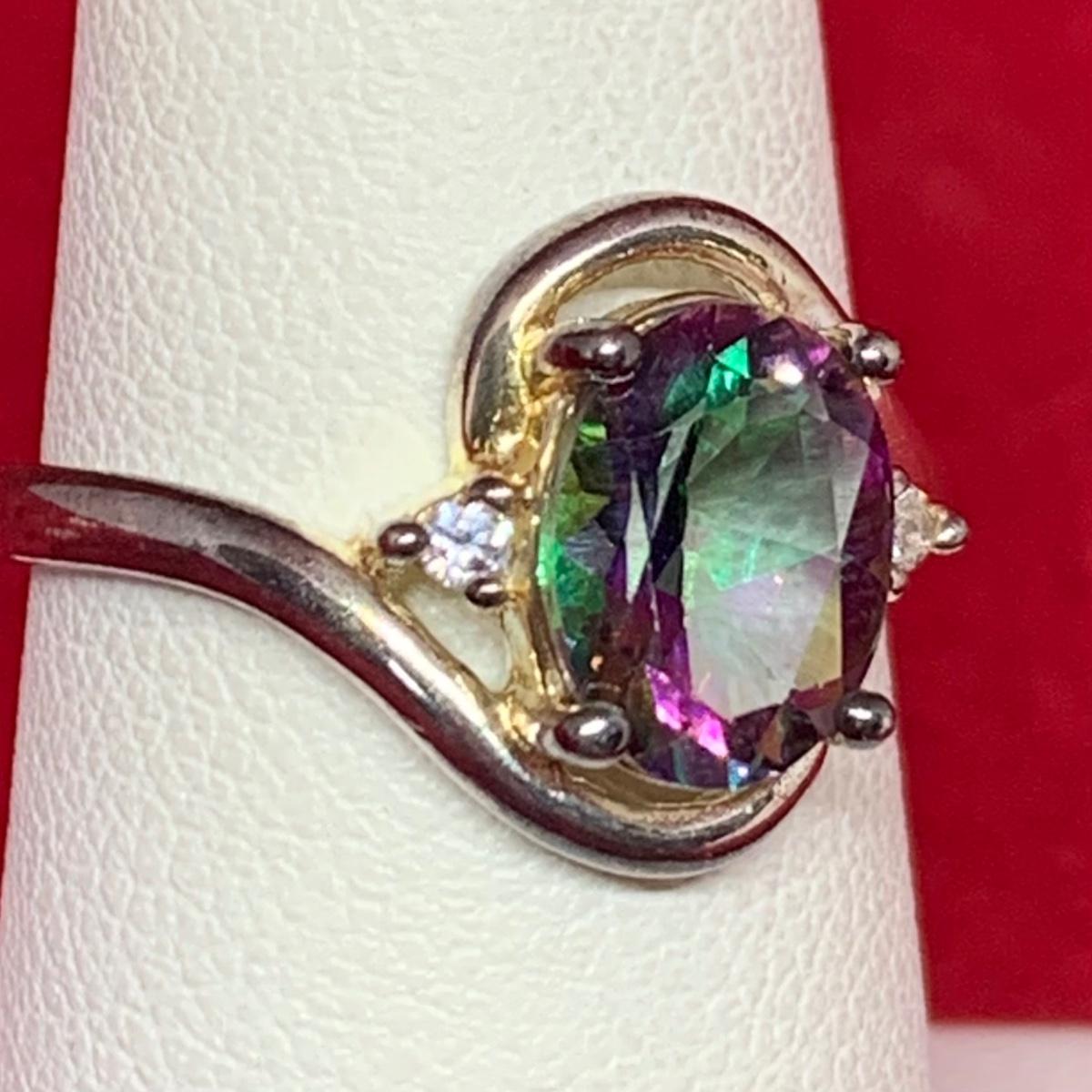 LOT:32: Sterling Silver Ring with Mystic Topaz Stone Size 7