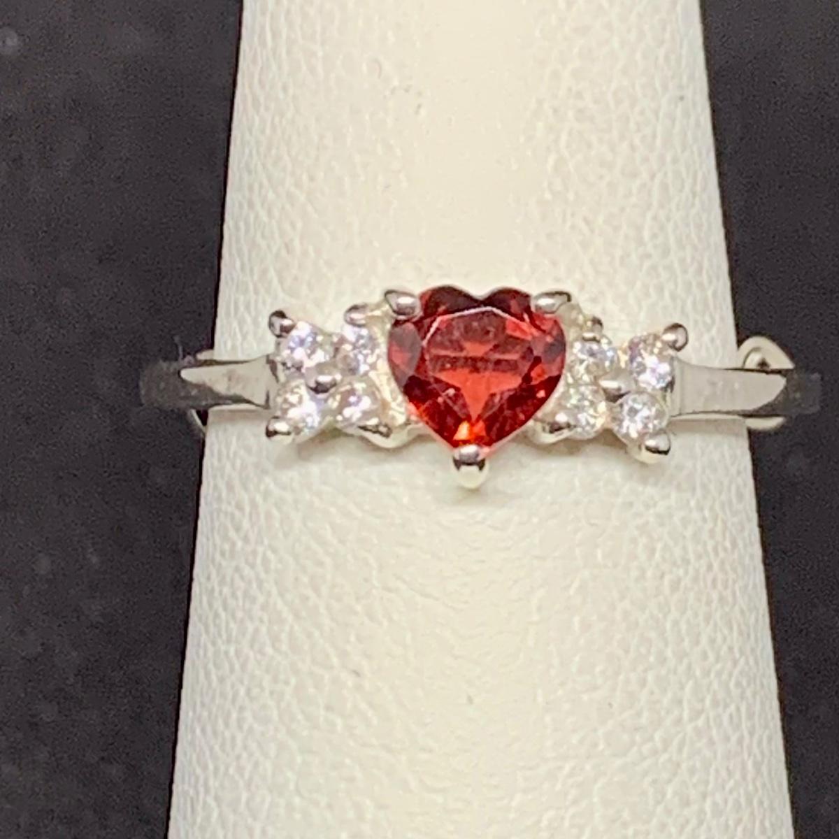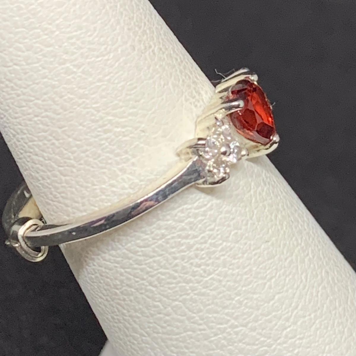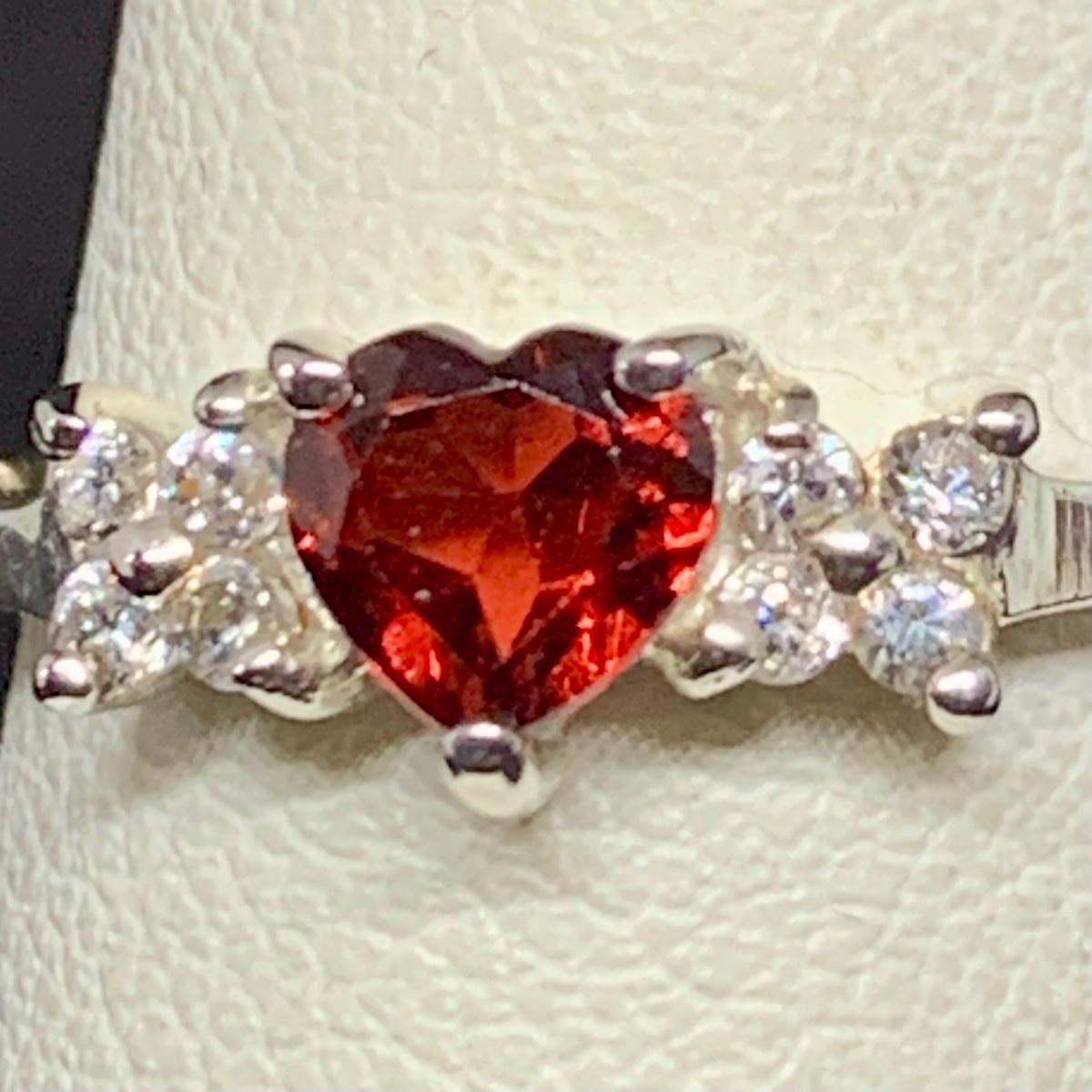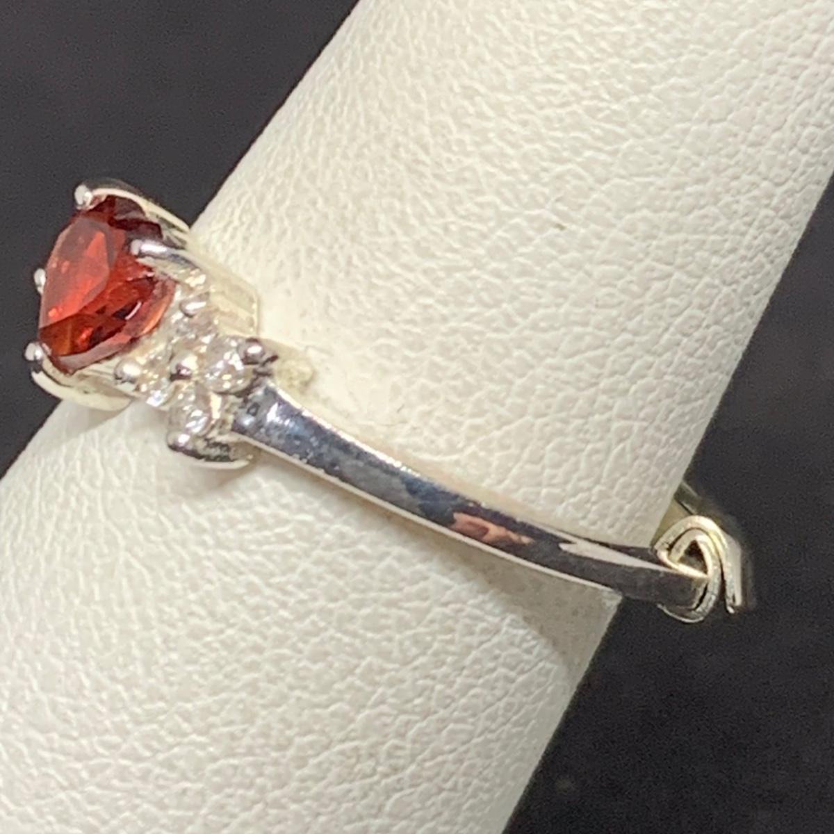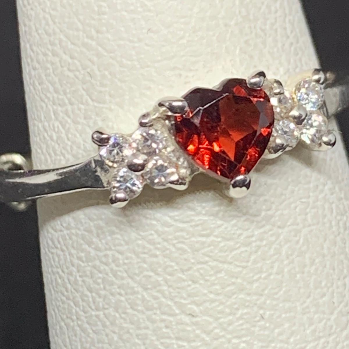 LOT:35: Sterling Silver Ring (925) with Heart Shaped Garnet: Sz 7: w/Ring Guard