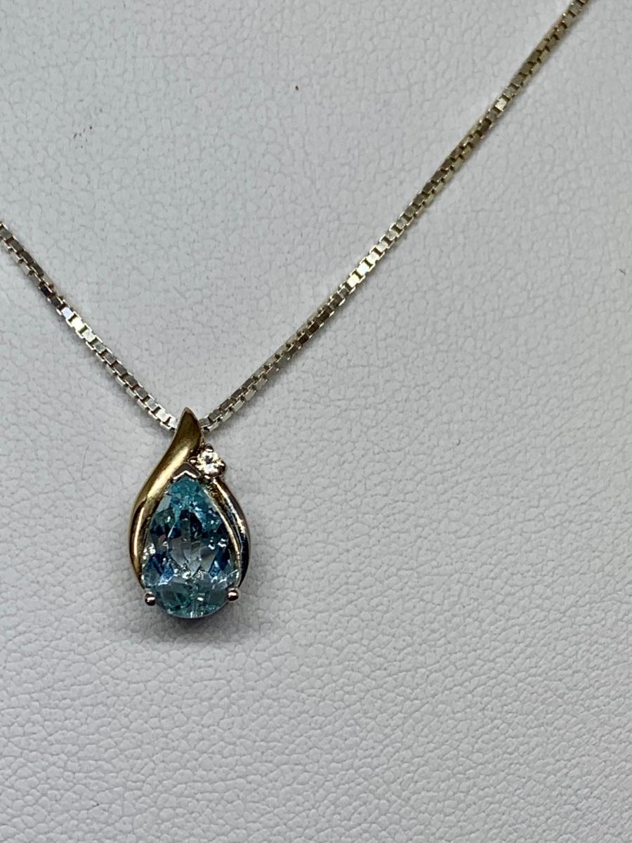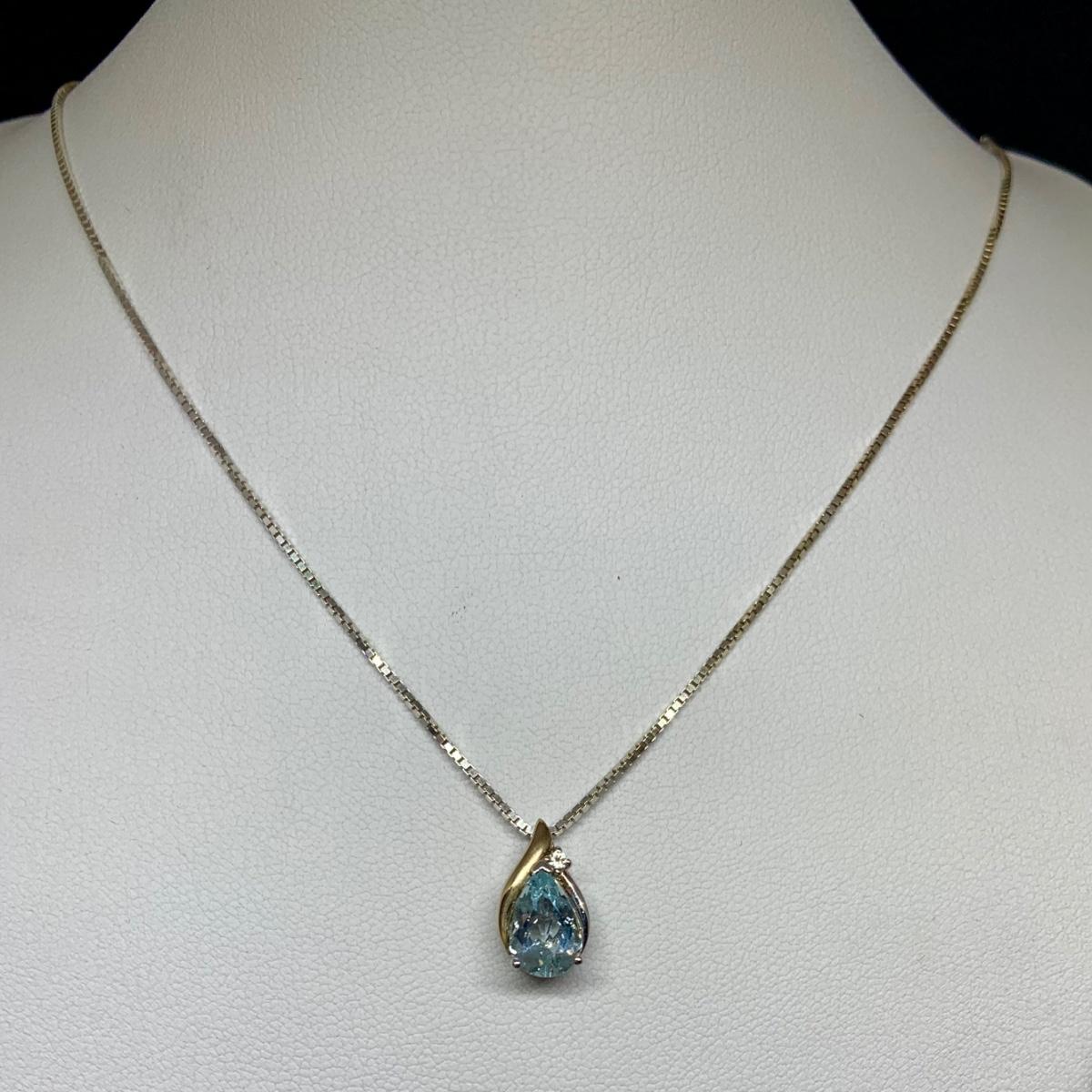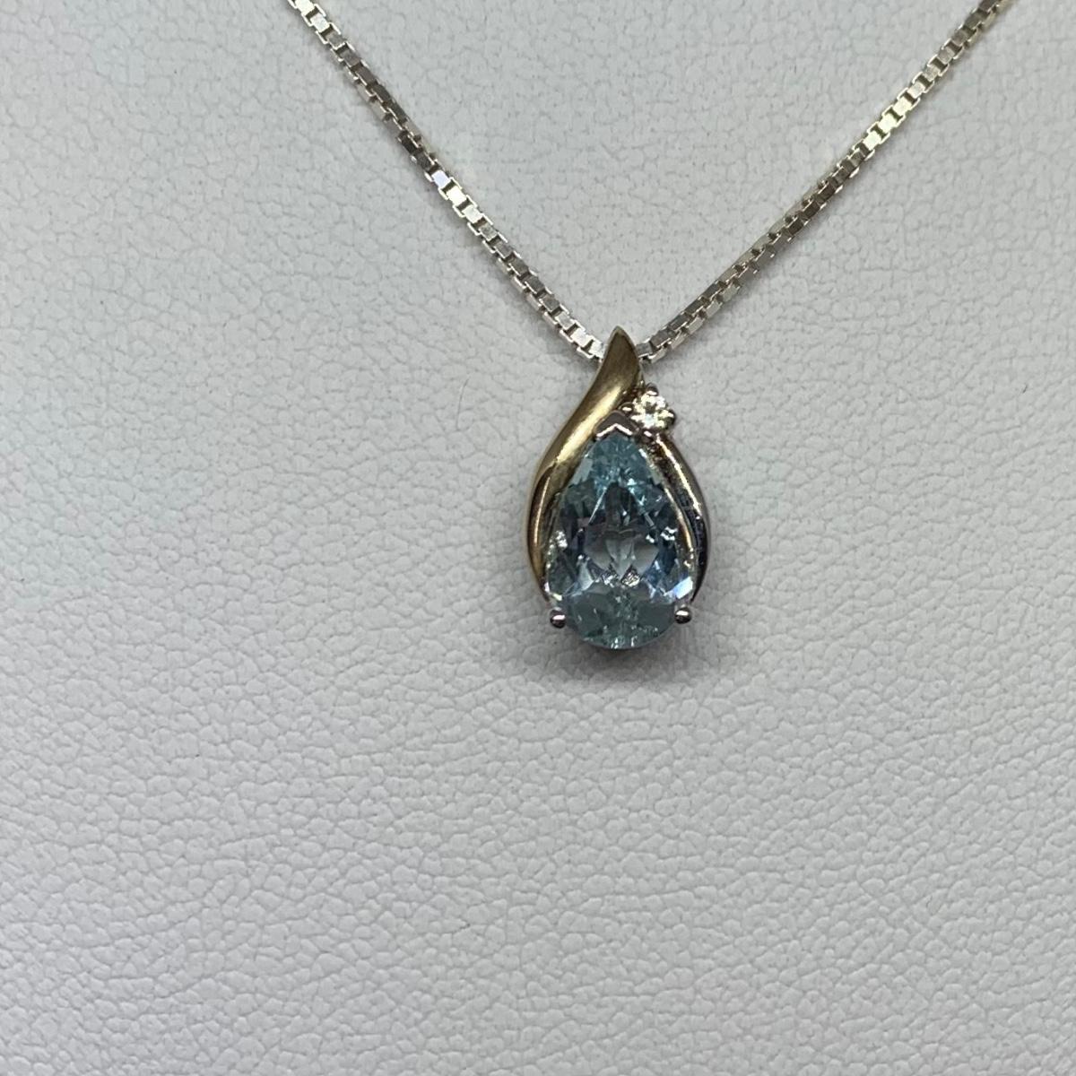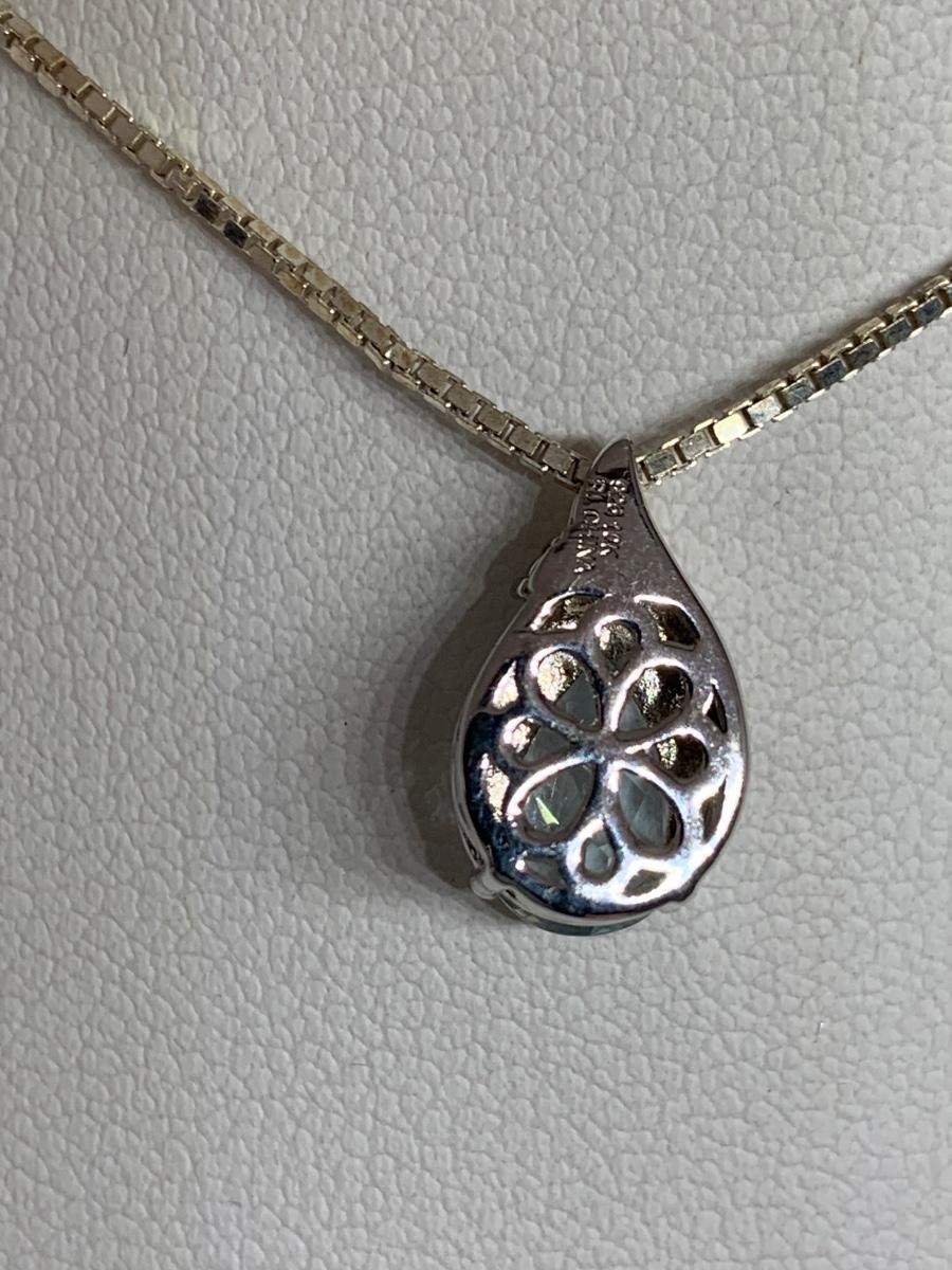 LOT:39: Sterling Silver Box Chain (925 Italy 20" L ) w/ Pear Shaped Aquamarine Pendant- 10K White Gold Overlay on Pendant for Shine