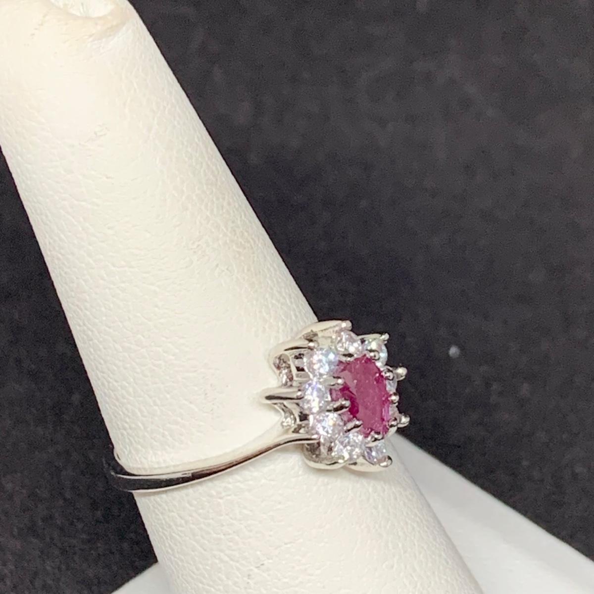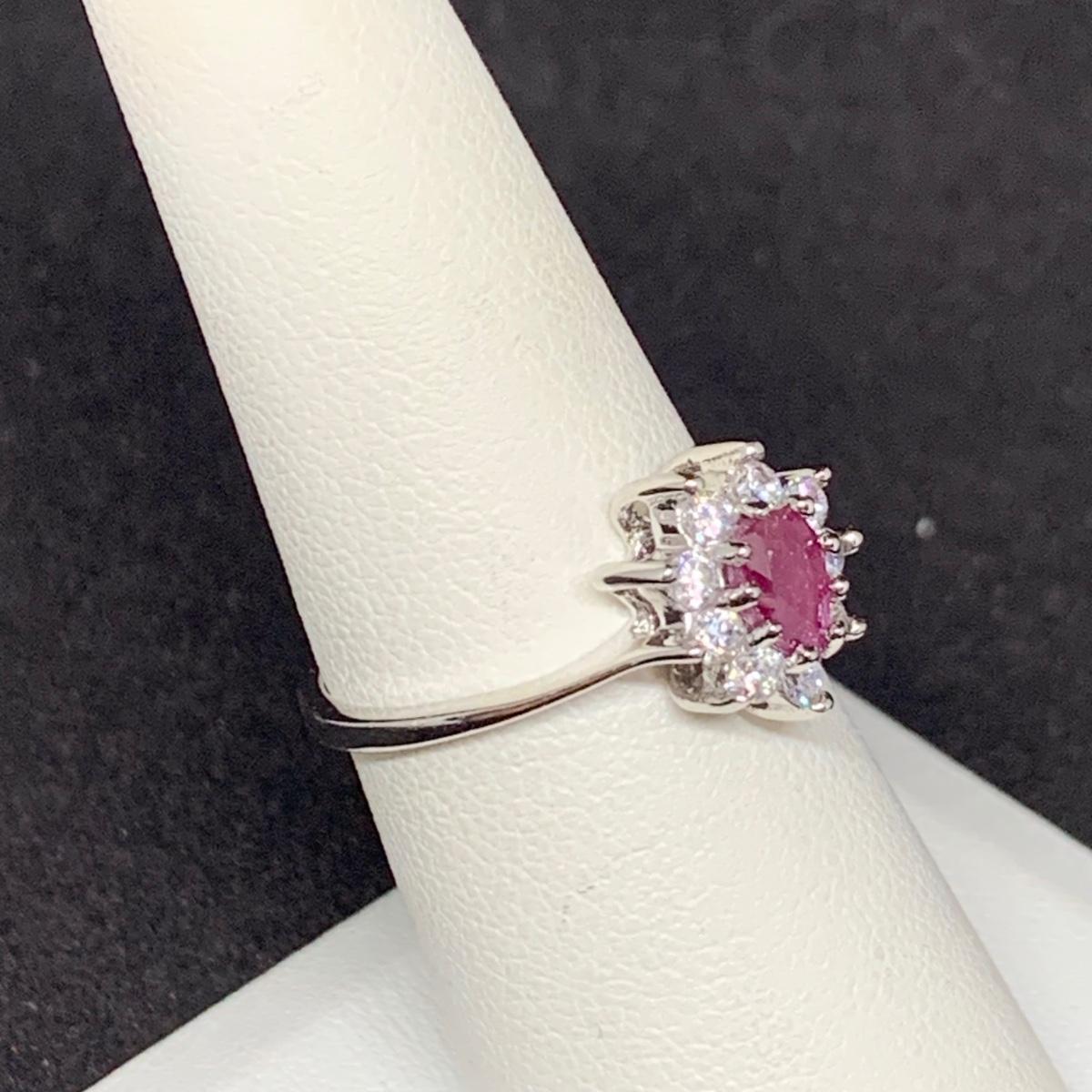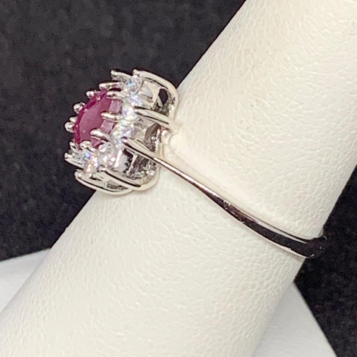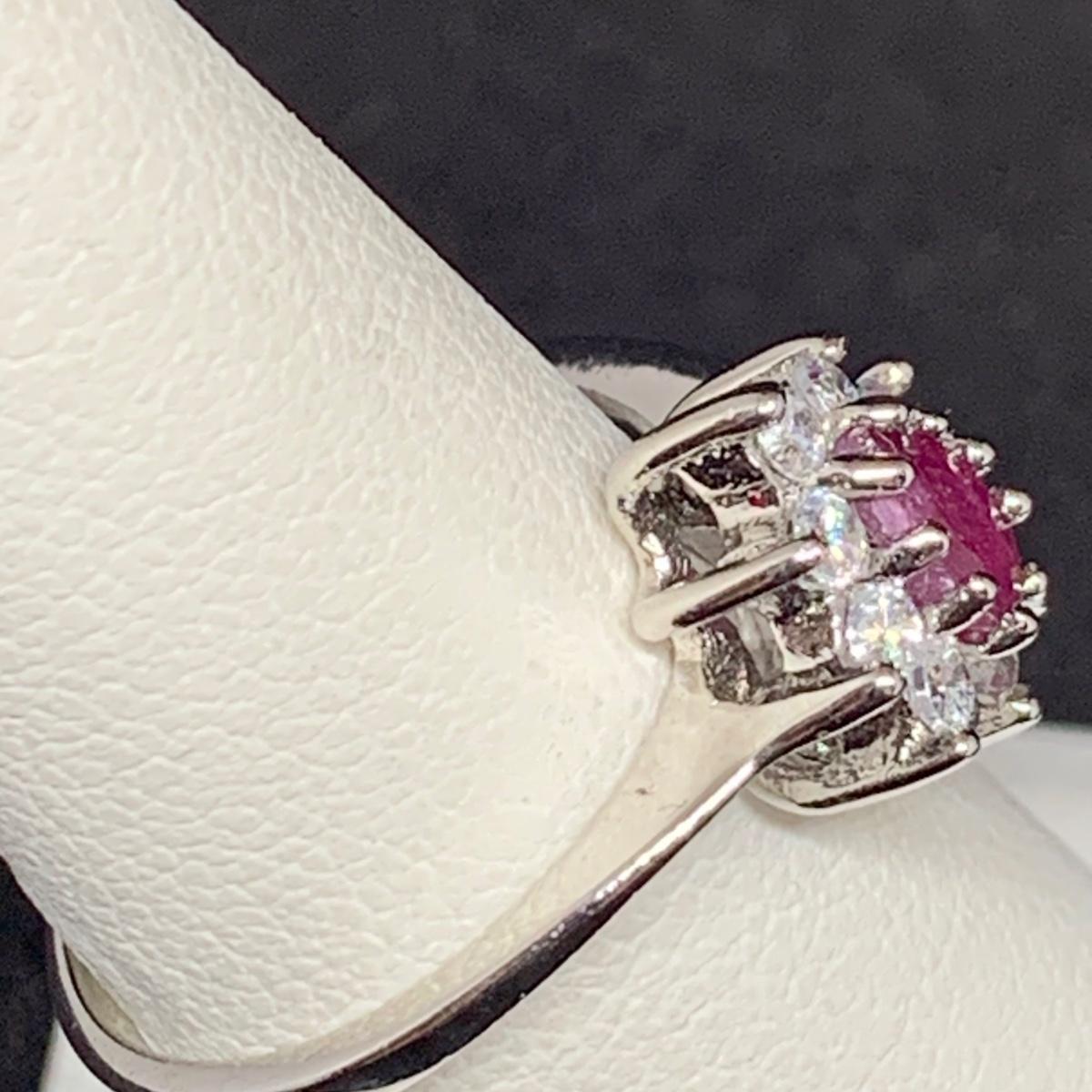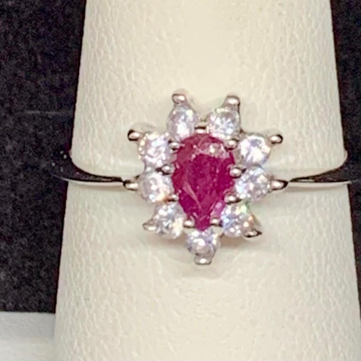 LOT:41: Sterling Siver Ring With Ruby Pear Shaped Stone Size 7