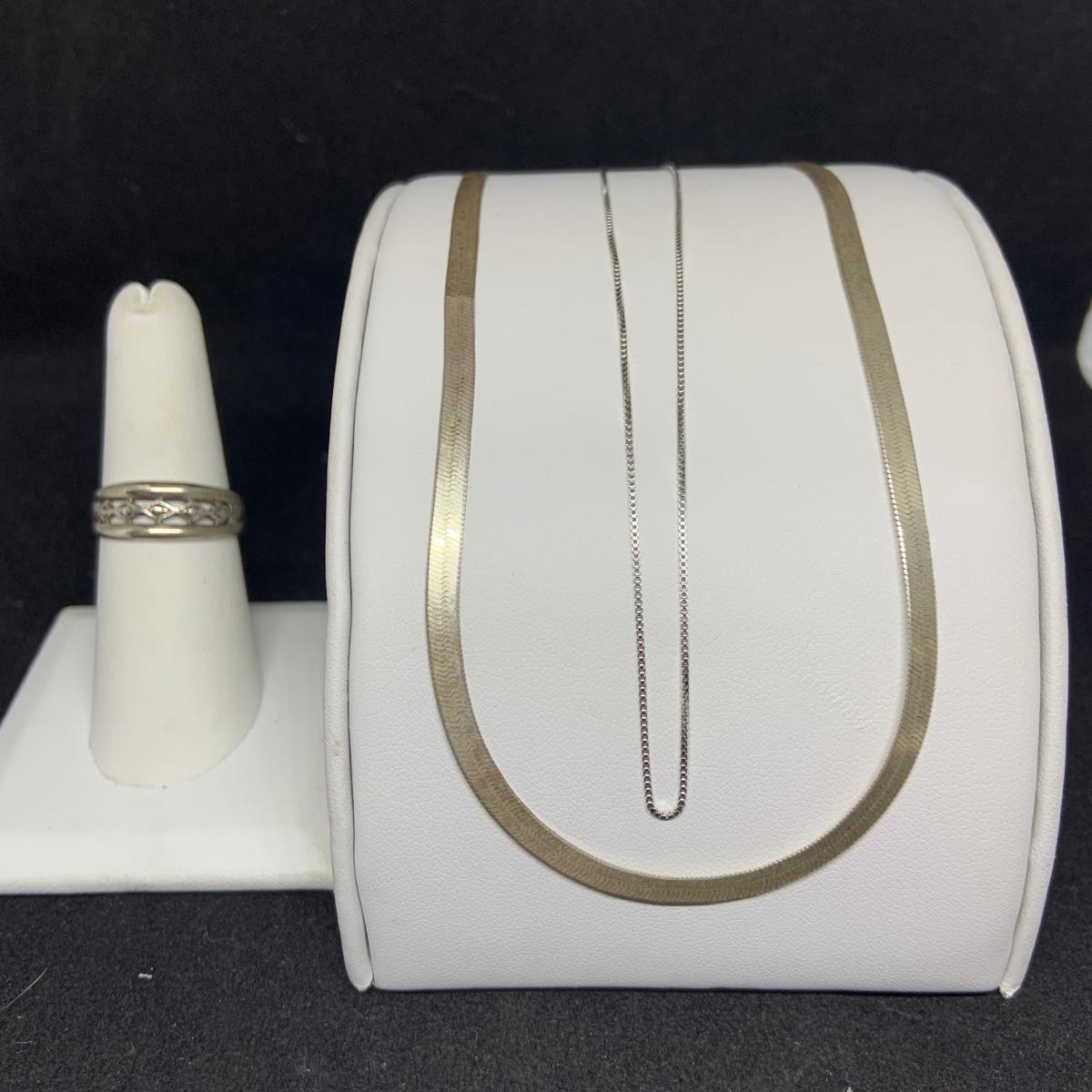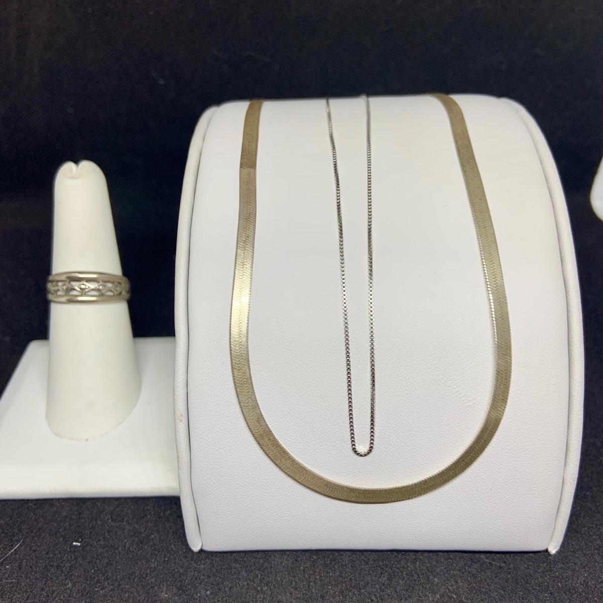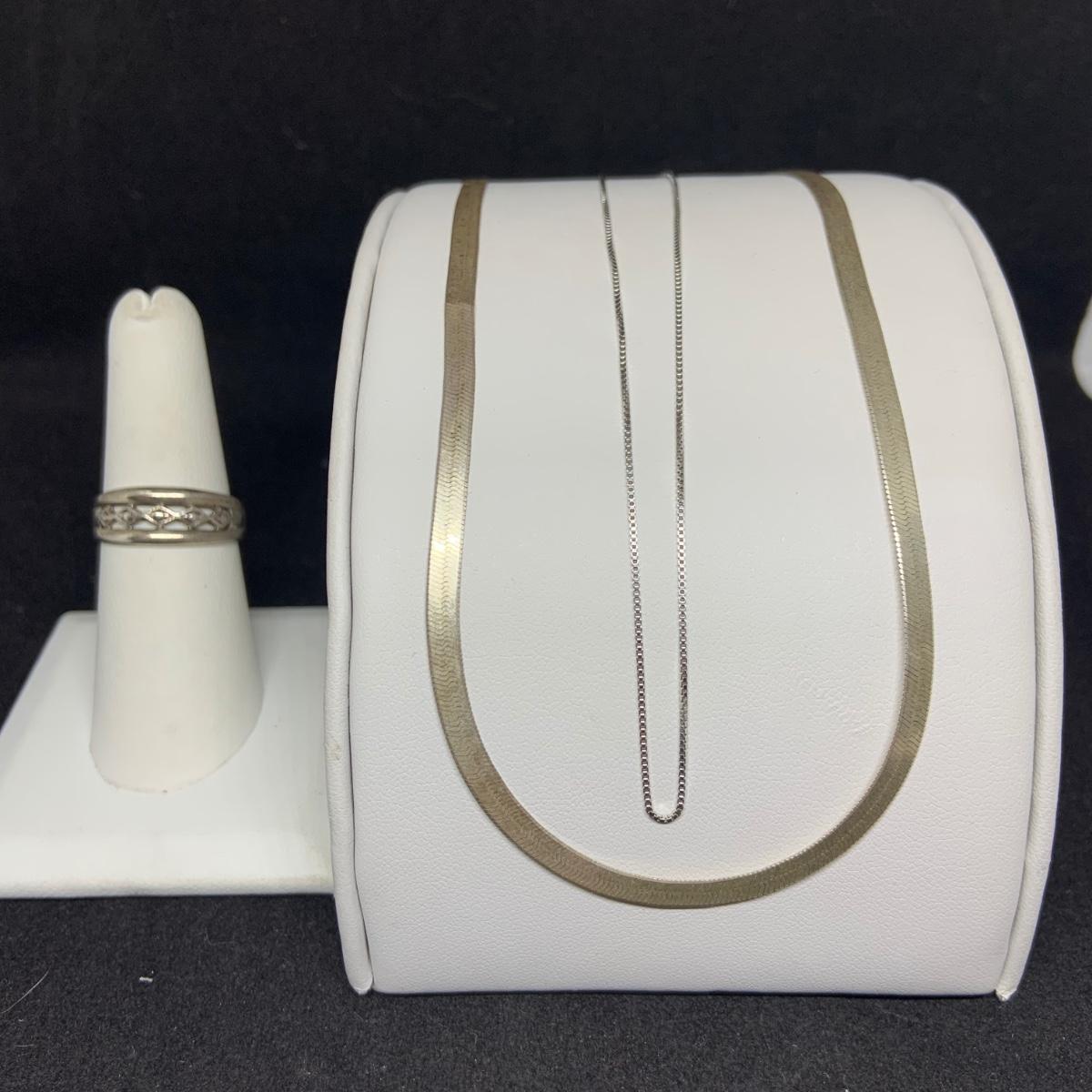LOT:43: Sterling Sliver Ring Size 7, 18" Herringbone Chain & more