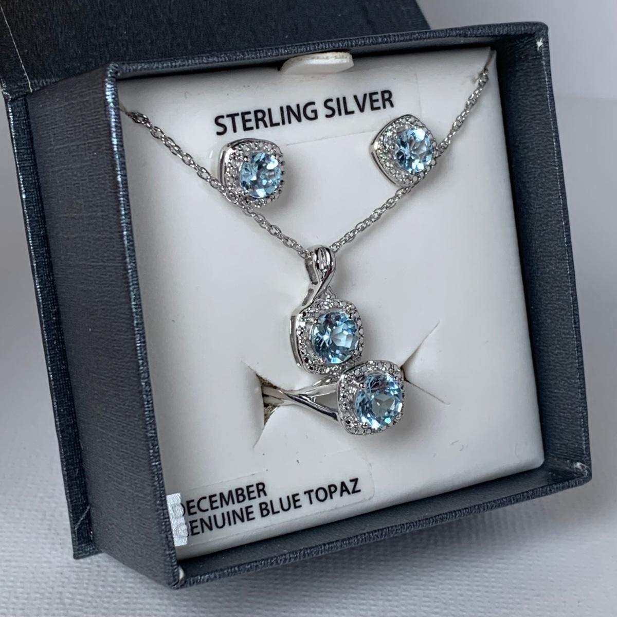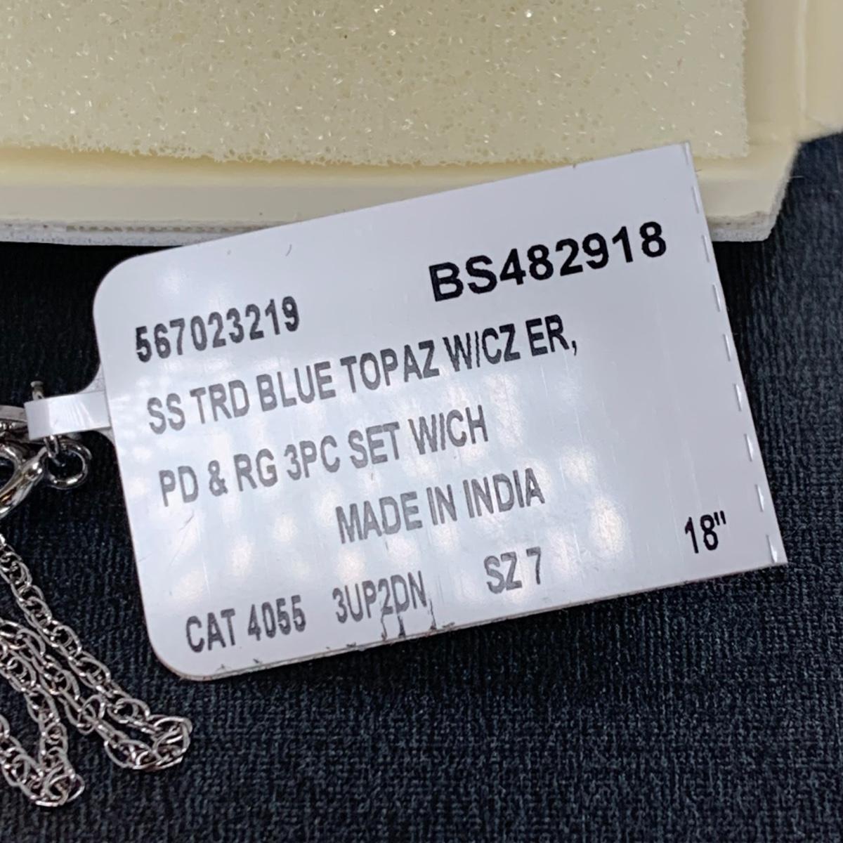 LOT 62: Sterling Silver Blue Topaz 18"Necklace, Earring, Ring Set sz.7 & Silver Tone & Rhinestone Bracelet